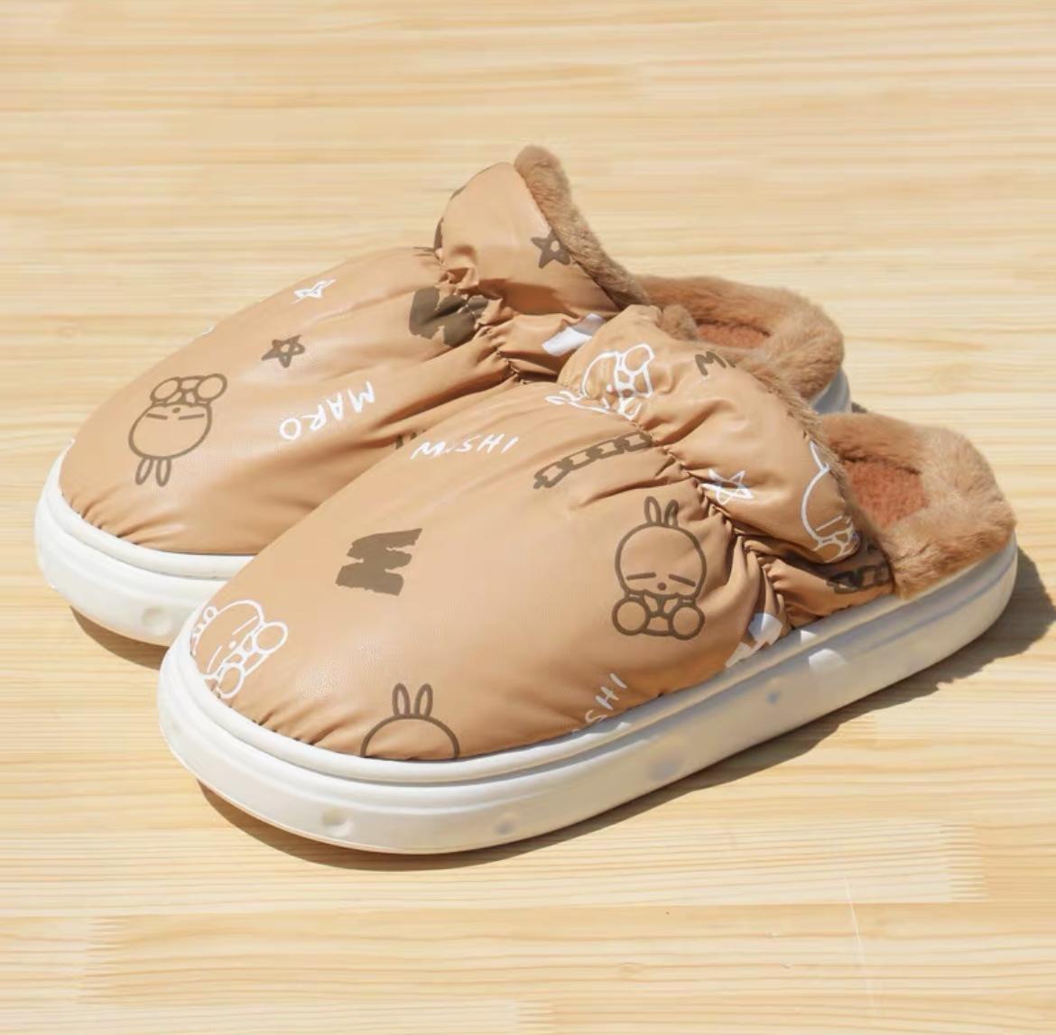 Pantuflas de algodón de conejo para mujer, de invierno, para el hogar, con suela gruesa, antideslizantes, con sensación de mierda, para interiores, impermeables, con forro polar para hombre