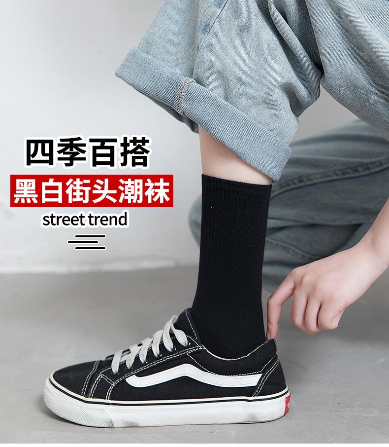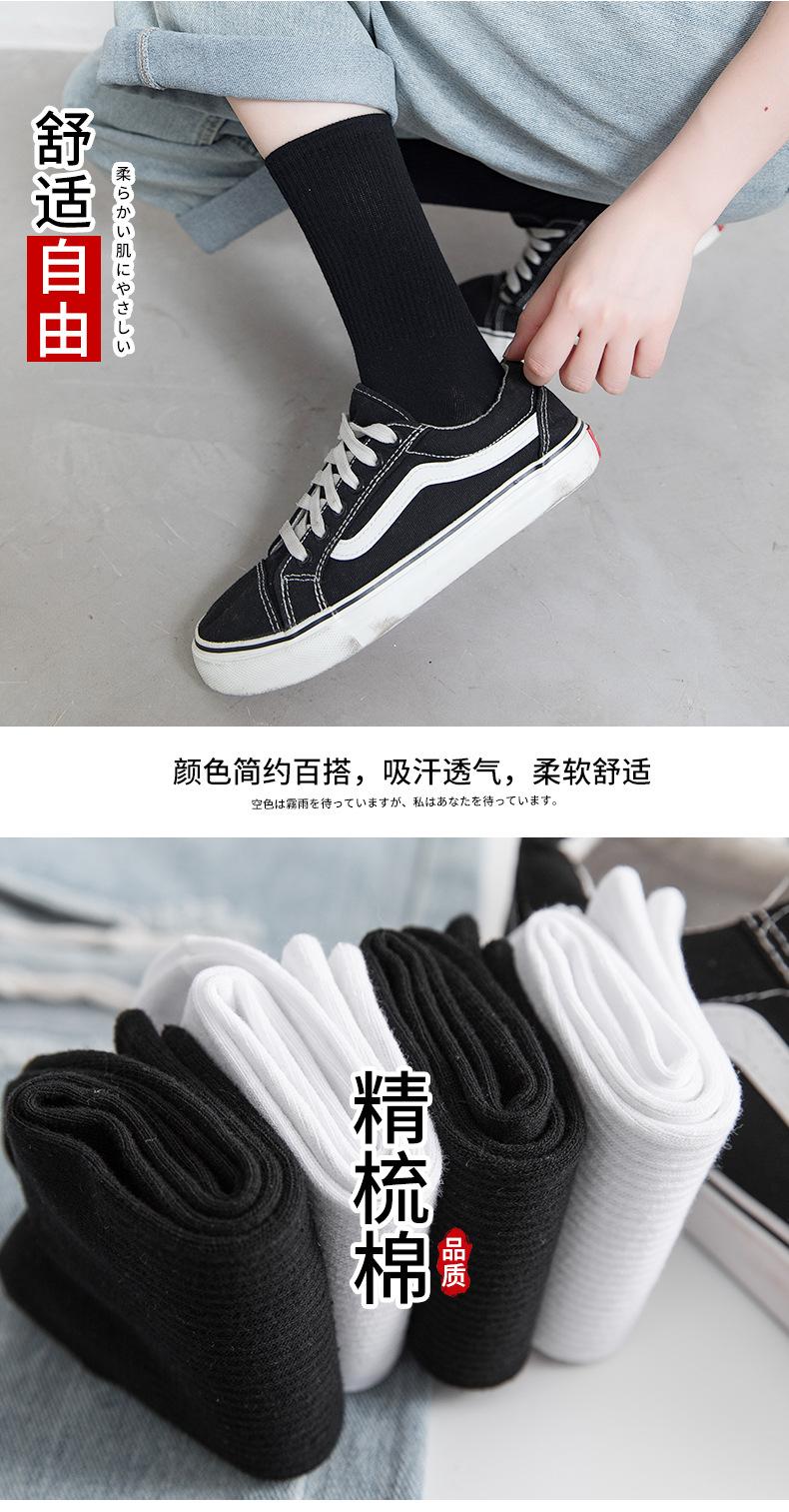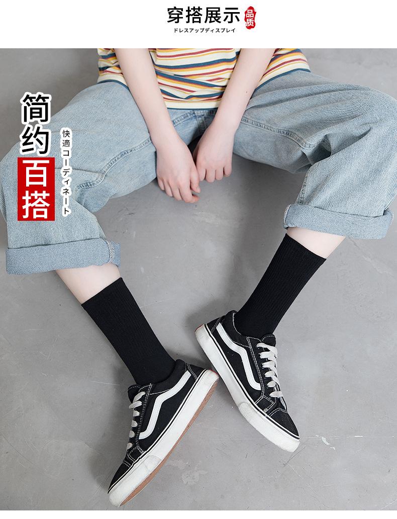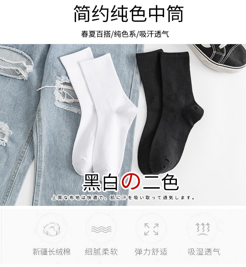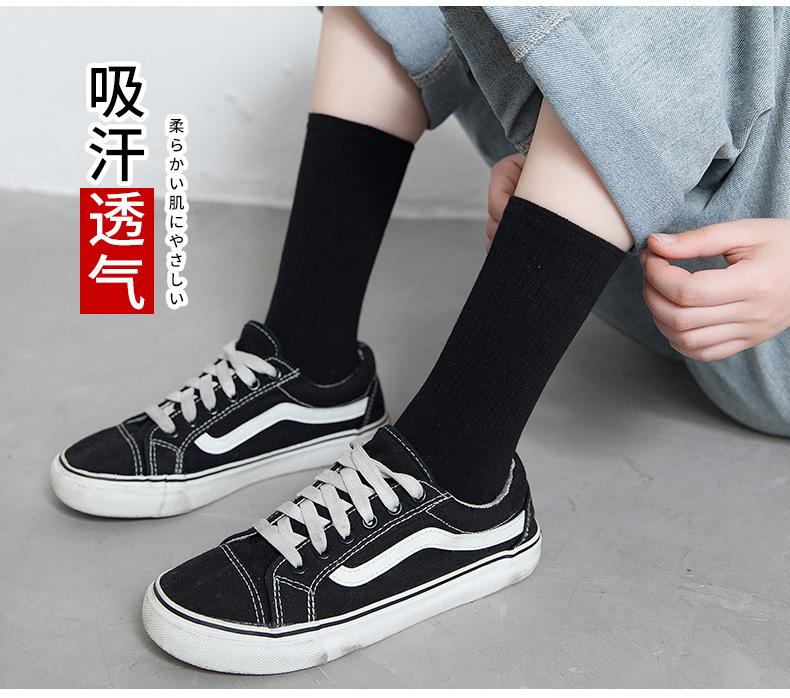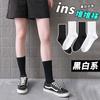 Calcetines negros para mujer, calcetines de longitud media, primavera y otoño, color liso, verano, finos, estilo japonés, otoño, medias deportivas blancas, moda ins