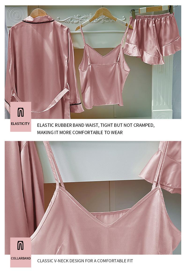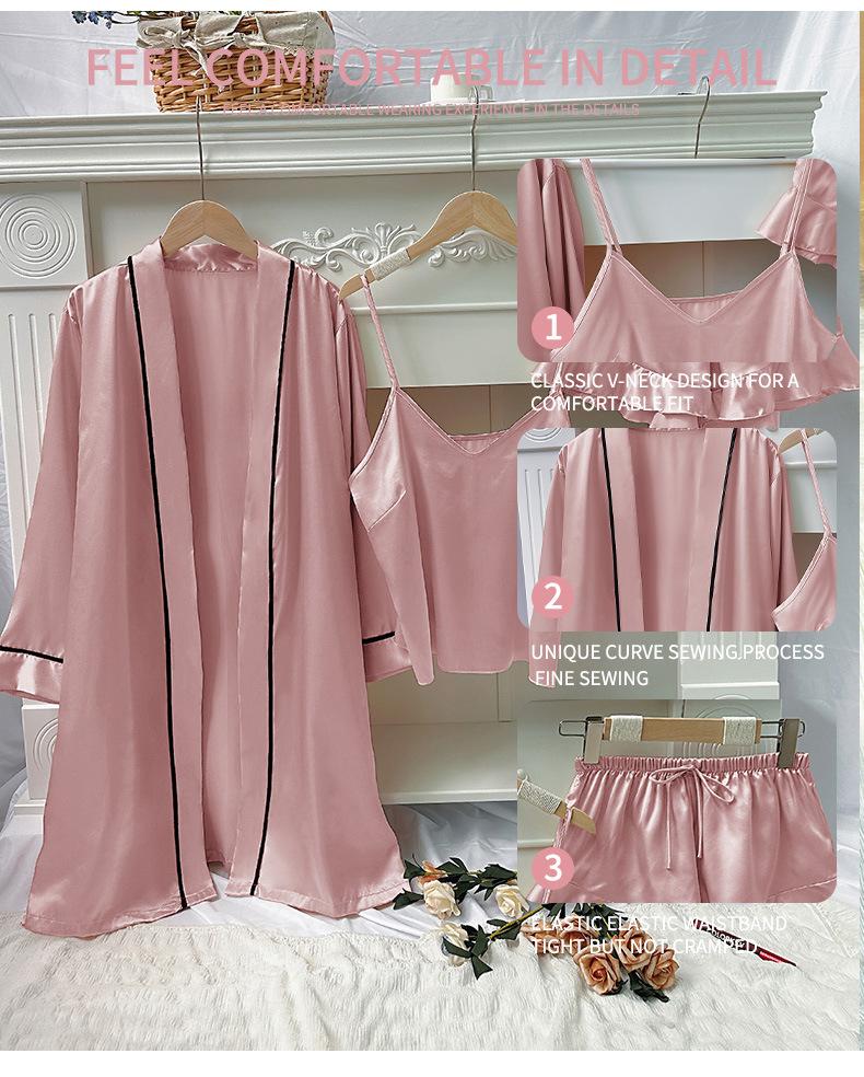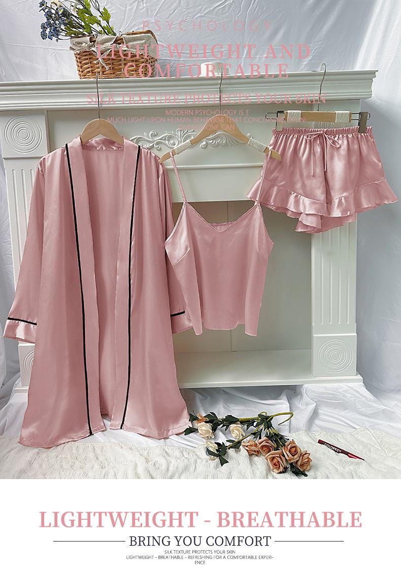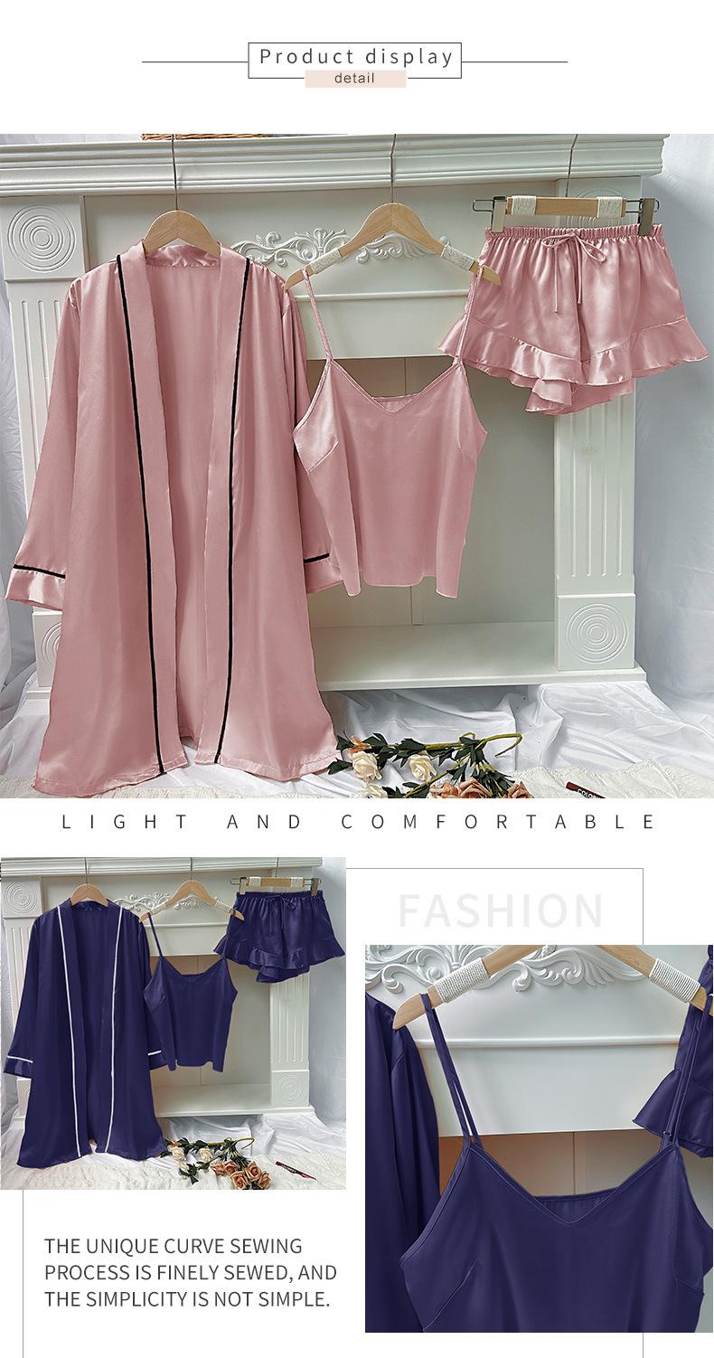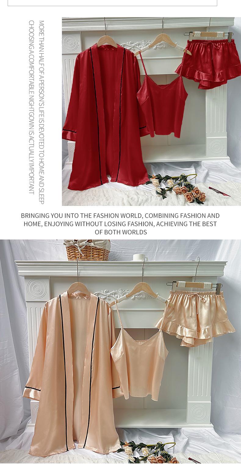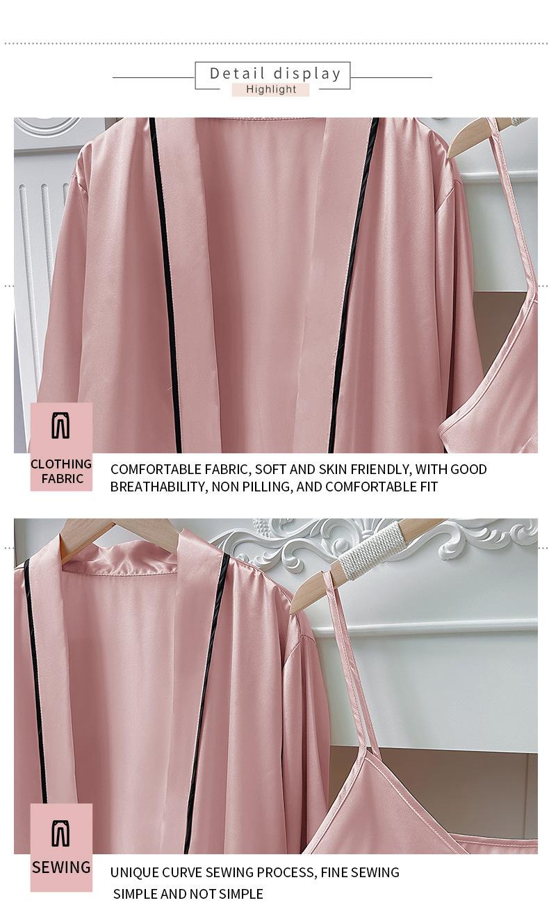 Vestido Nuevo Sexy Elegante de Primavera y Verano Moda Femenina Romántico Camisón de Seda con Cordones Ropa para el Hogar Pijama Bata