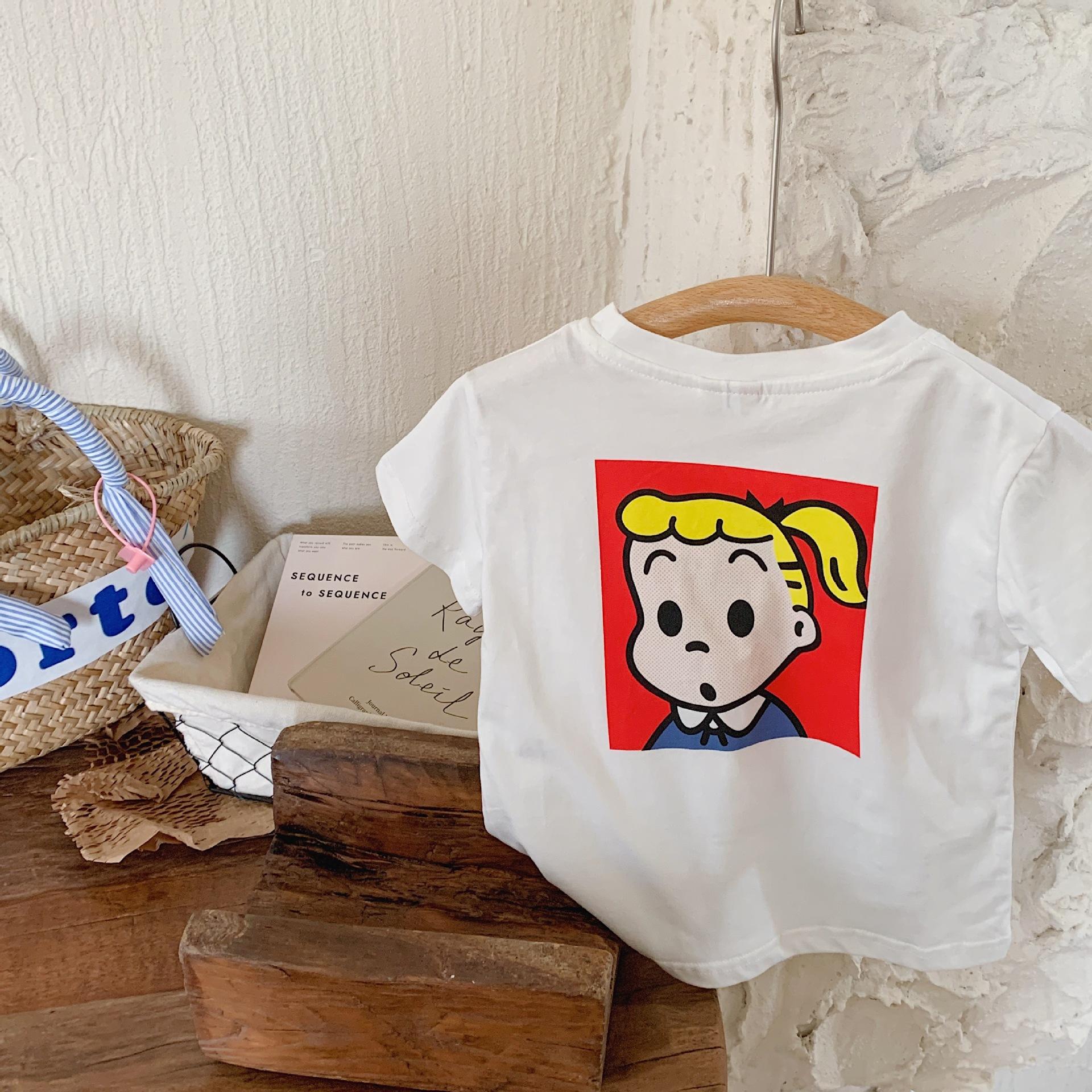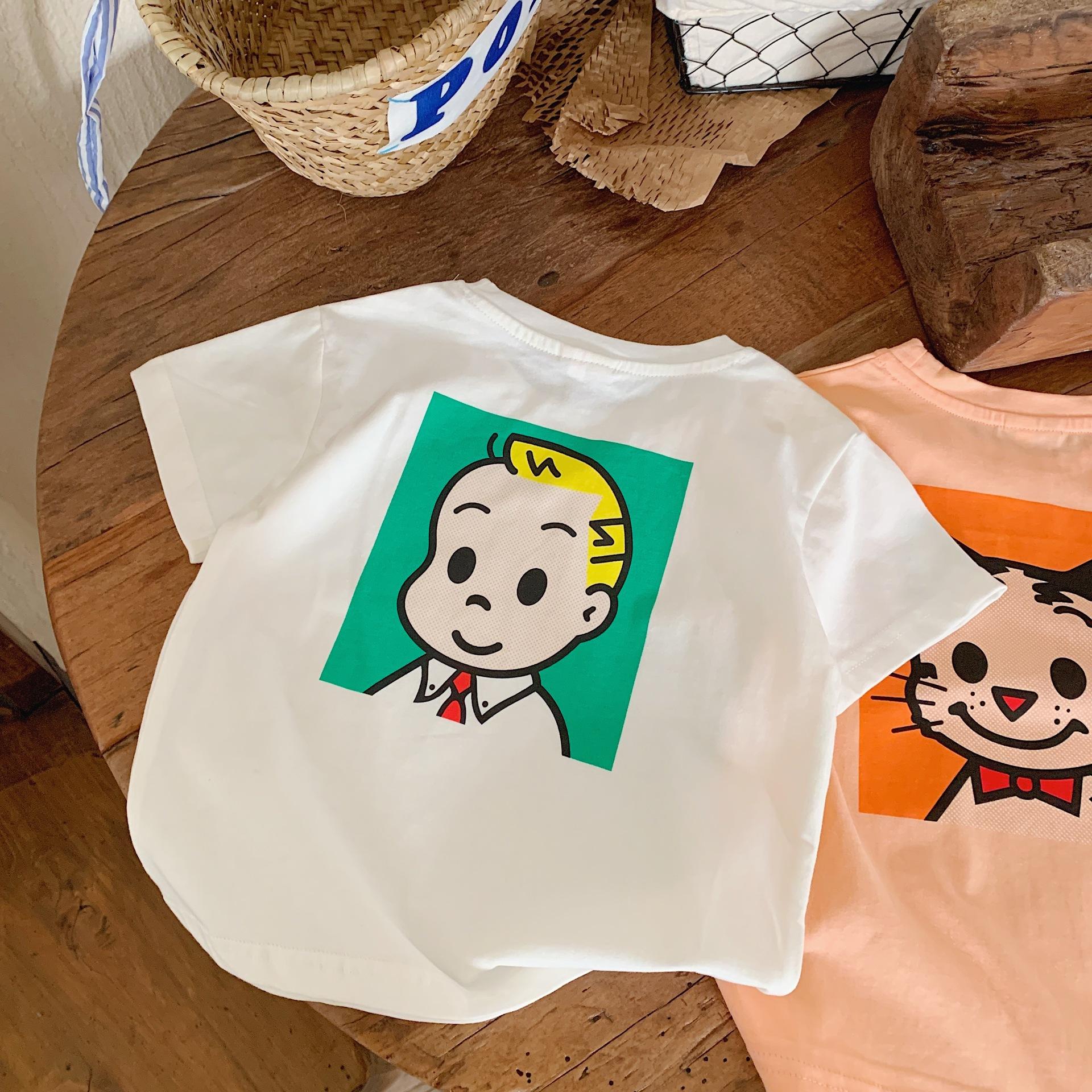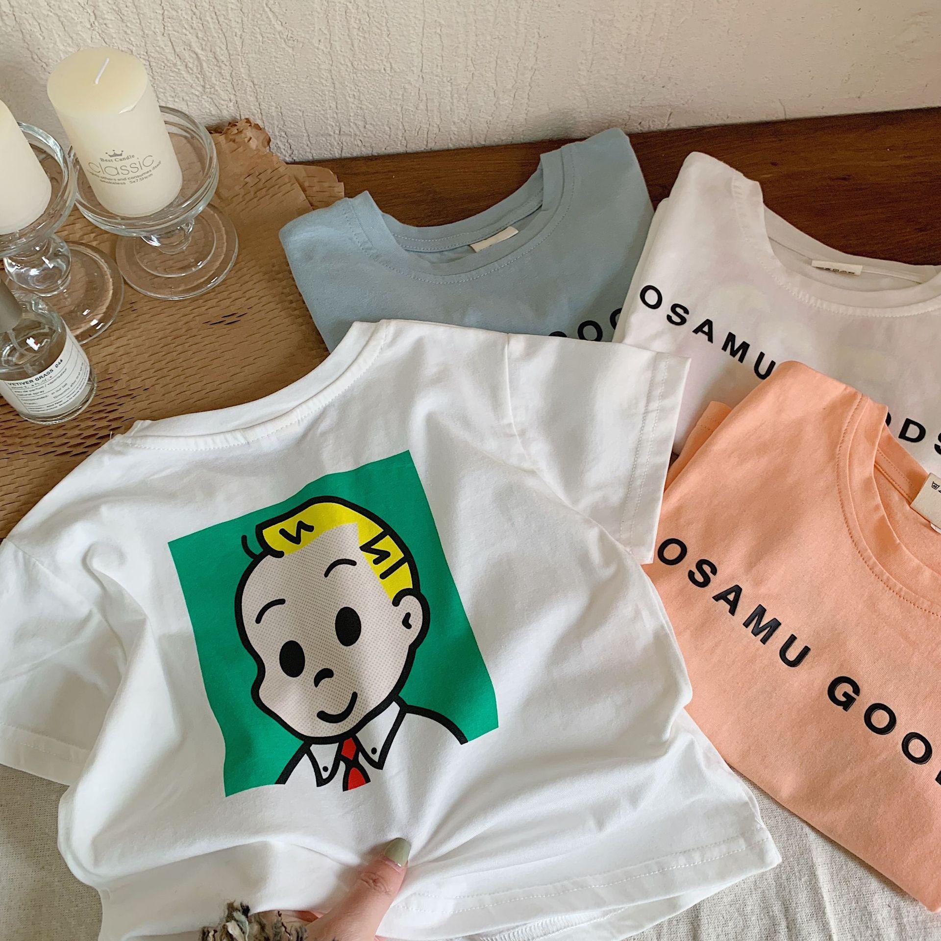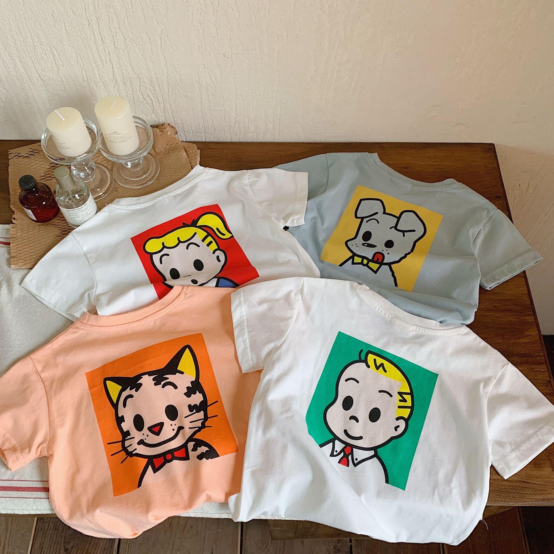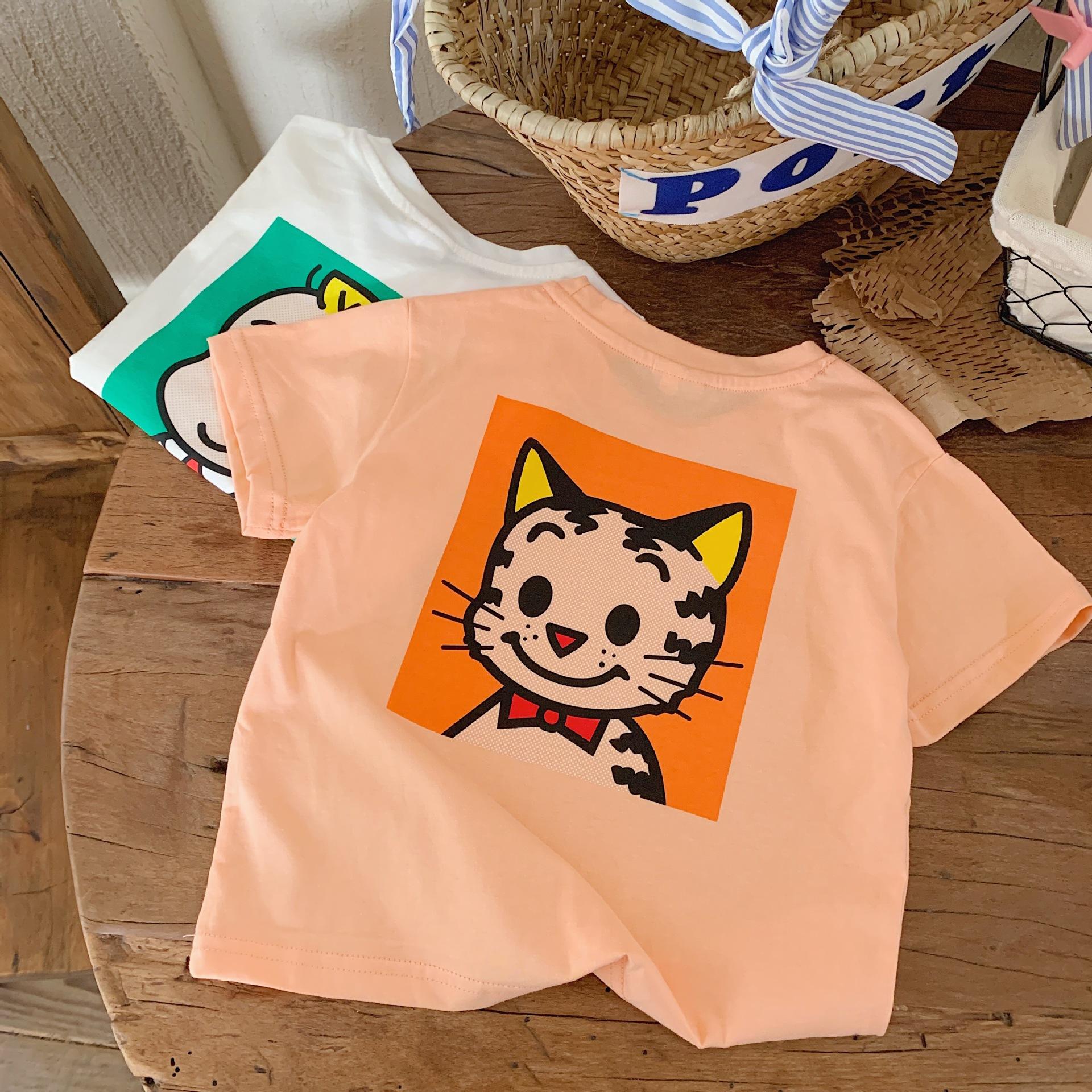 Camiseta de manga corta para niños, estilo coreano, verano 2025, nueva ropa para niños y niñas, camiseta japonesa con estampado de dibujos animados para bebés