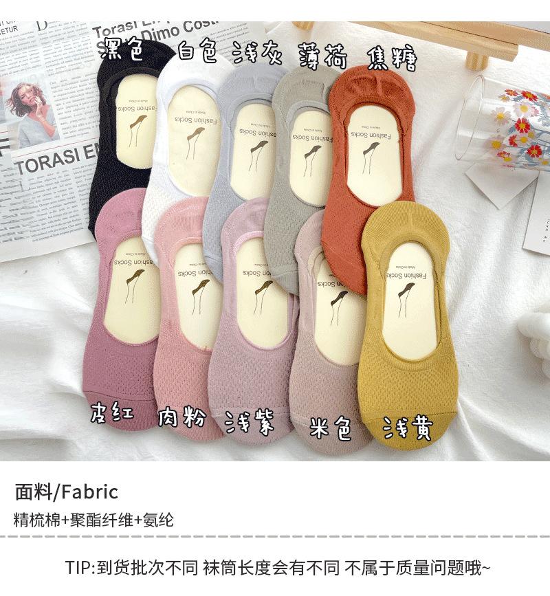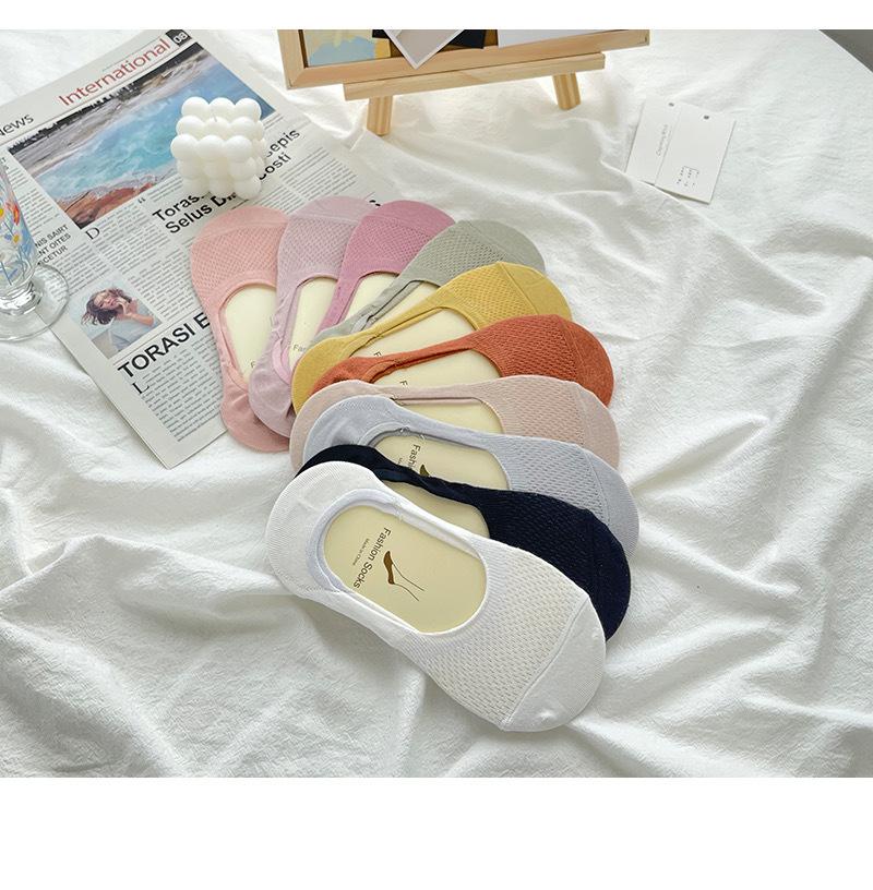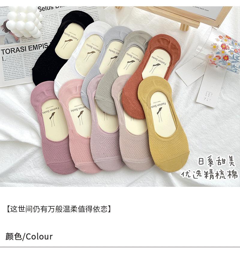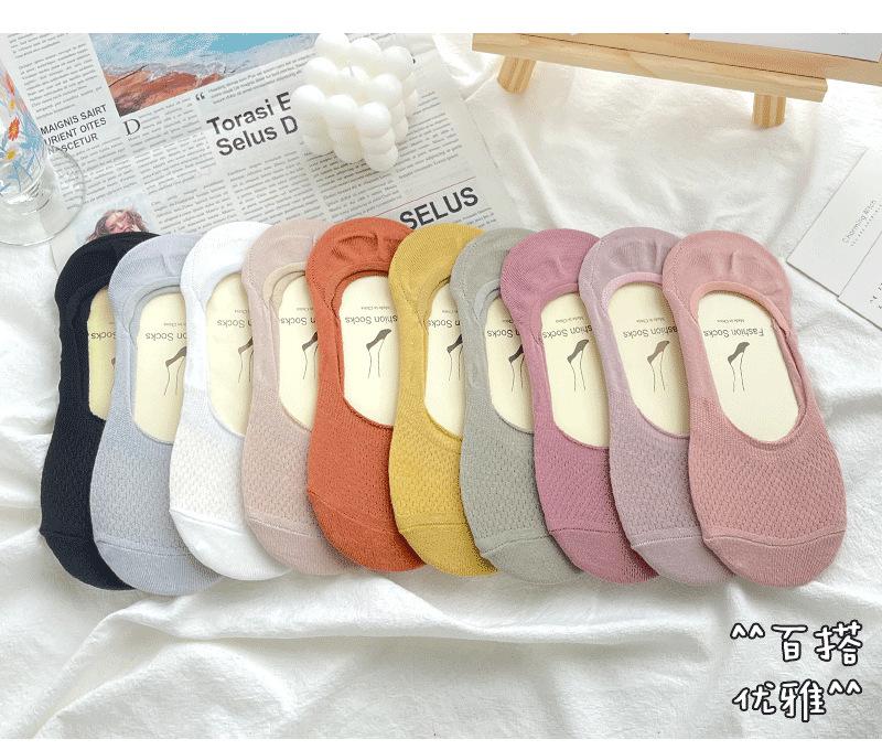 Calcetines invisibles de verano para mujer, finos, de boca baja, de algodón y silicona, que no se caen, de malla transpirable y antideslizante para primavera.