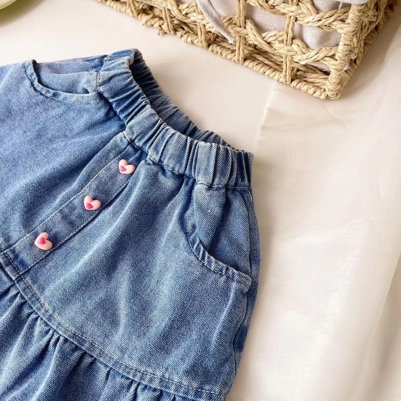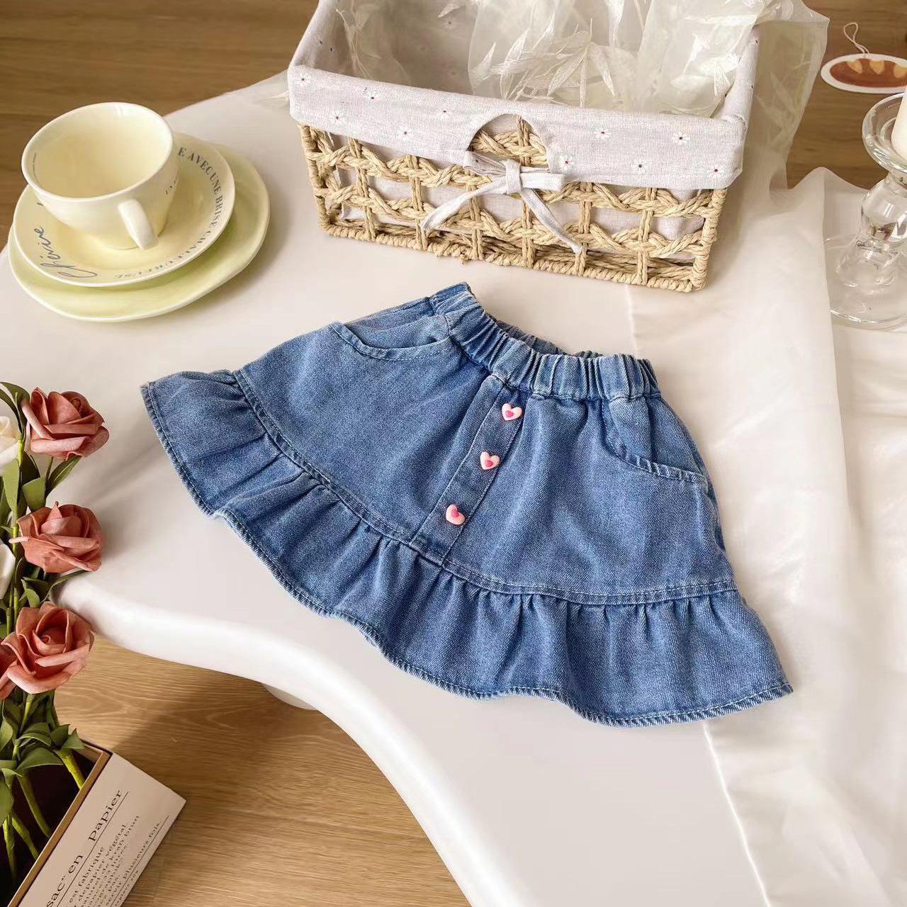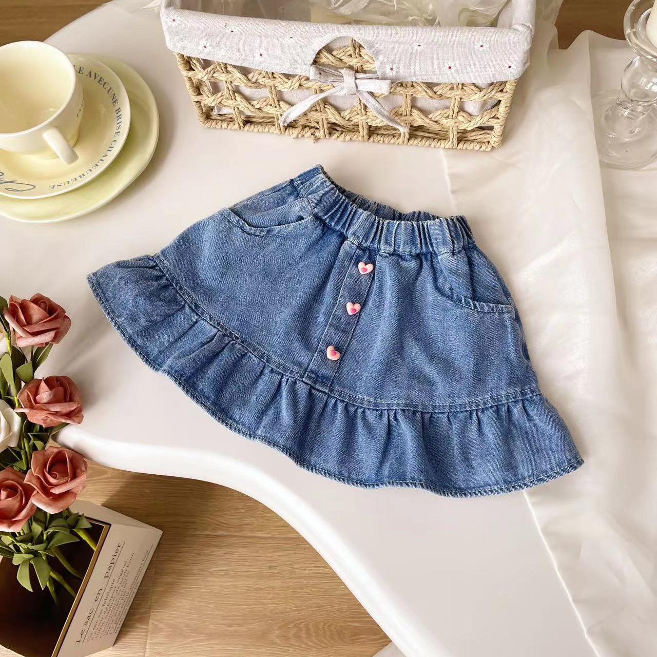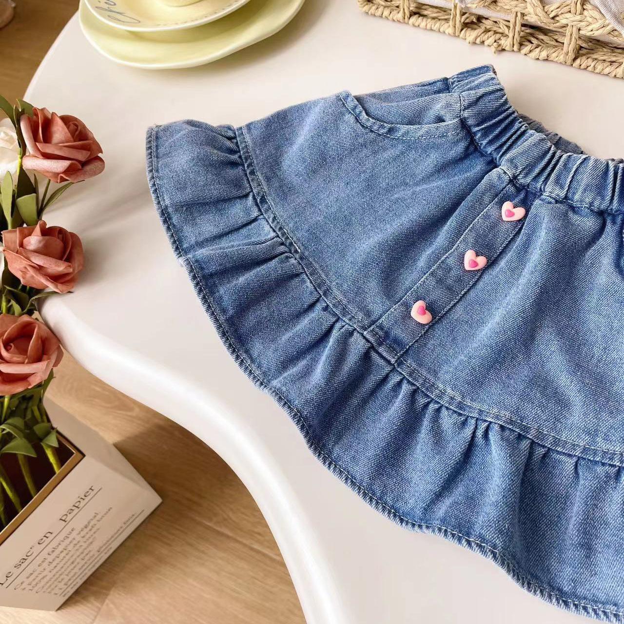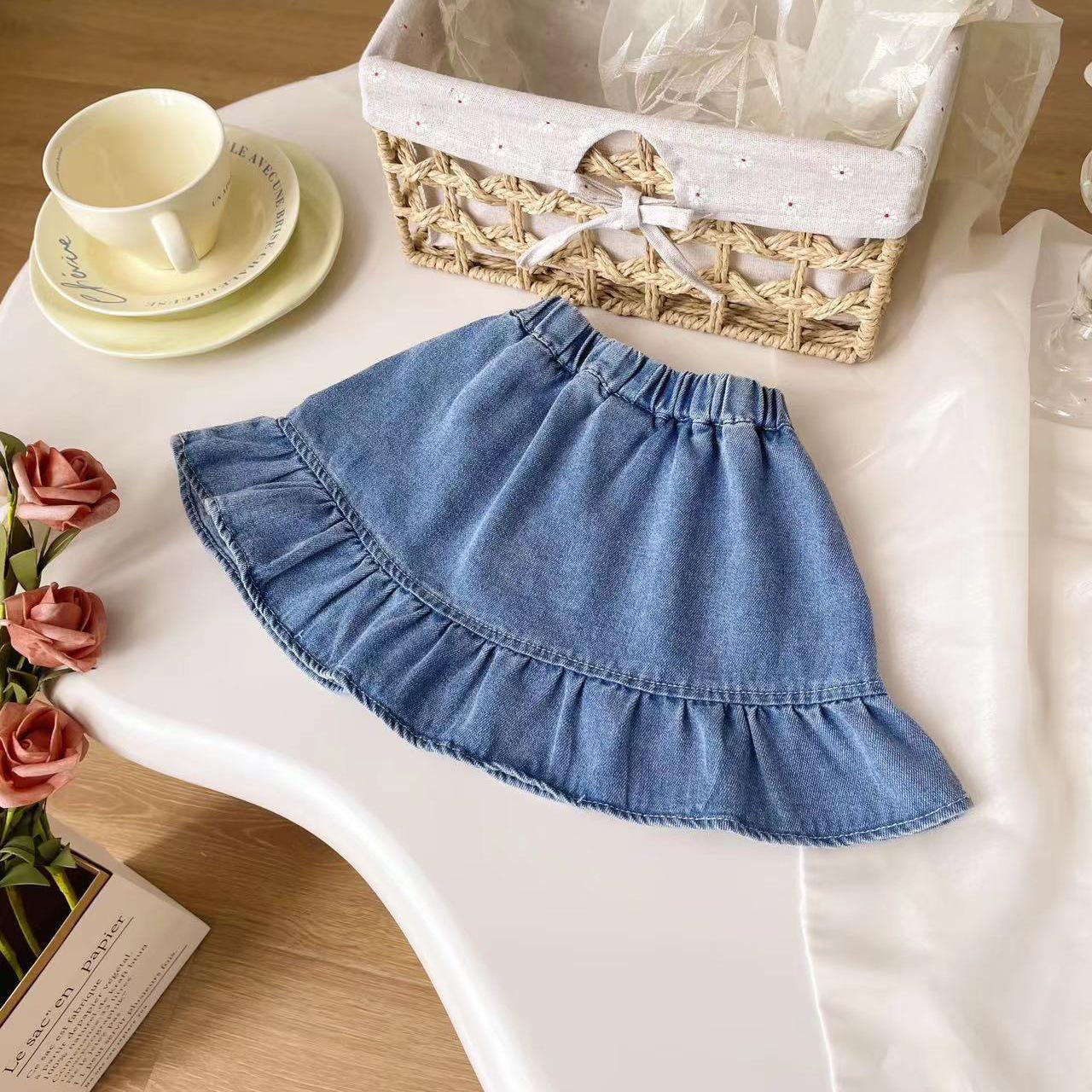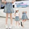 [Listo para enviar] Falda para niña 2024 Verano Falda corta de mezclilla para niña Falda para bebé más fácil de combinar Falda plisada de verano
