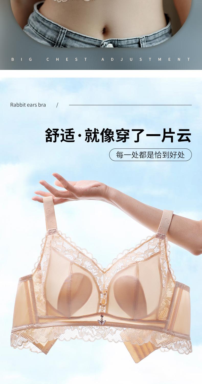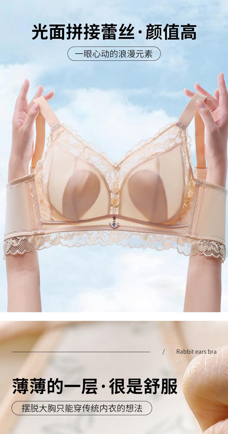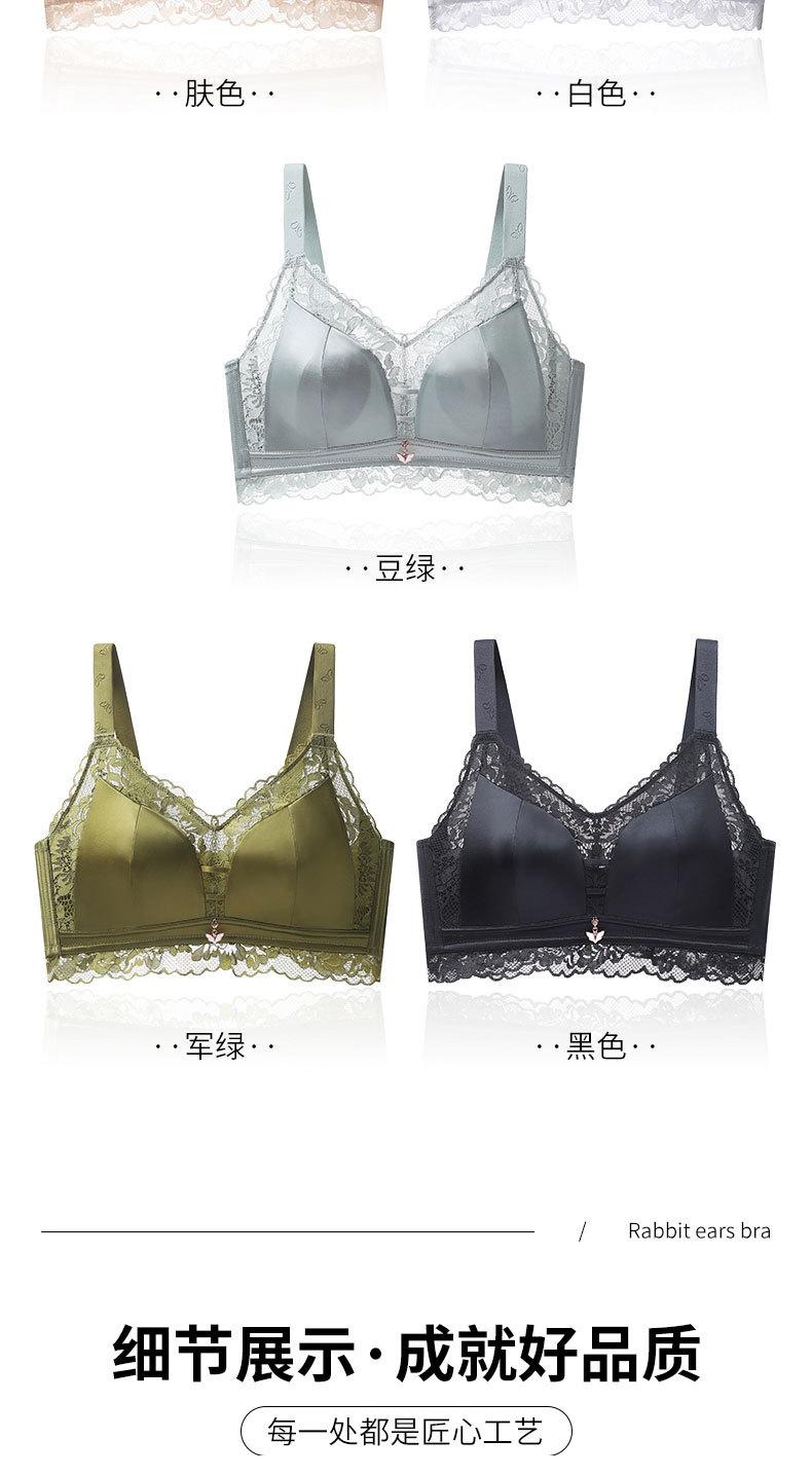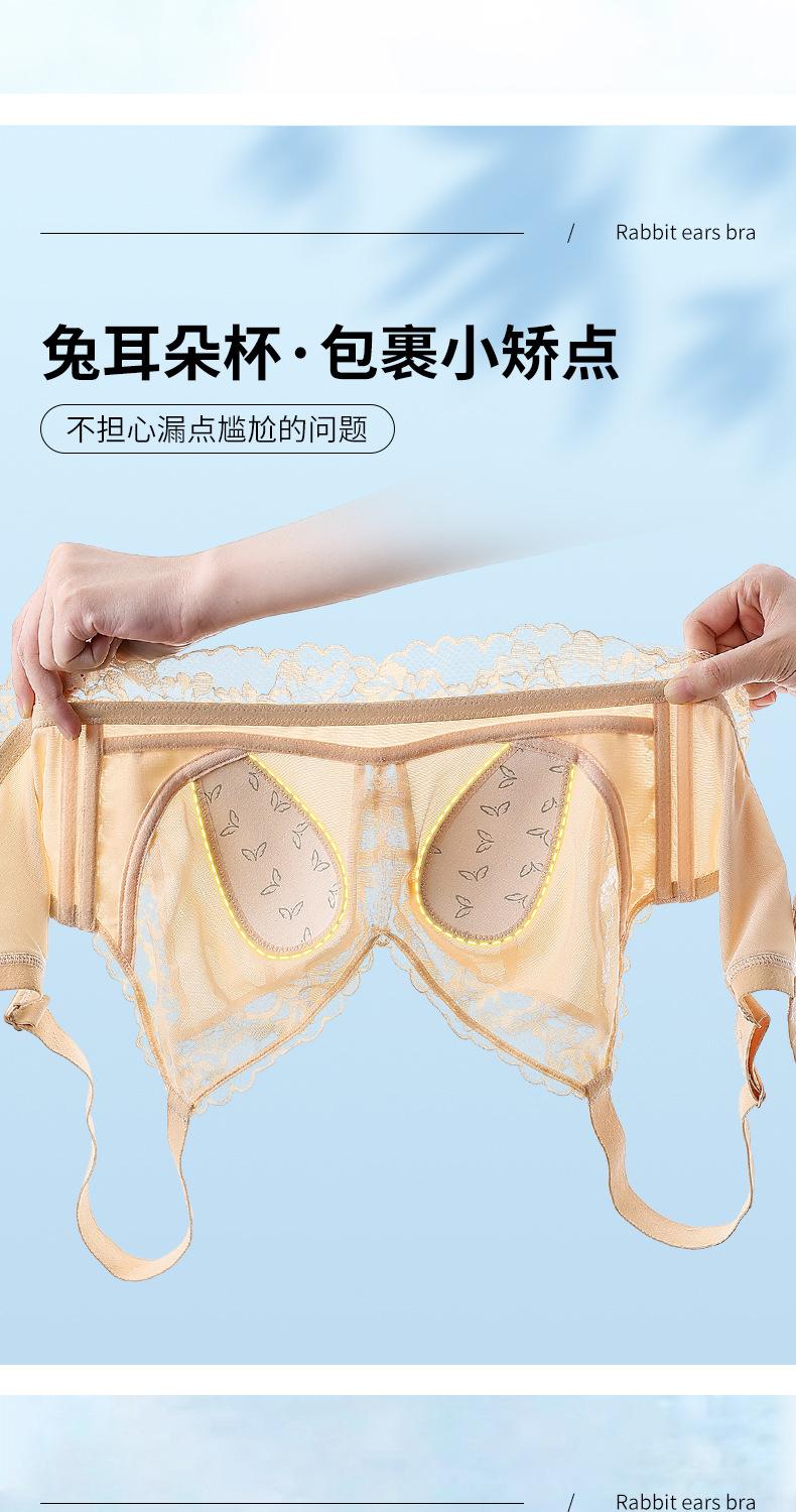Ropa interior de satén con encaje francés para mujer, sexy, con orejas de conejo, copas grandes, pecho pequeño, ligero, sujetador sin aros, push up, colección de pecho
