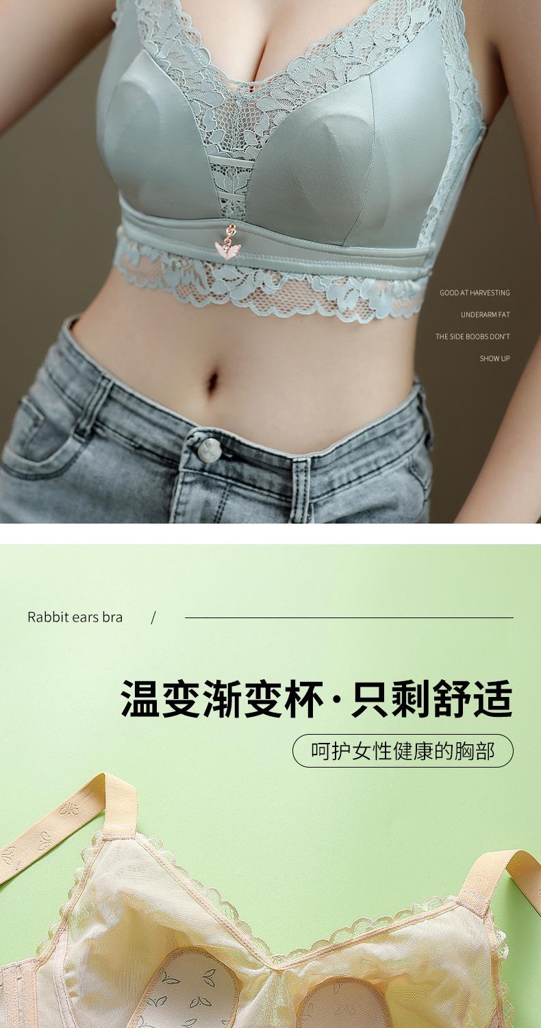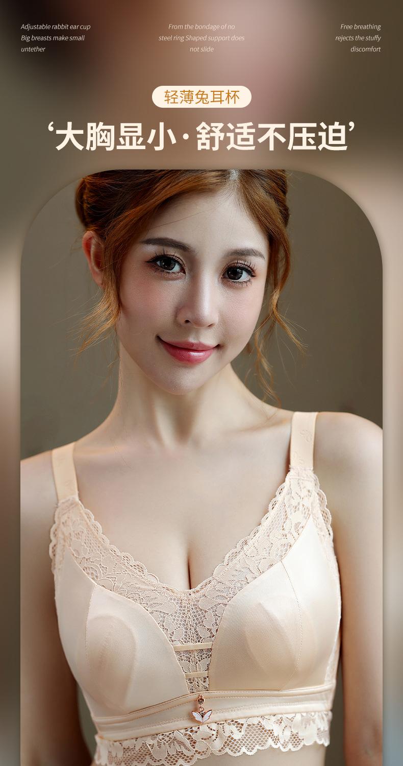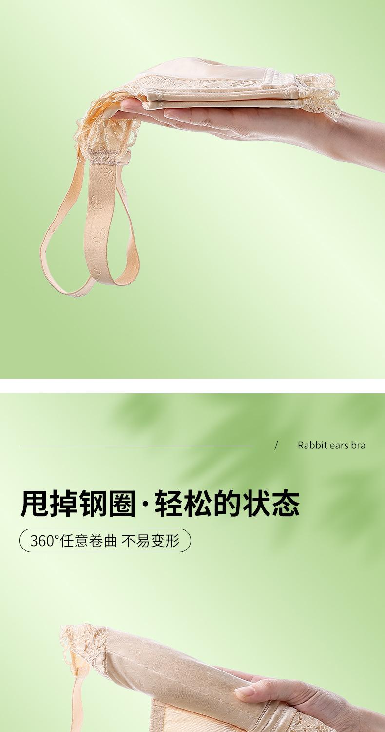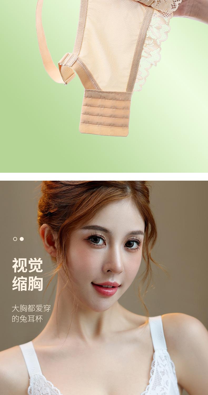 Ropa interior de satén con encaje francés para mujer, sexy, con orejas de conejo, copas grandes, pecho pequeño, ligero, sujetador sin aros, push up, colección de pecho