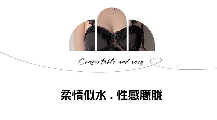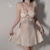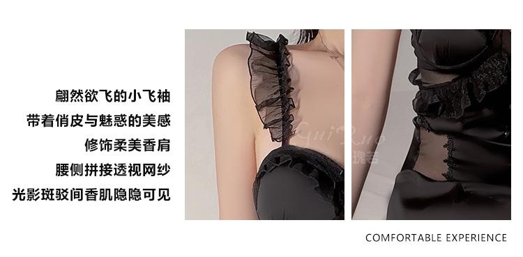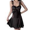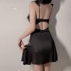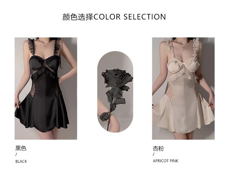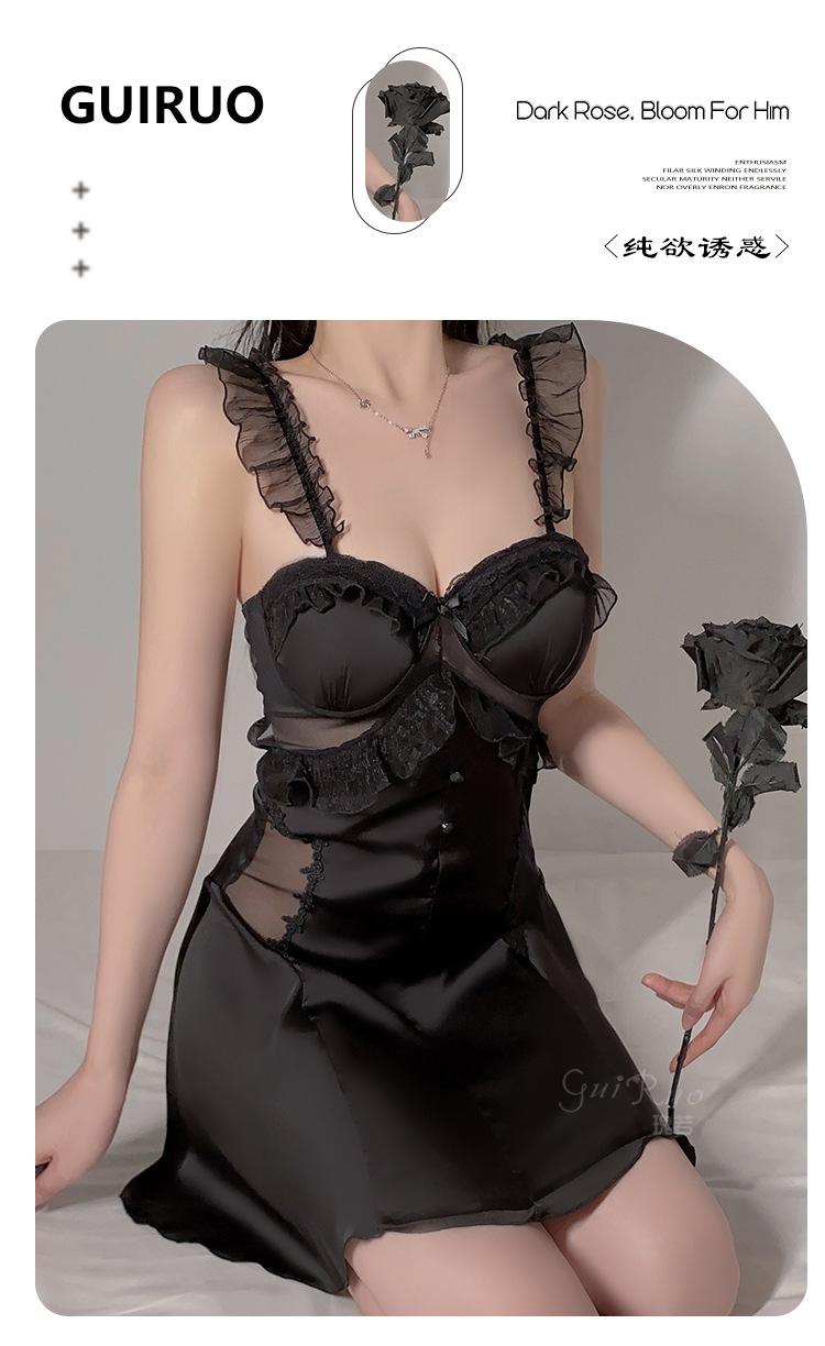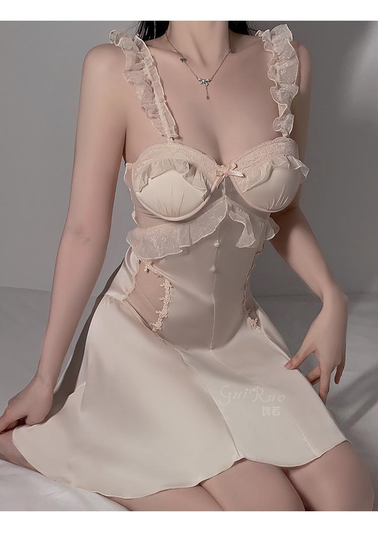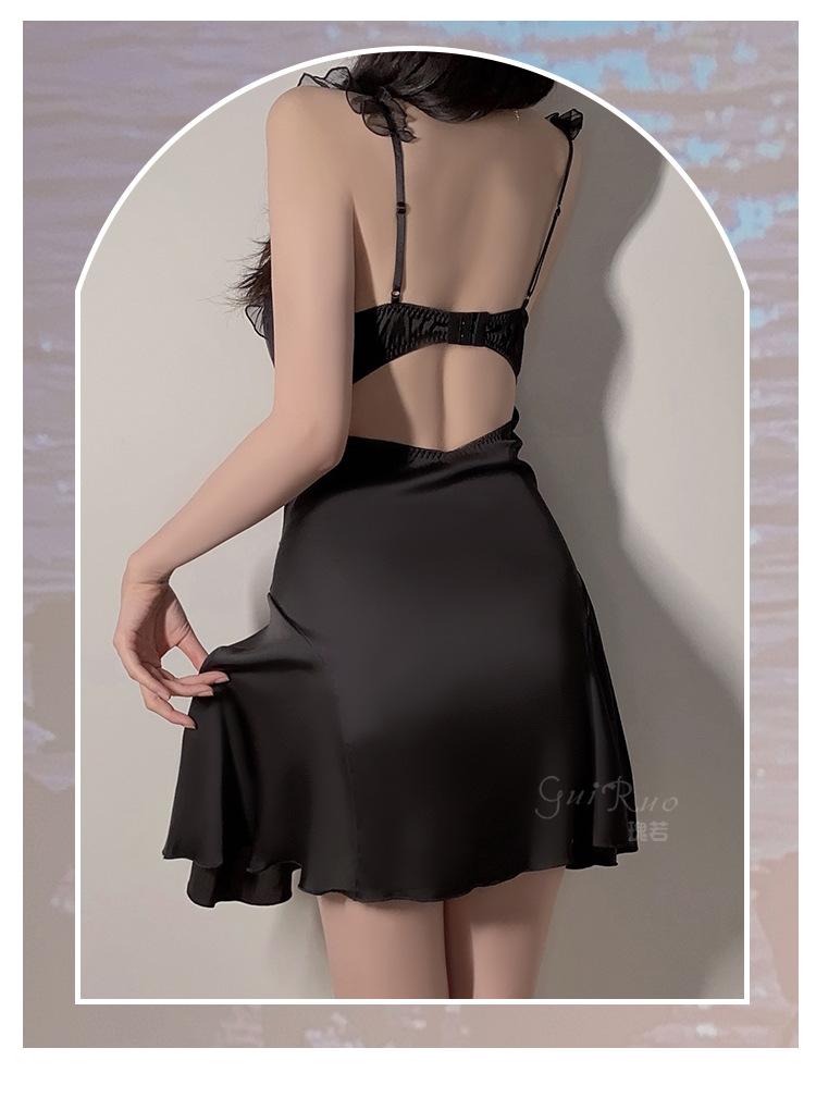 Guiruo Sexy Espalda Descubierta Tentación Más Almohadilla para el Pecho Recogido Seda de Hielo Cómodo Encaje Slip Falda Conjunto de Ropa para el Hogar P3457