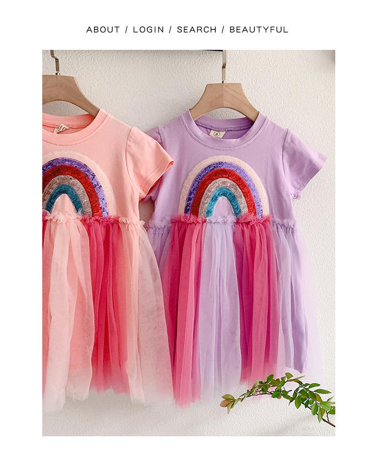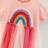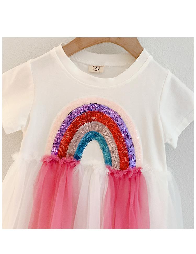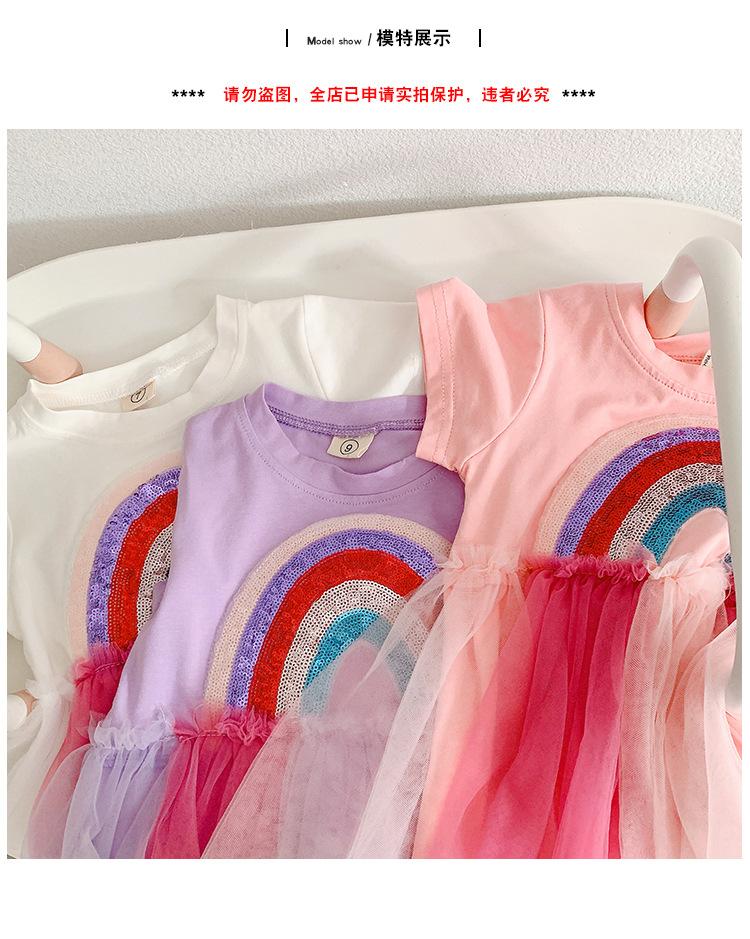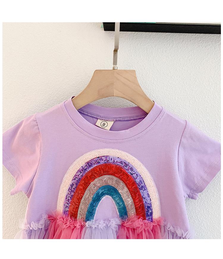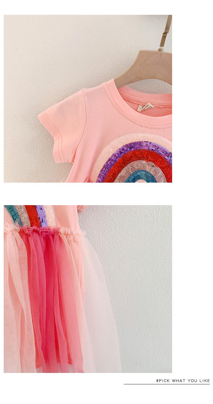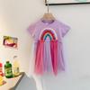 Ropa infantil, vestido de princesa de malla para niñas, vestido de celebridad de Internet para niños, nuevo vestido de verano de estilo arcoíris para bebés 2021