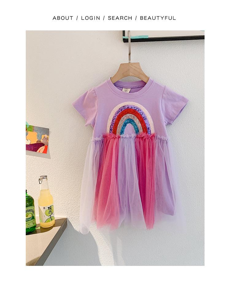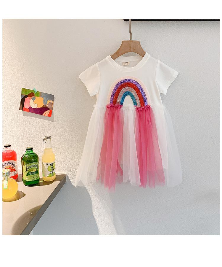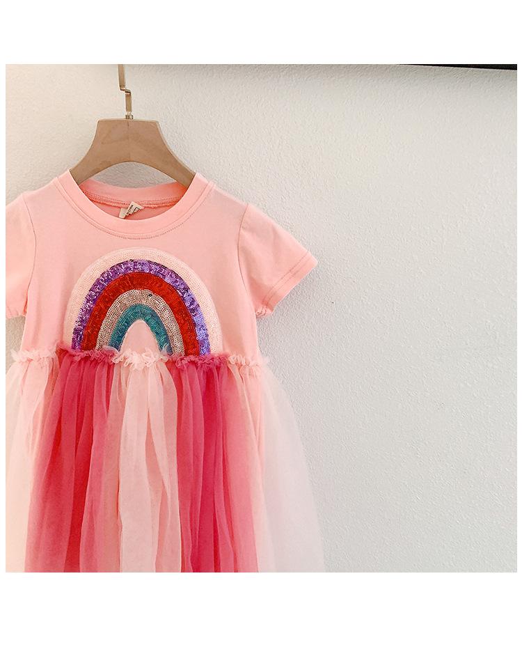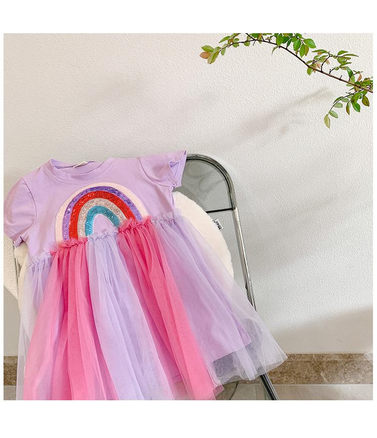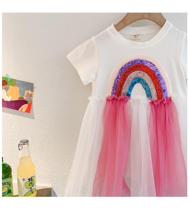 Ropa infantil, vestido de princesa de malla para niñas, vestido de celebridad de Internet para niños, nuevo vestido de verano de estilo arcoíris para bebés 2021