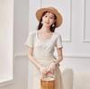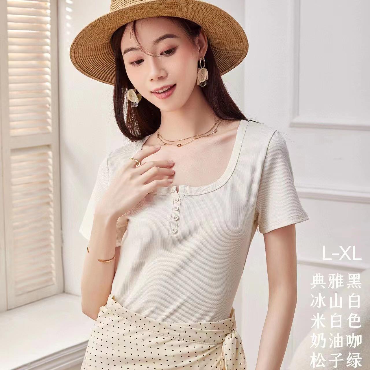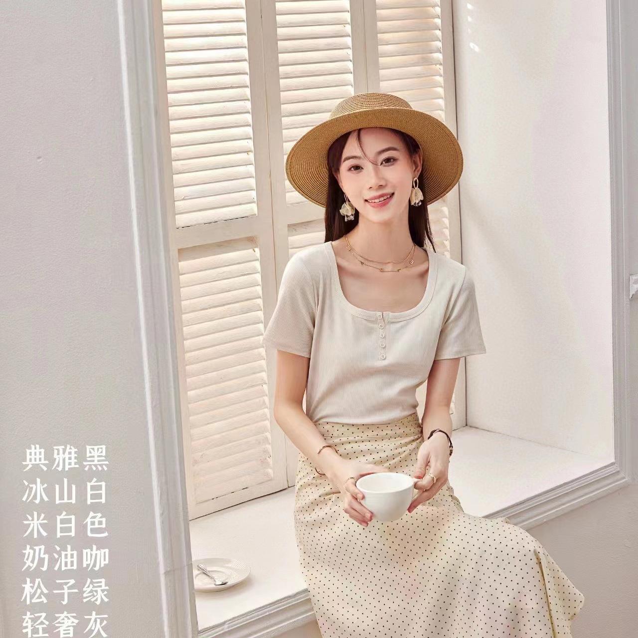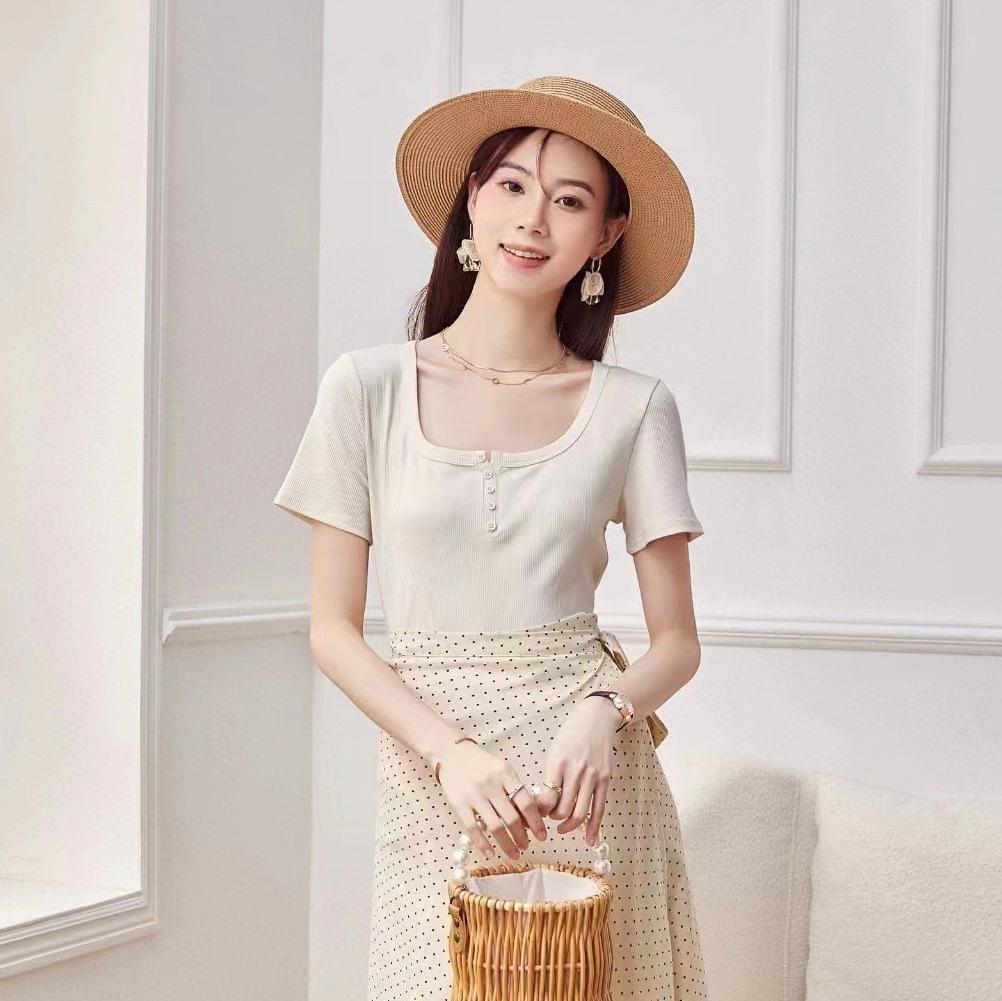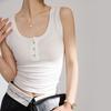 Camisola con botones Design Sense Niche para mujer, estilo dulce y sexy de verano, camiseta básica, corte entallado, corte adelgazante, top corto en forma de I