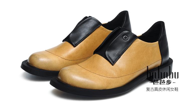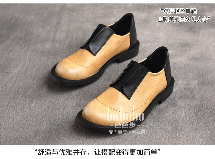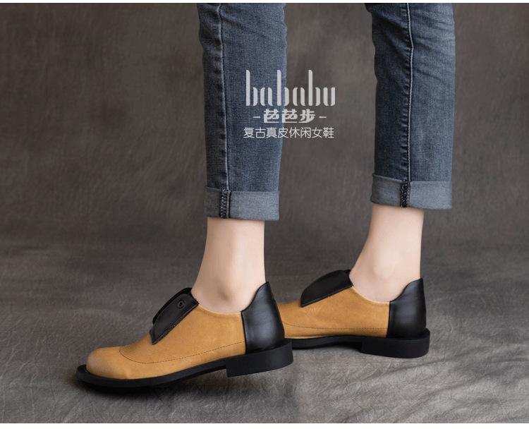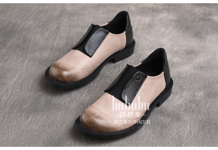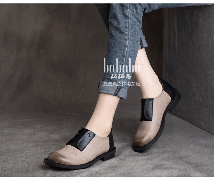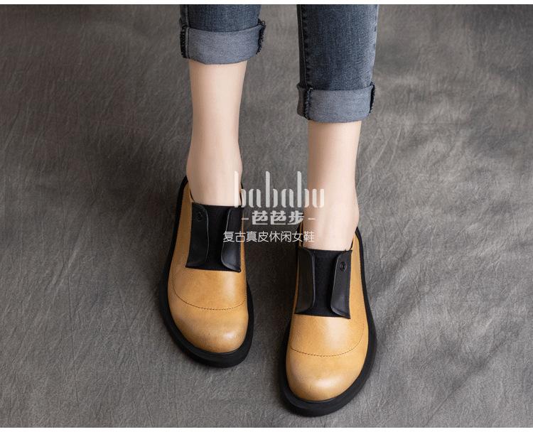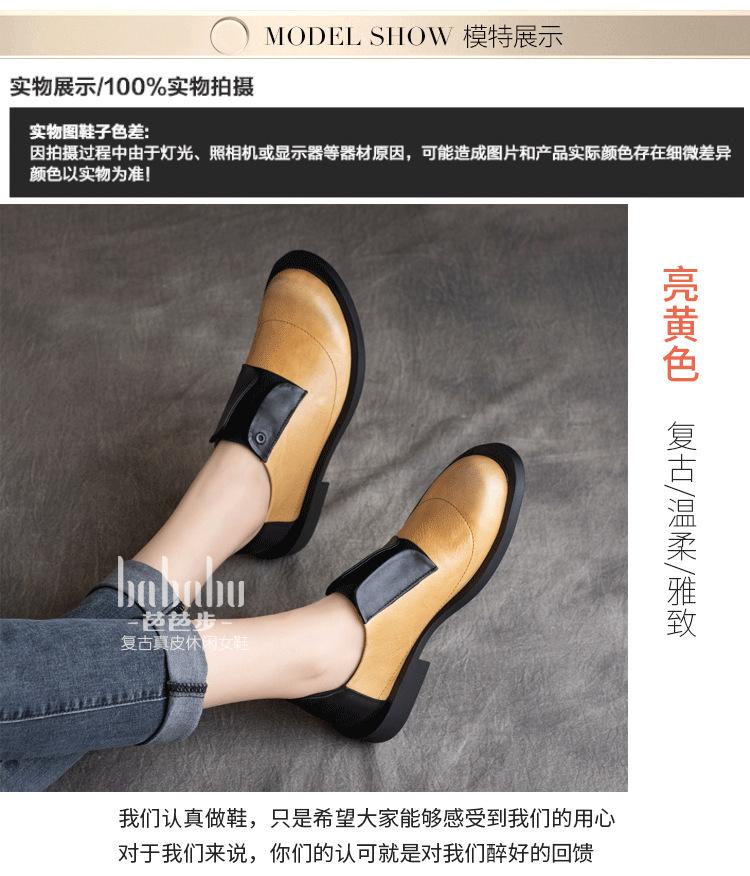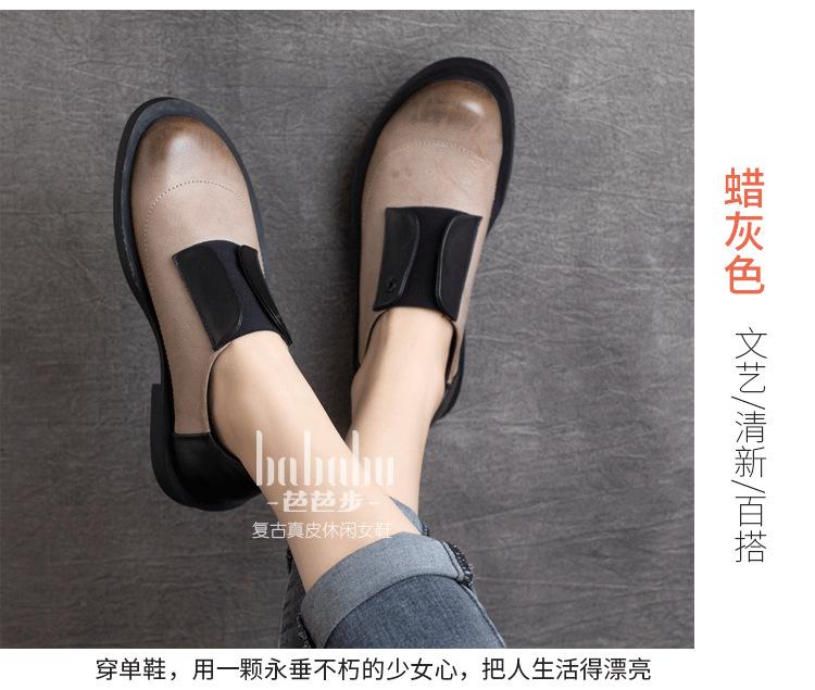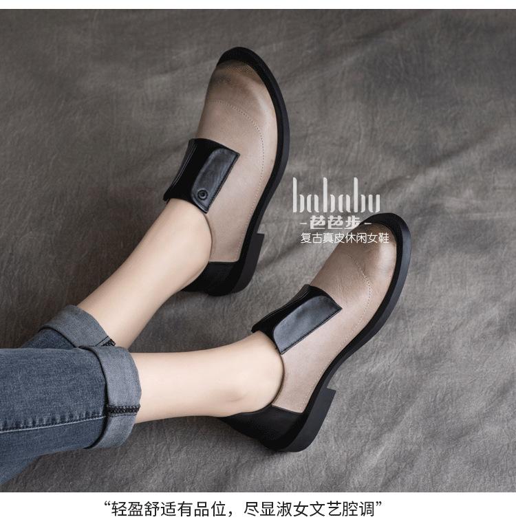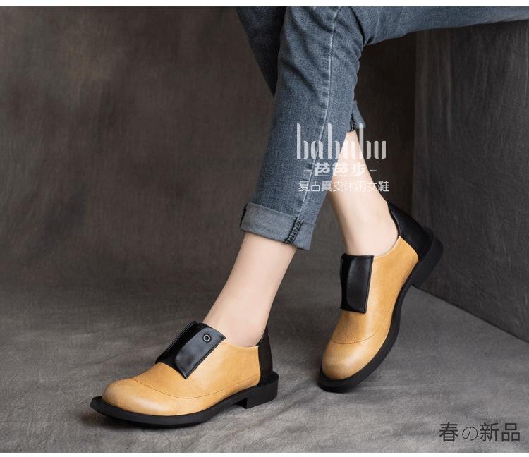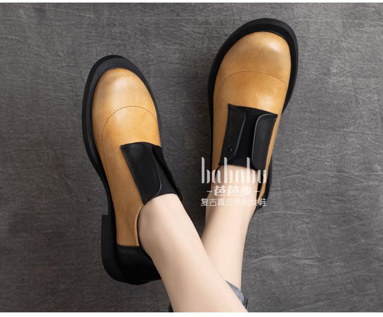 Primavera 2025 Nuevo Estilo Retro Británico Piel Vacuna Slip-On Plano Zapatos de Cuero Suave Boca Profunda Zapatos de Mujer