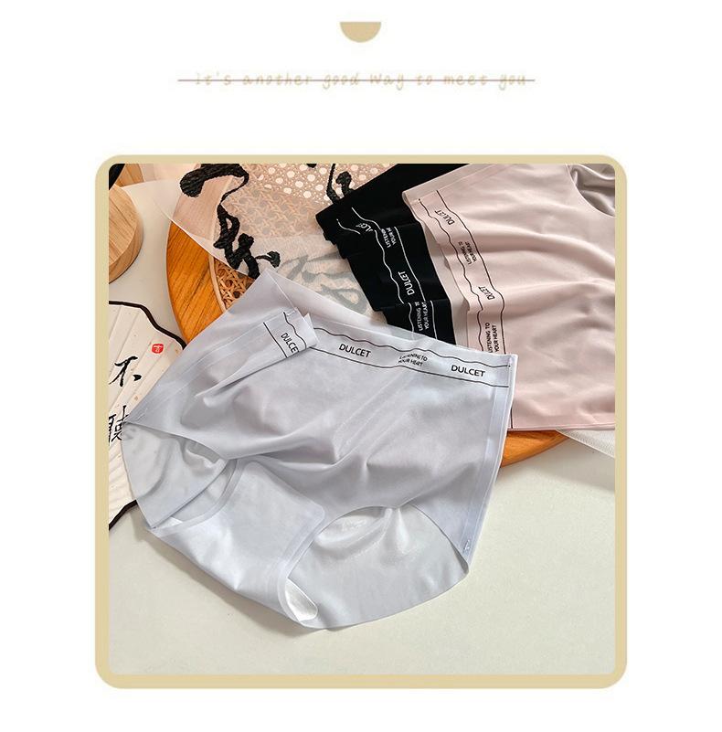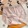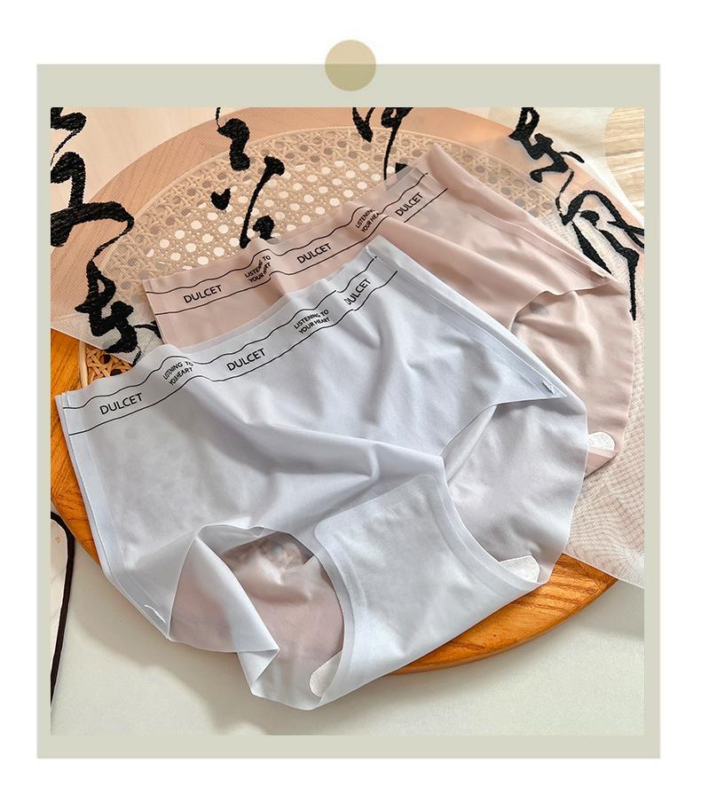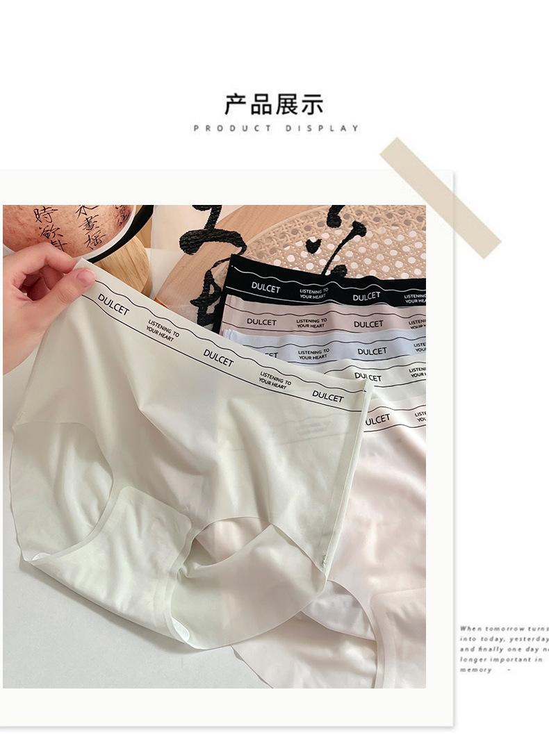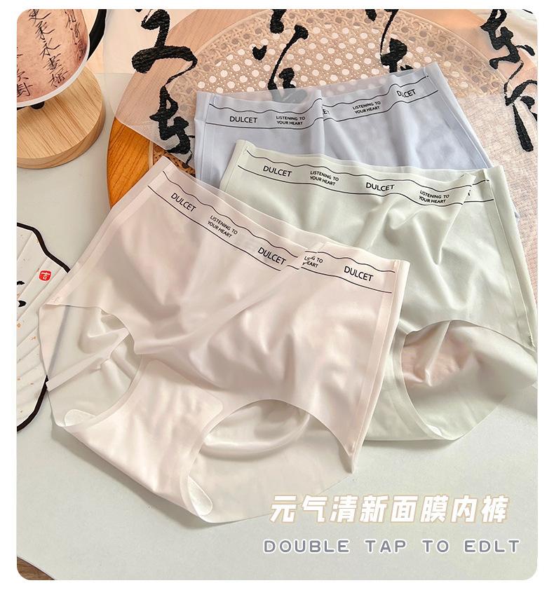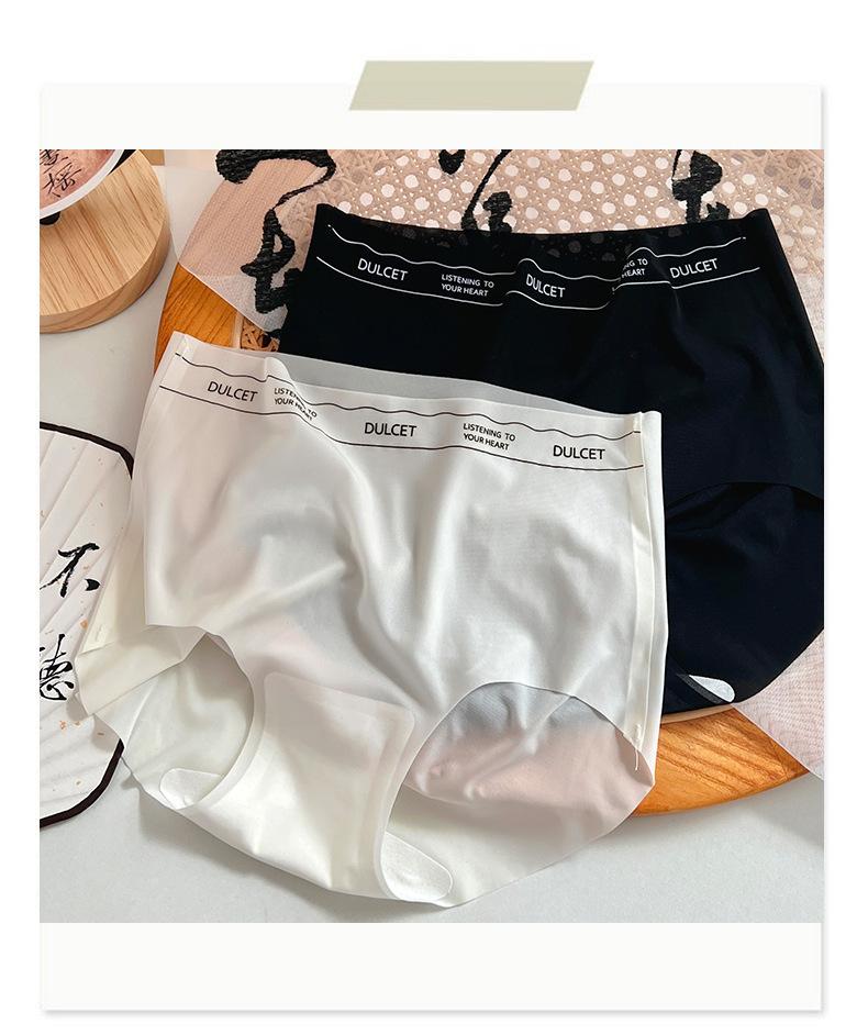 Ropa interior de cintura media sin marcas de seda helada japonesa para chica dulce, bragas ultrafinas de algodón puro con cintura con letras para mujer