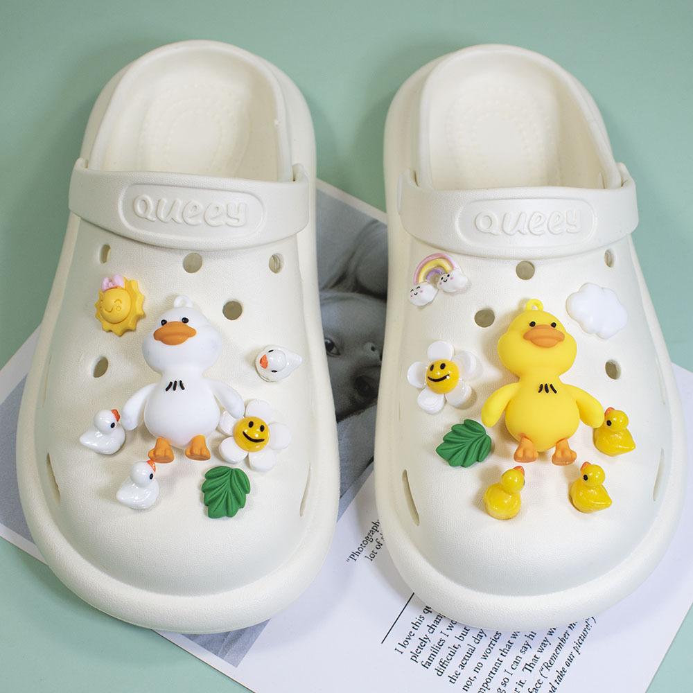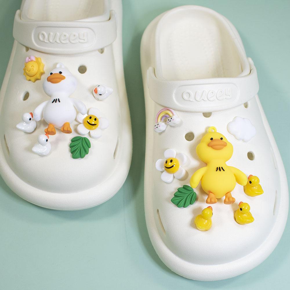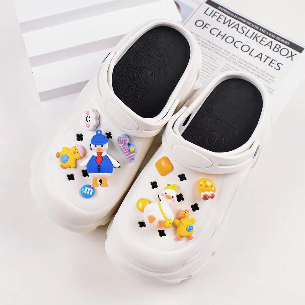 Nuevos Dibujos Animados Doodle Pato Zapatos Cueva Accesorios Celebrante de Internet Explosiones Recarga Muñeco de Pato PVC Goteo Pegamento Zapatos Hebilla de Zapato de Flor