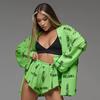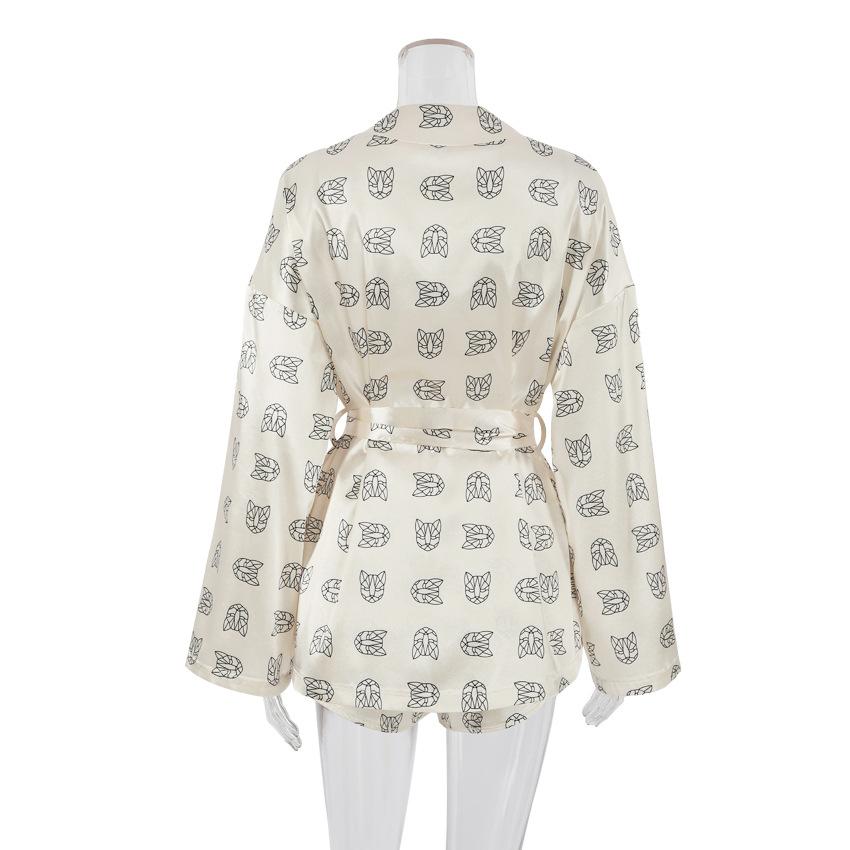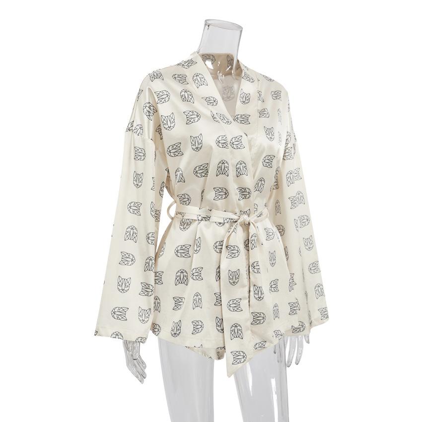 Pijamas finos de verano de manga larga y cómoda con estampado suave y textura de moda europea y americana 2024, ropa de hogar transfronteriza para mujer