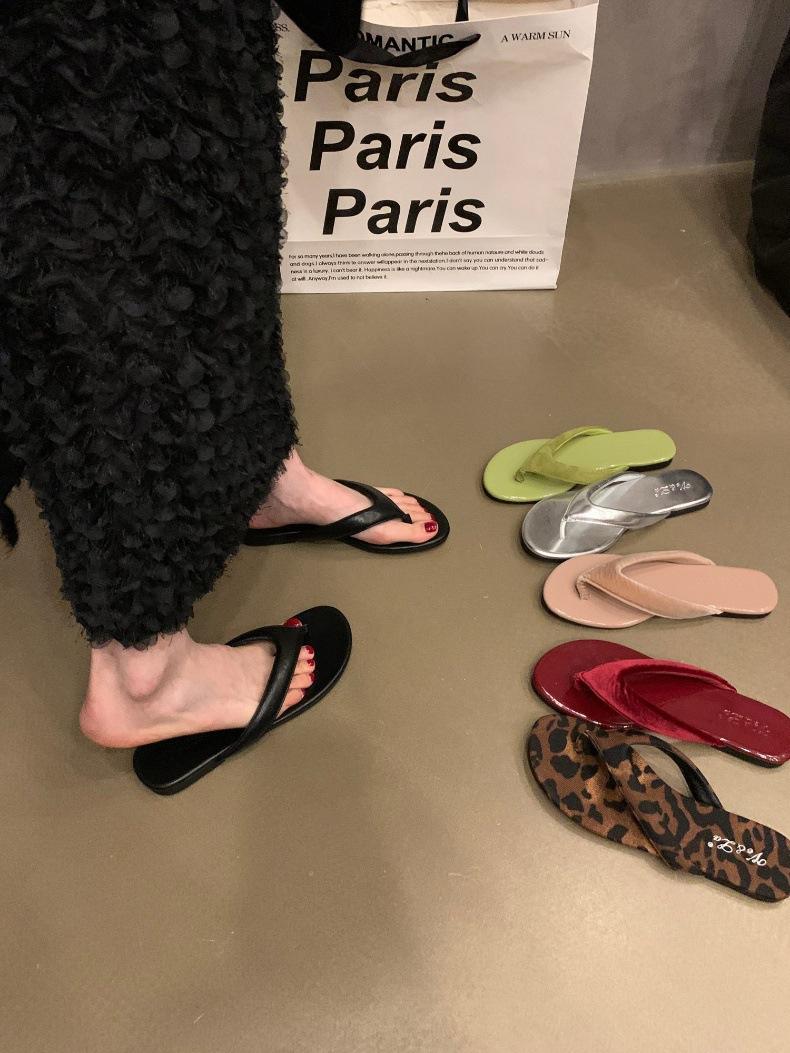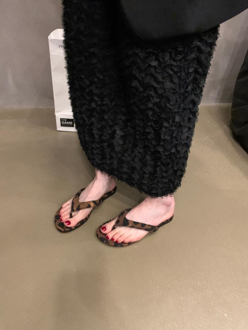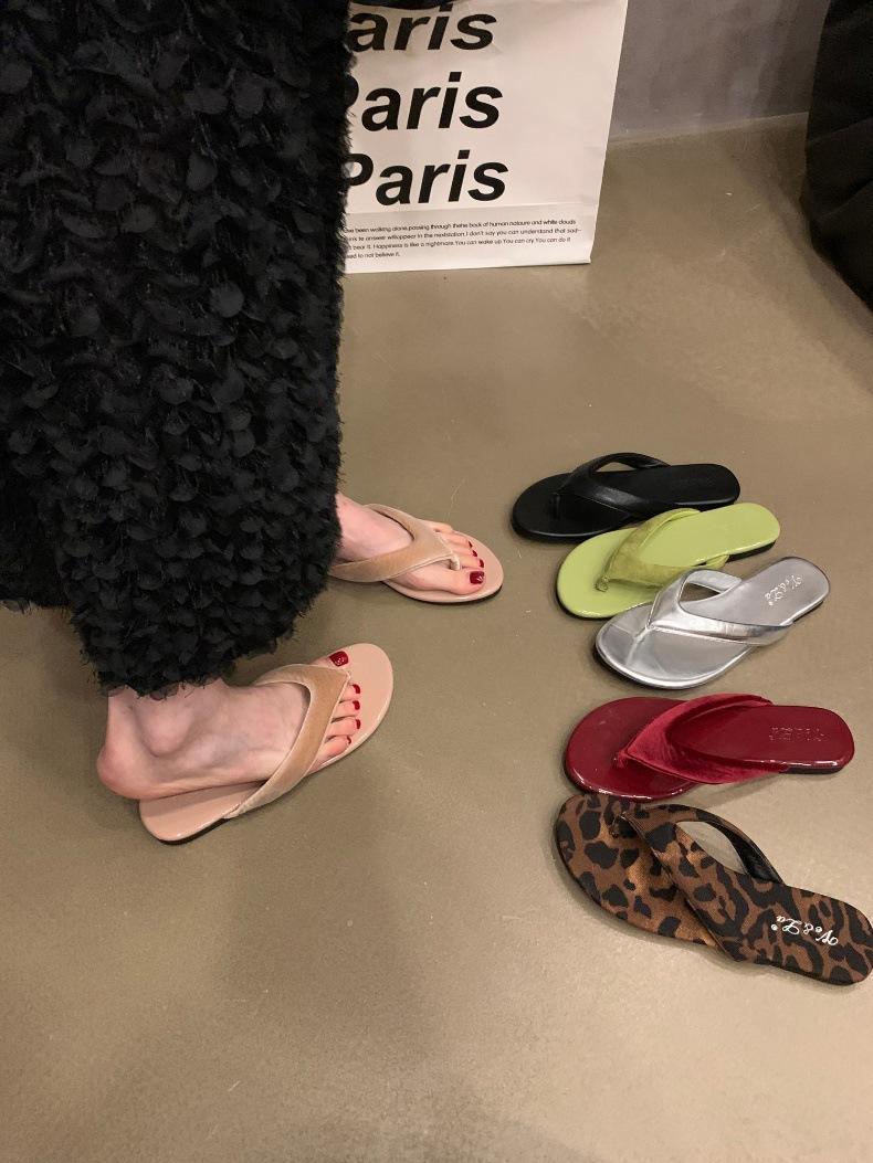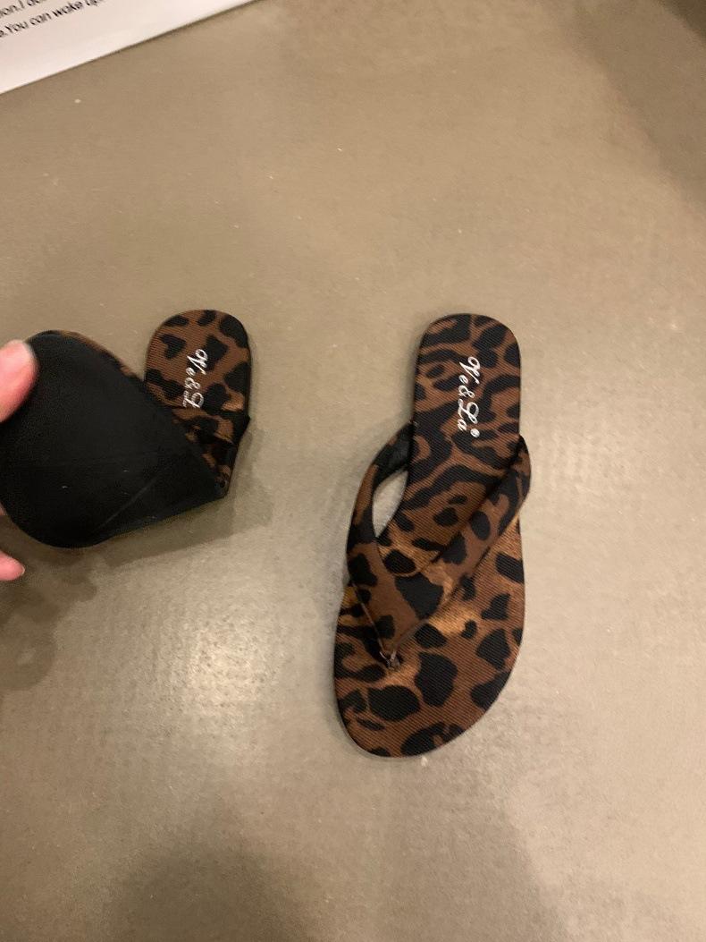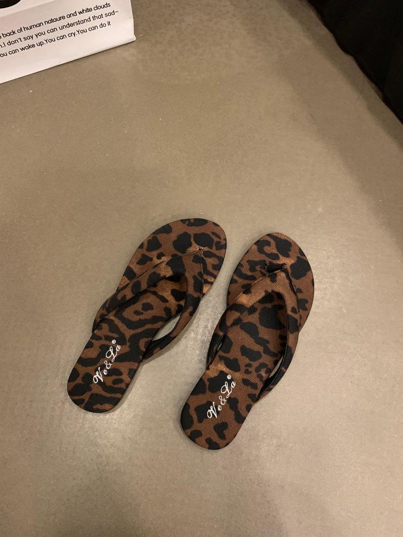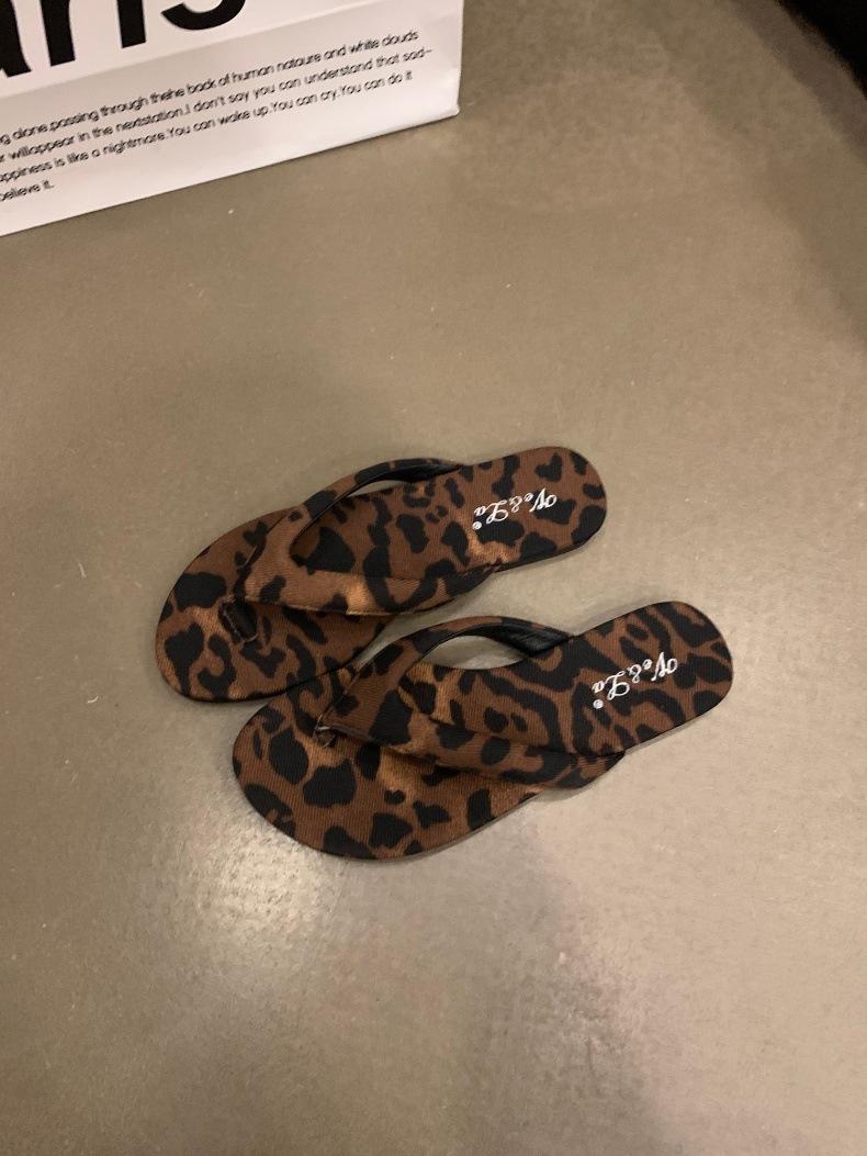 Moda Ins Chanclas planas plateadas para mujer Verano para exterior Sandalias Pantuflas Estampado de leopardo Chanclas de playa Zapatos de mujer