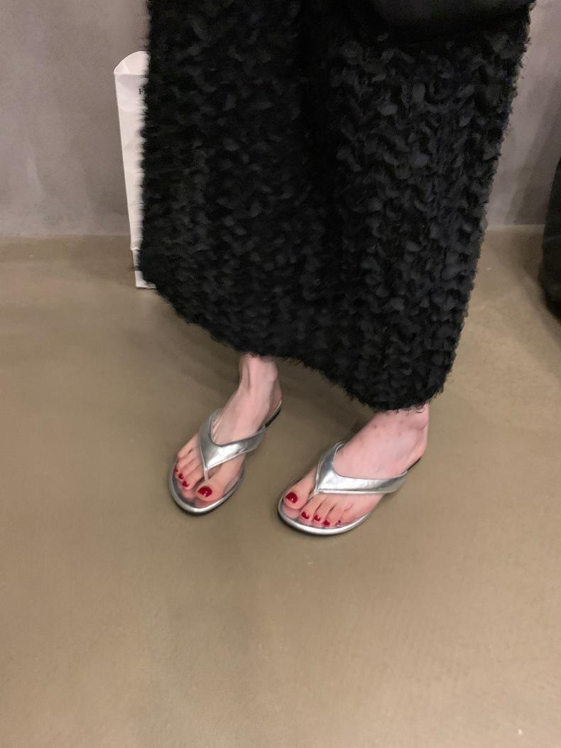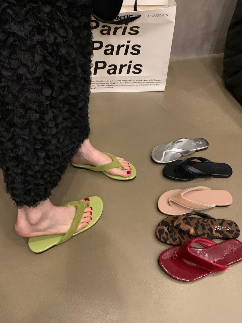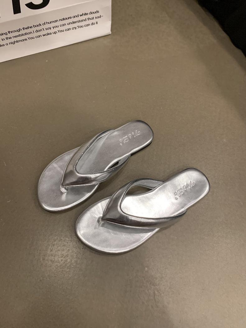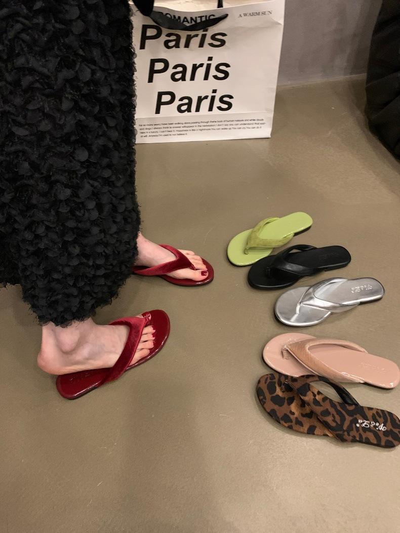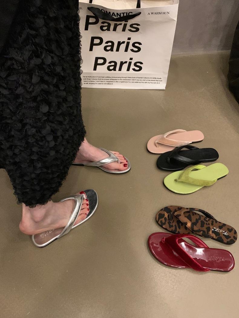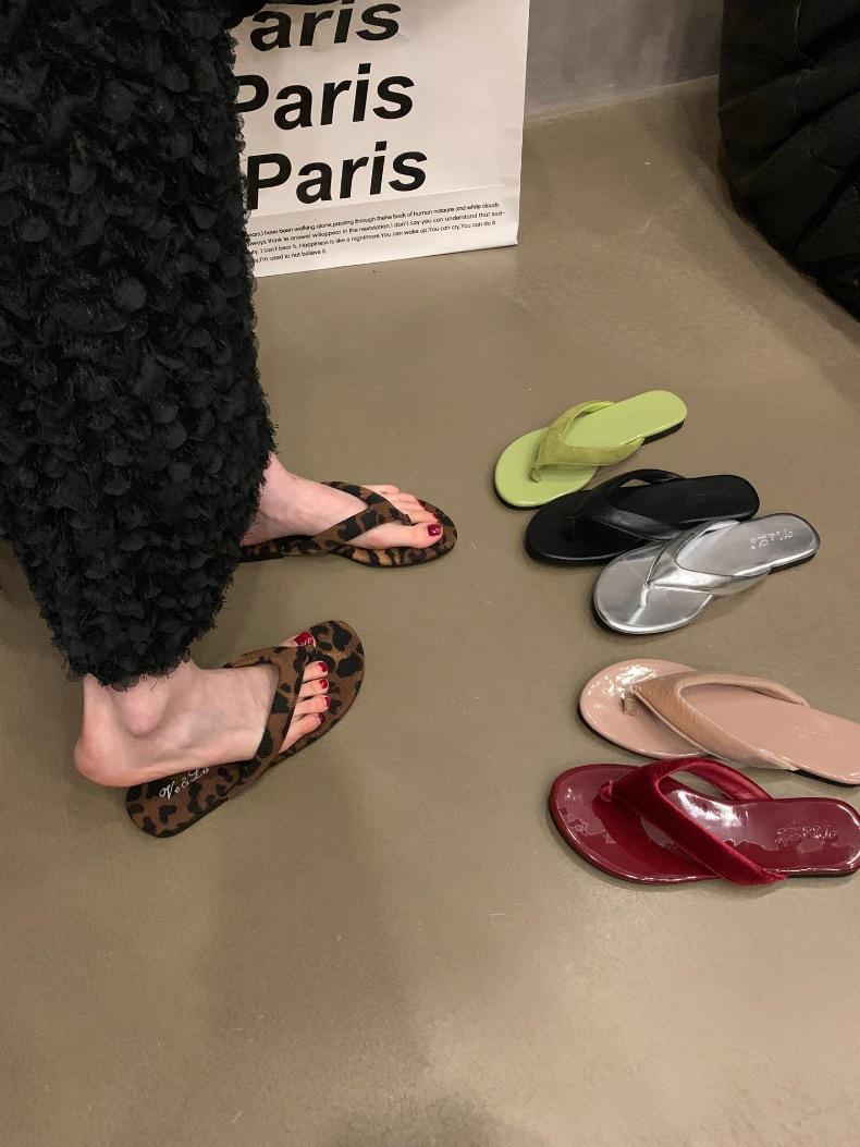 Moda Ins Chanclas planas plateadas para mujer Verano para exterior Sandalias Pantuflas Estampado de leopardo Chanclas de playa Zapatos de mujer