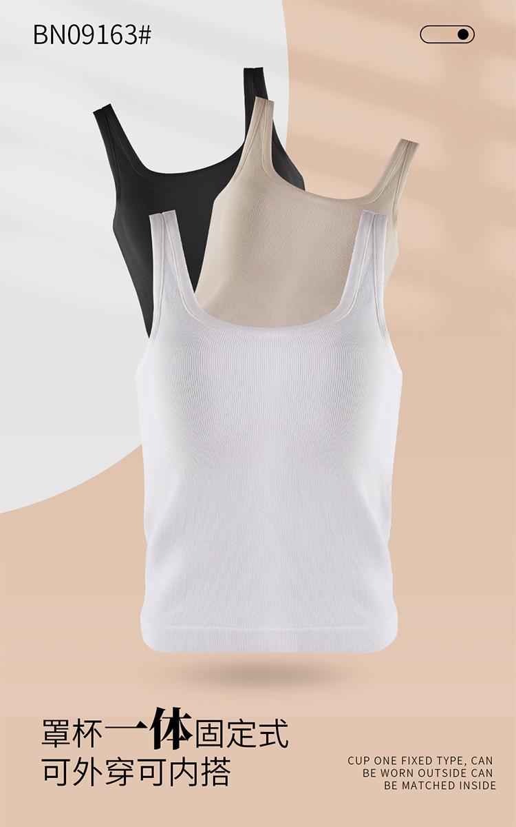 Top chaleco ligero inalámbrico para mujer con copa fija de amarre redondo, sencillo para combinar con todo, para usar debajo, casual, para exterior, tres colores opcionales