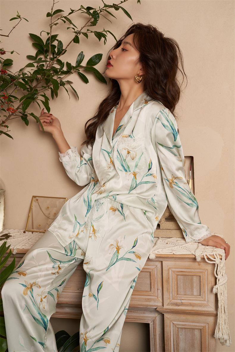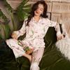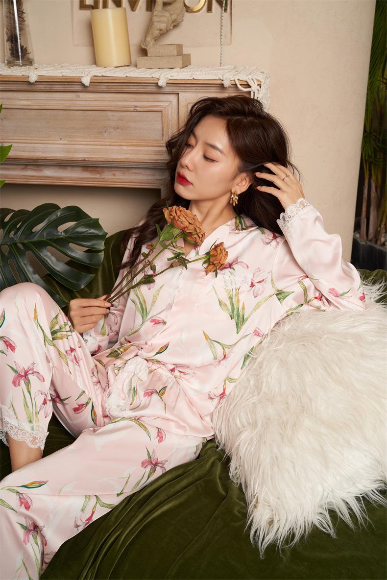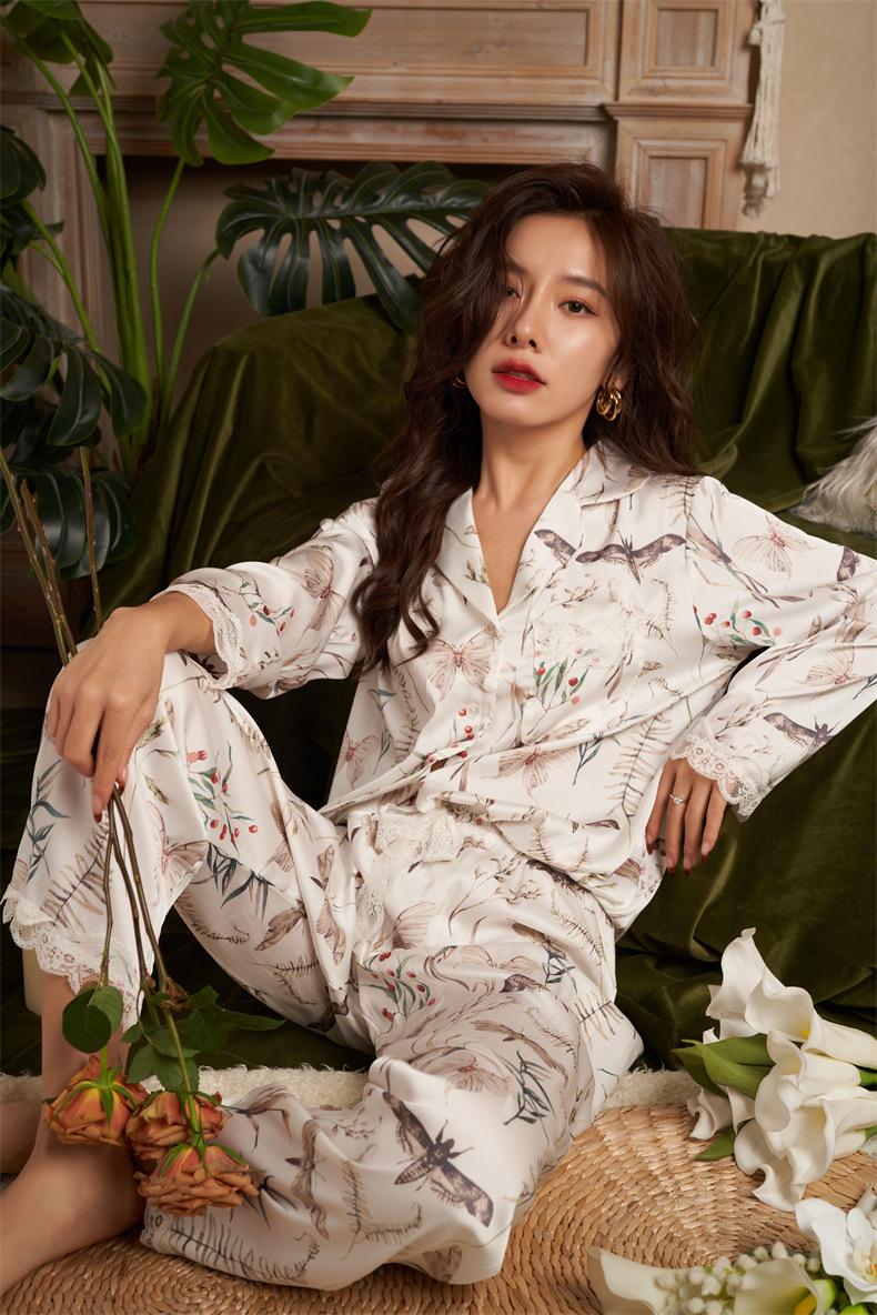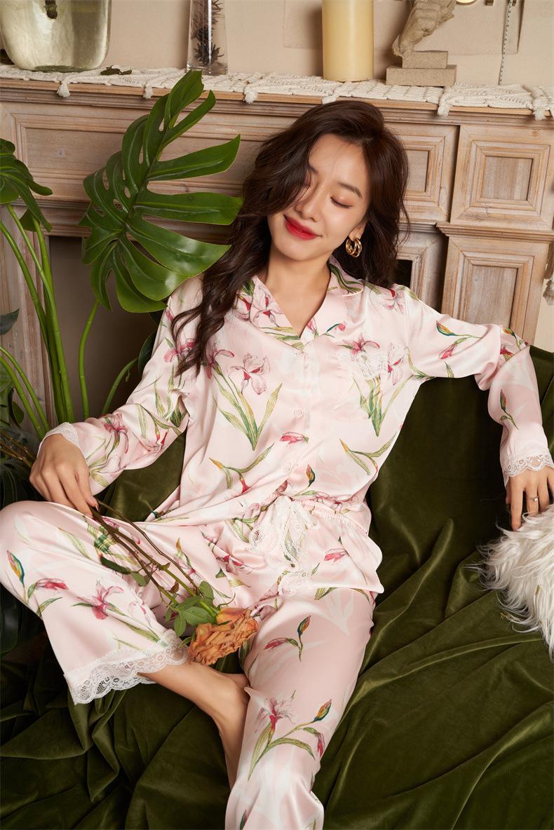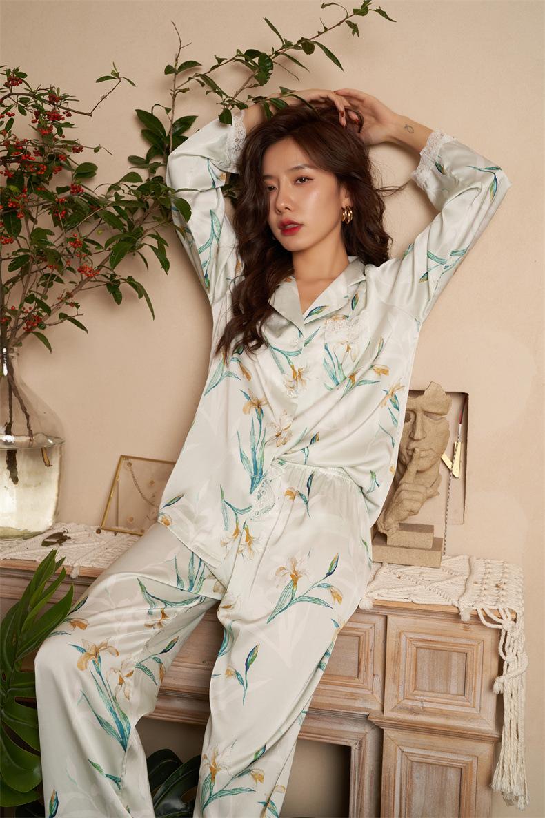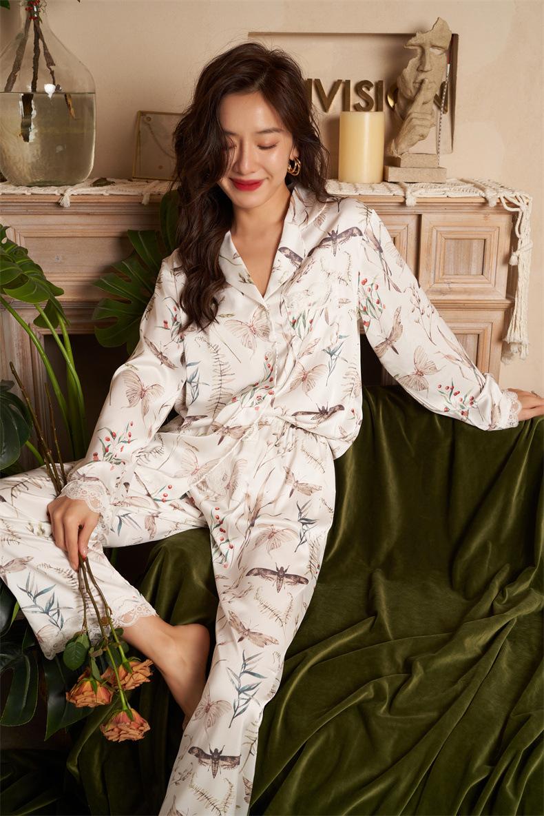 Pijama de seda de hielo para mujer, traje de primavera y verano de manga larga, sexy, de encaje de imitación de seda, ropa de casa de gran tamaño, una generación de cabello