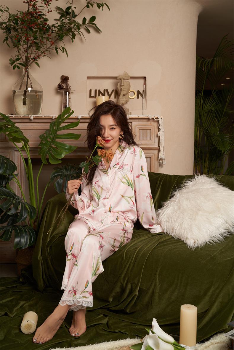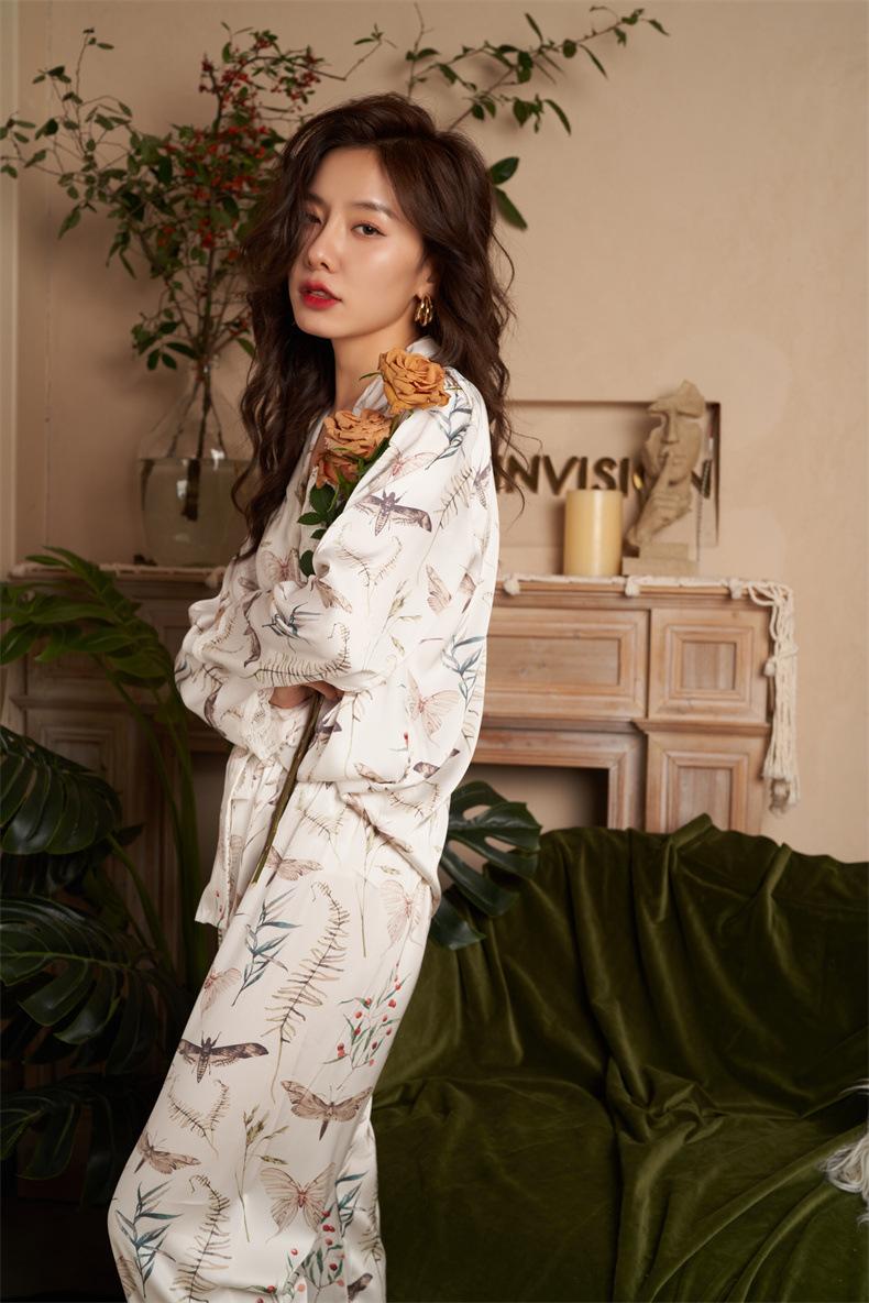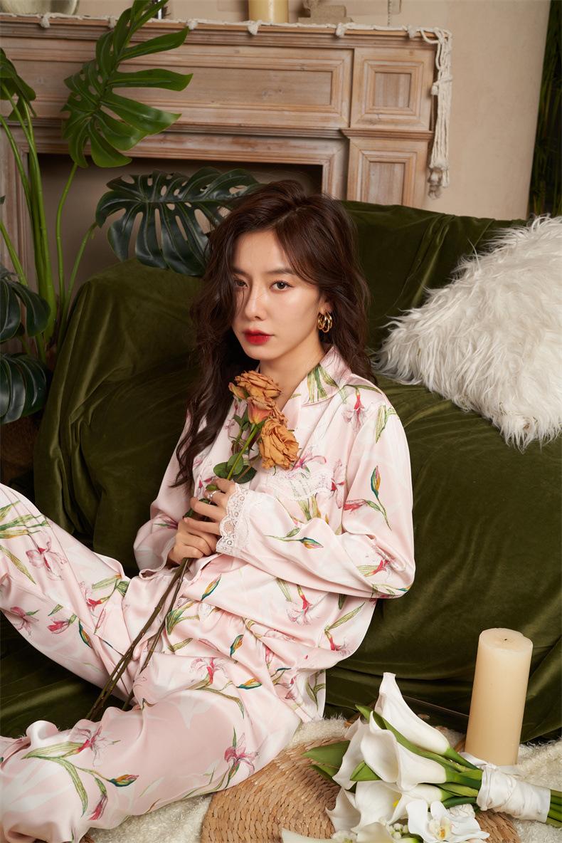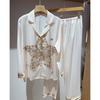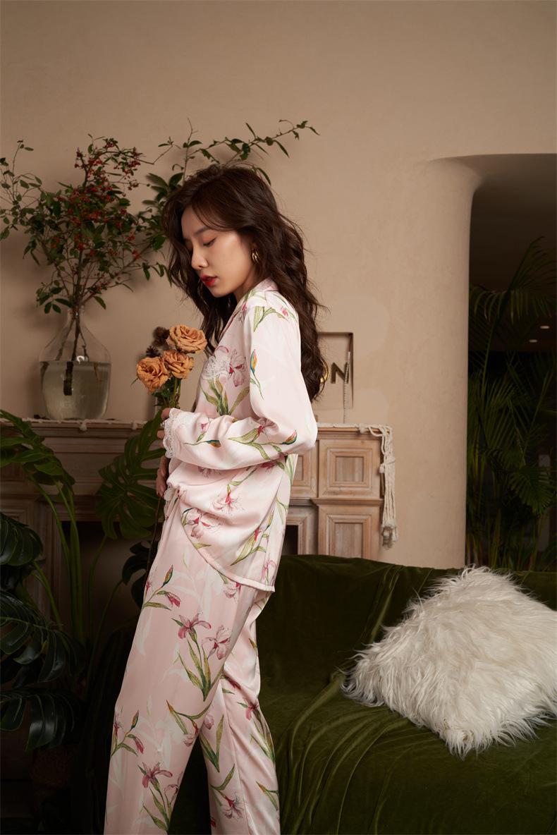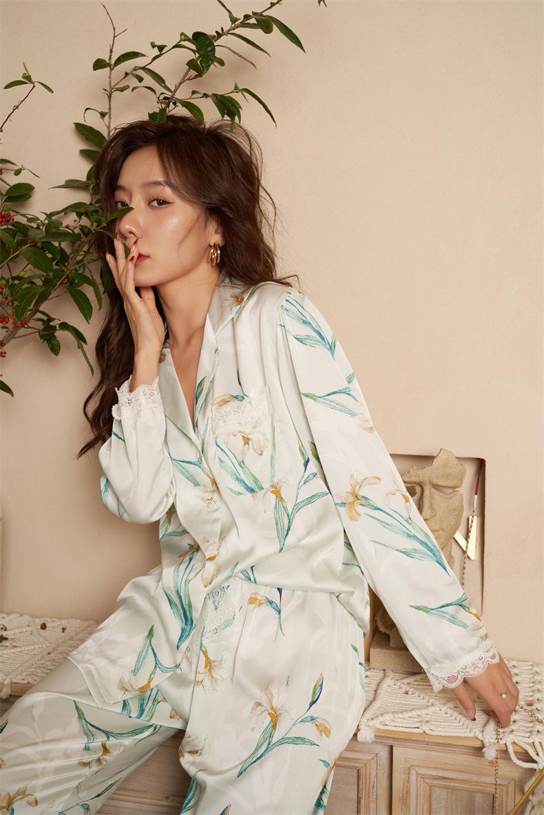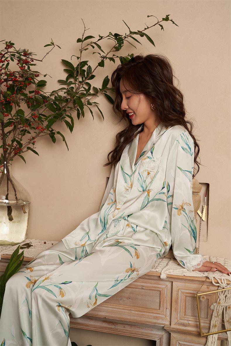 Pijama de seda de hielo para mujer, traje de primavera y verano de manga larga, sexy, de encaje de imitación de seda, ropa de casa de gran tamaño, una generación de cabello