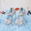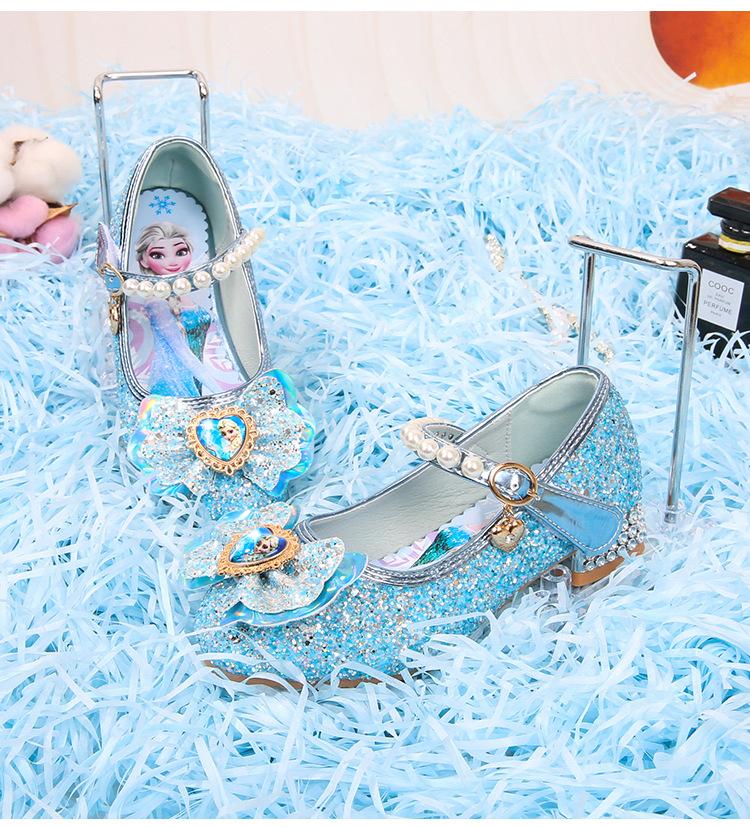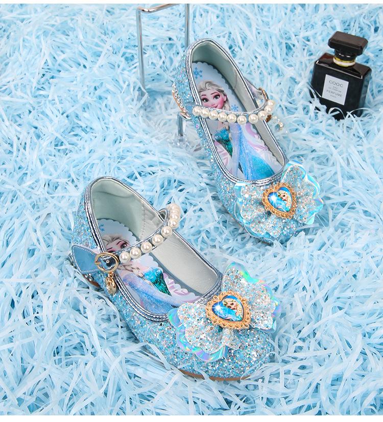 Compra Zapatos de Cuero de Tacón Alto para Niñas 2024 Primavera y Otoño Nuevos Zapatos de Princesa Elsa con Lazo de Perlas Zapatos de Cristal para Niñitas al por mayor en Joom.pro