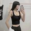 Camisola femenina 2021 primavera y verano nueva cuello plano cruzado pecho fruncido almohadilla de látex pecho ropa interior al por mayor
