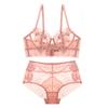 Venta directa de fábrica, nuevo conjunto de sujetador sexy de encaje pequeño con pecho grande y ropa interior hueca ultrafina para mujer |
