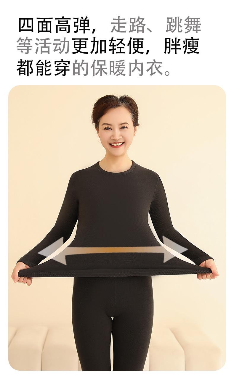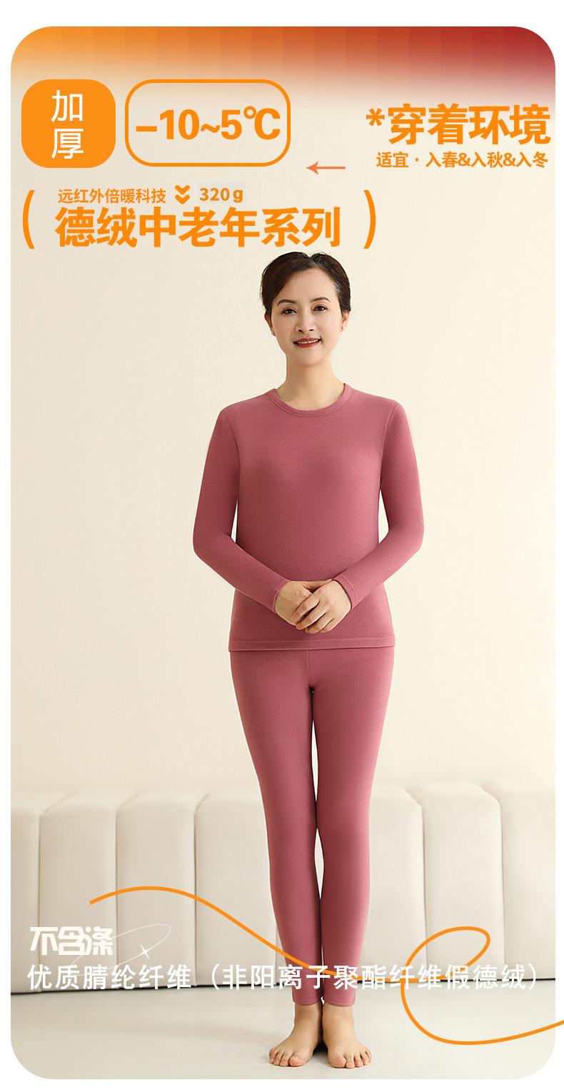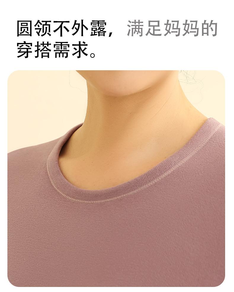 Ropa interior térmica de terciopelo con cuello redondo para mujeres de mediana edad y mayores, traje antibacteriano grueso con calefacción, ropa de otoño de talla grande con cuello medio y pantalones largos