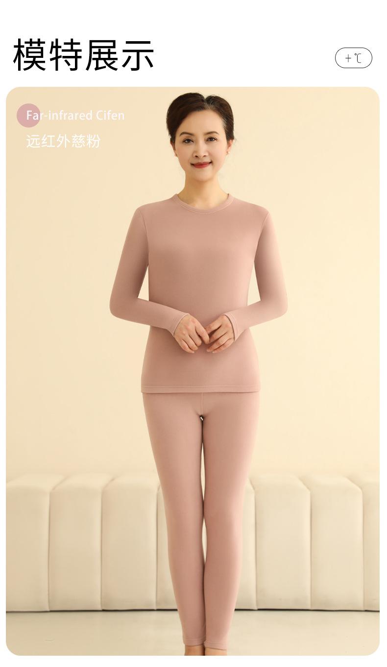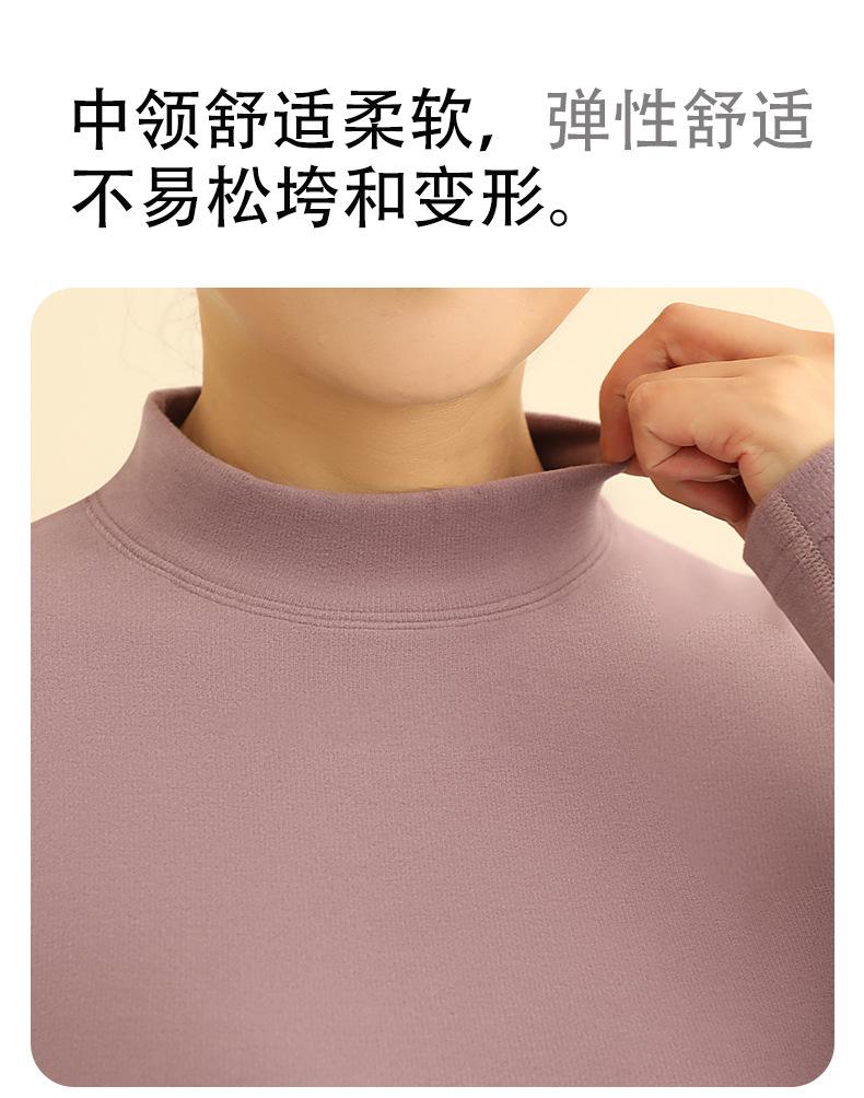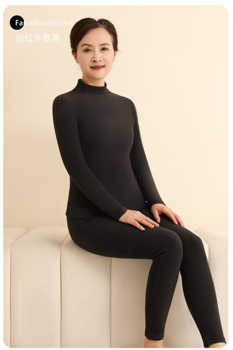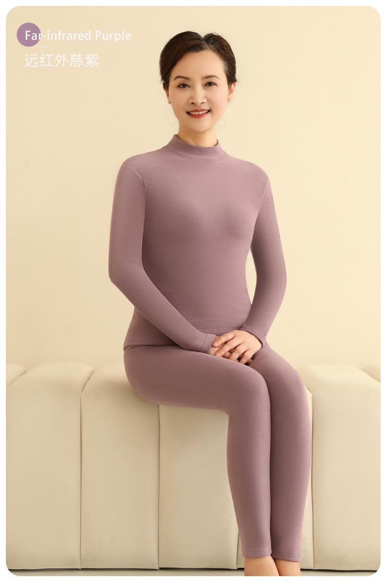 Ropa interior térmica de terciopelo con cuello redondo para mujeres de mediana edad y mayores, traje antibacteriano grueso con calefacción, ropa de otoño de talla grande con cuello medio y pantalones largos