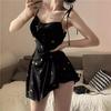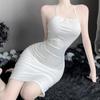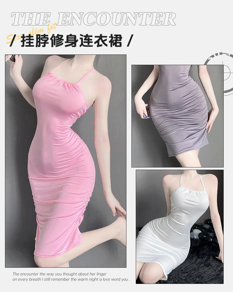 Vestido de estilo Spice Girl, elegante, con cintura plisada y escote halter, para mujer.