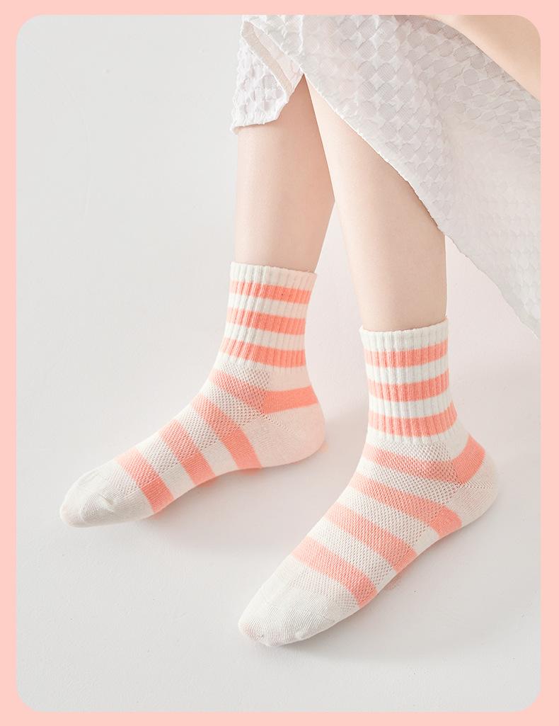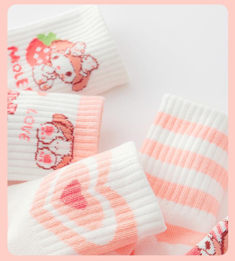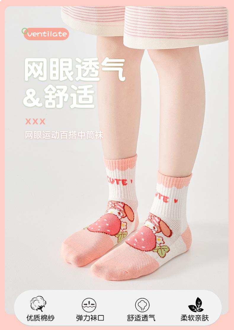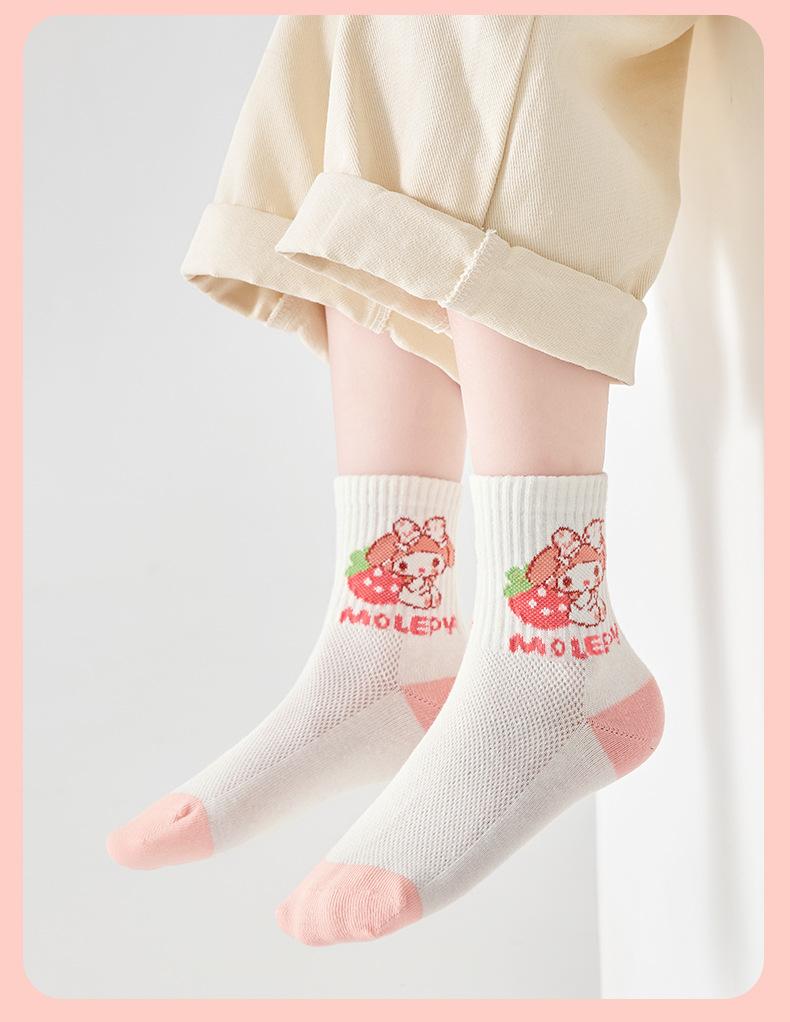 Calcetines de verano para niños, calcetines finos de algodón, bonitos calcetines de malla transpirables para niña fresa, calcetines de bebé de alta elasticidad hasta media pantorrilla