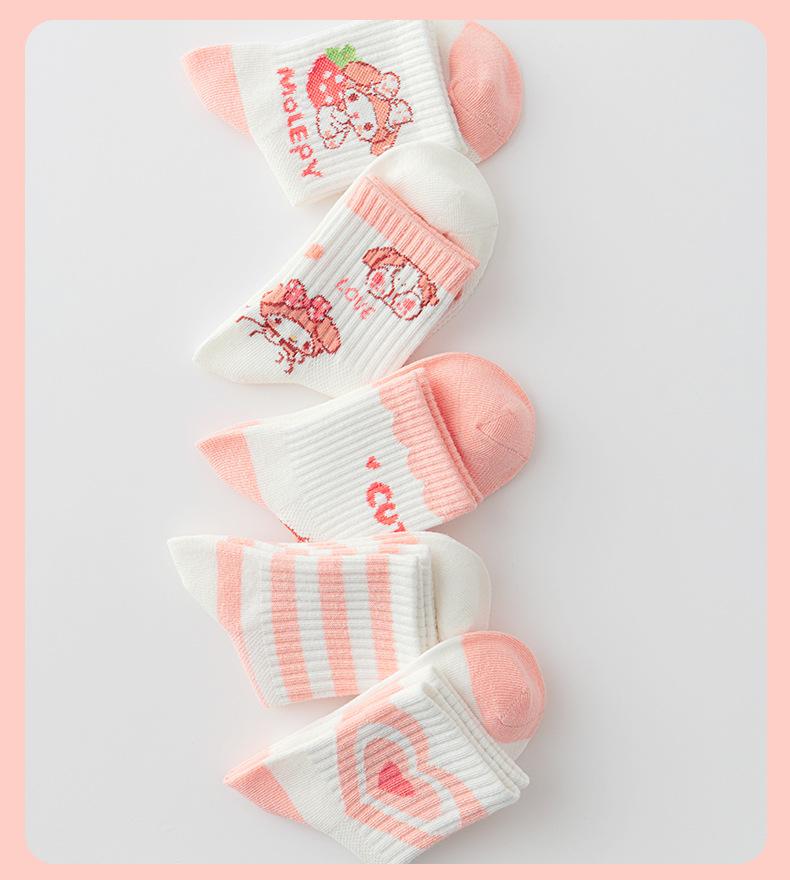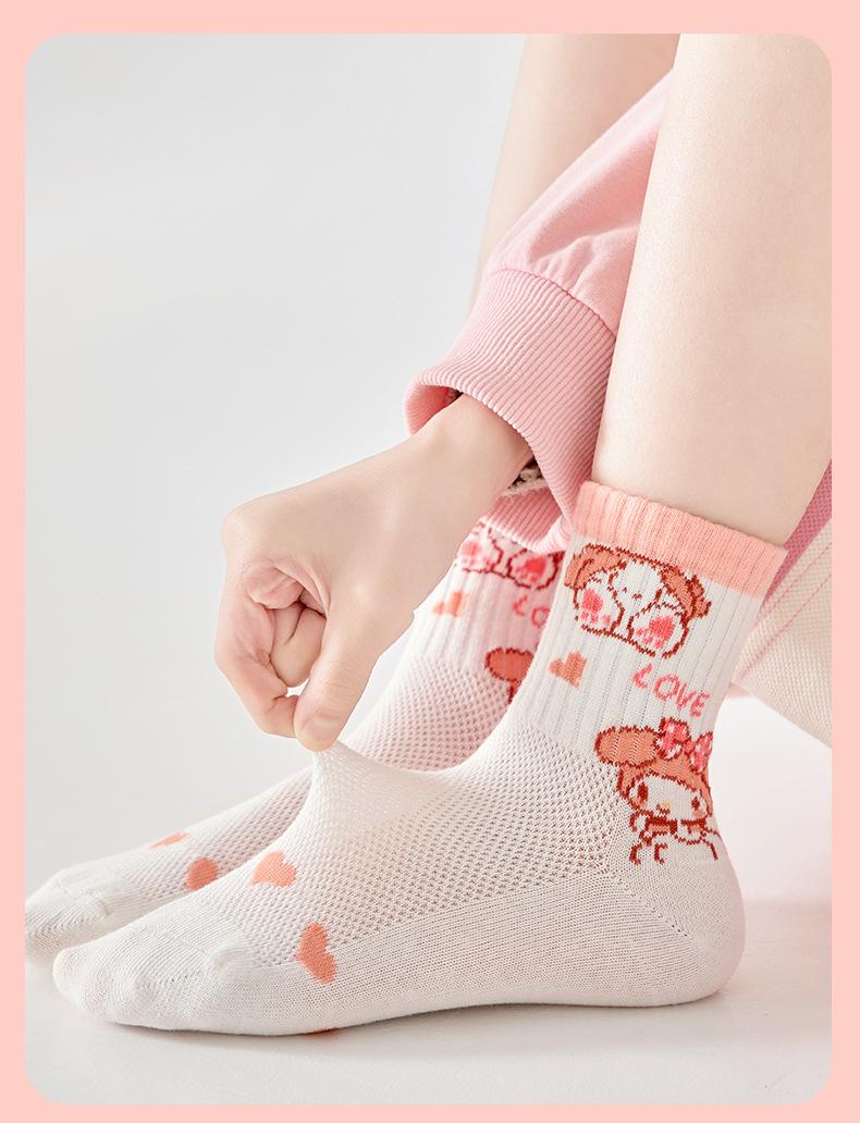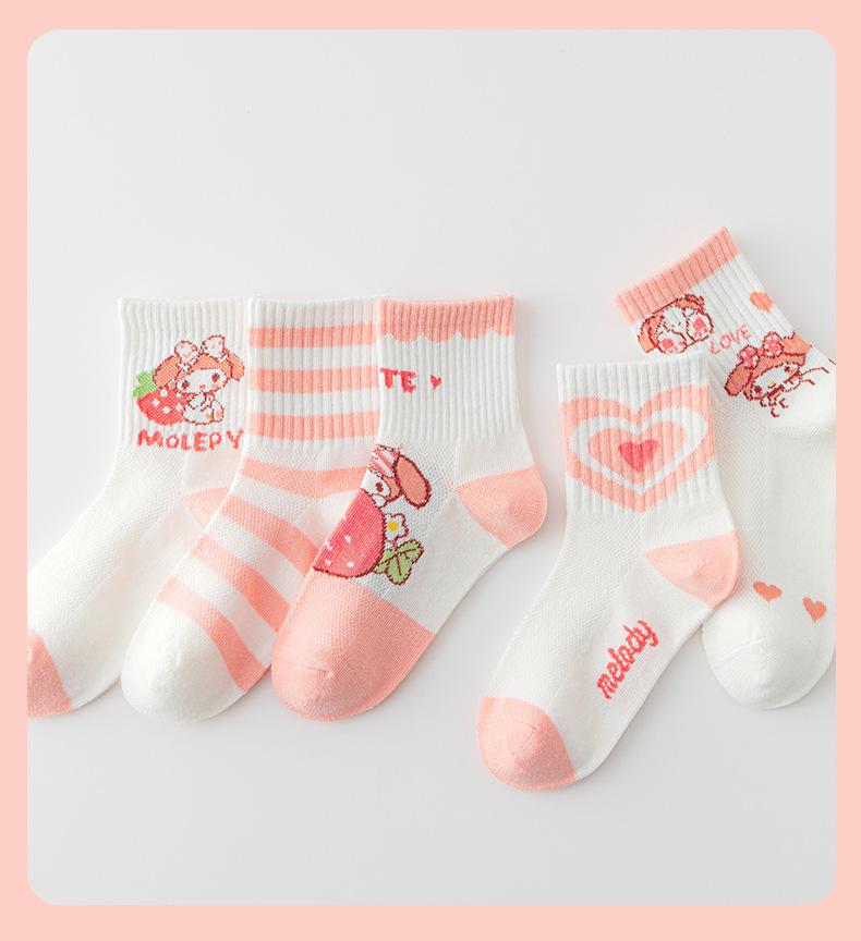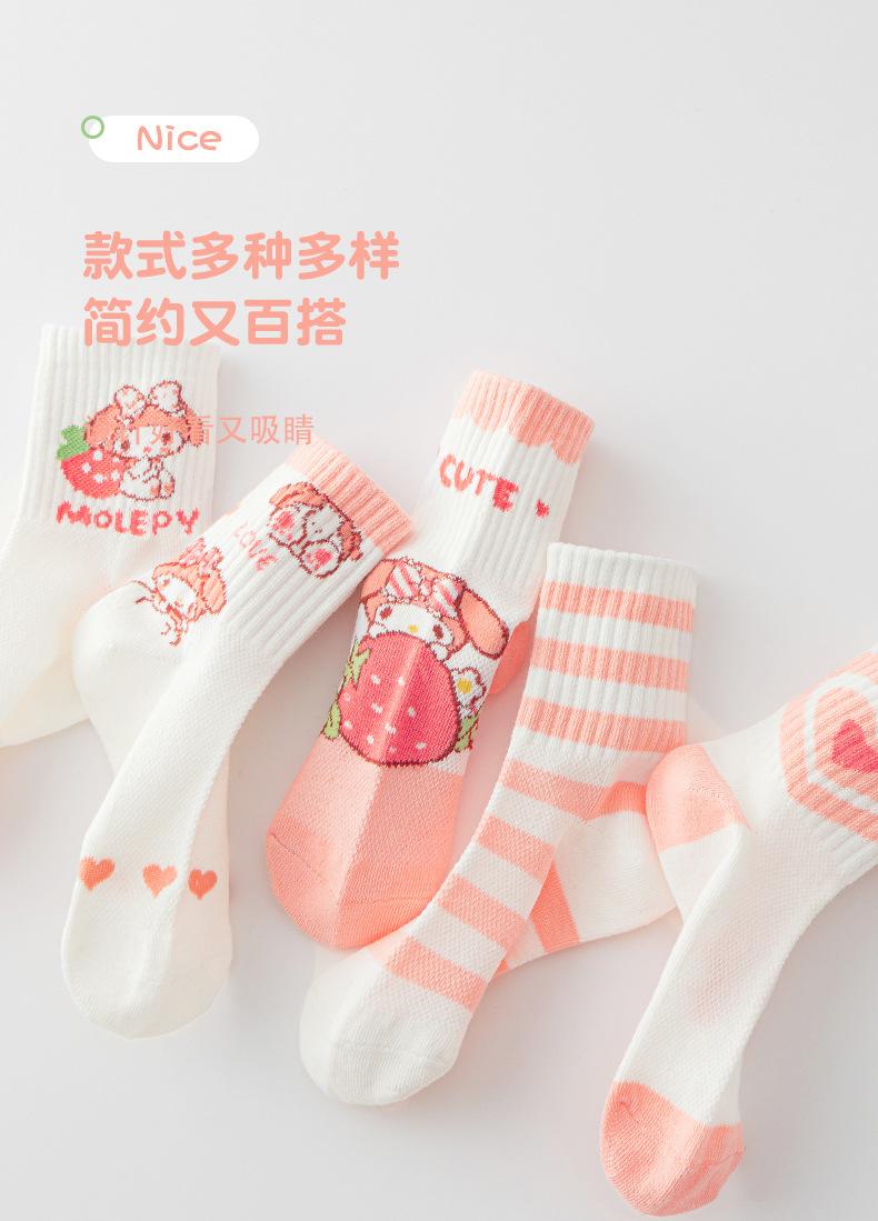 Calcetines de verano para niños, calcetines finos de algodón, bonitos calcetines de malla transpirables para niña fresa, calcetines de bebé de alta elasticidad hasta media pantorrilla