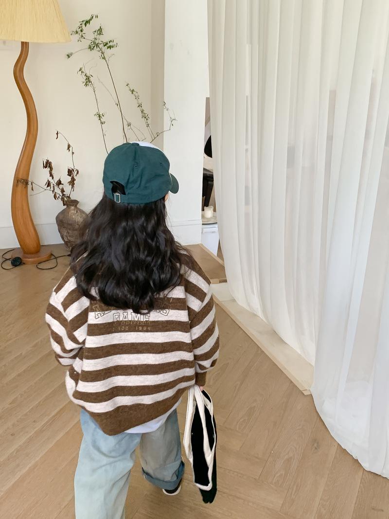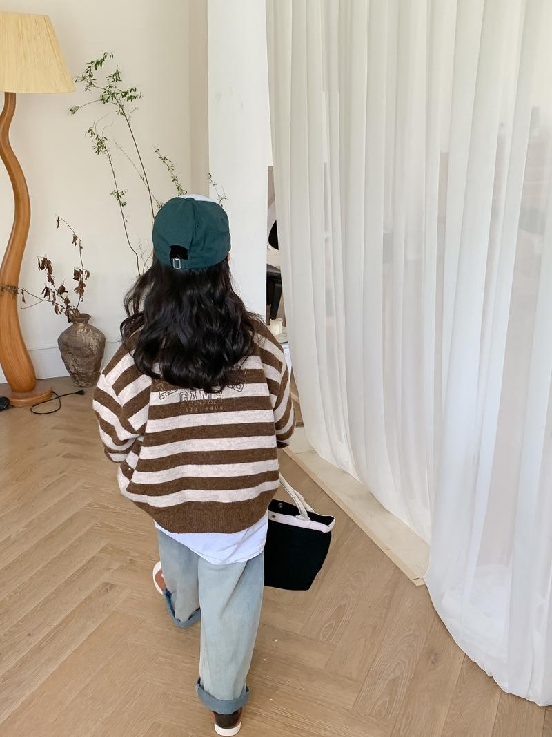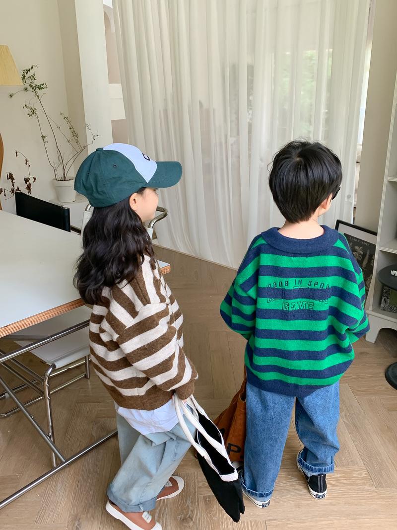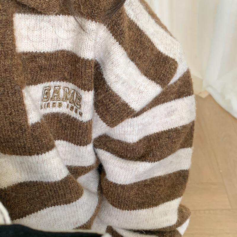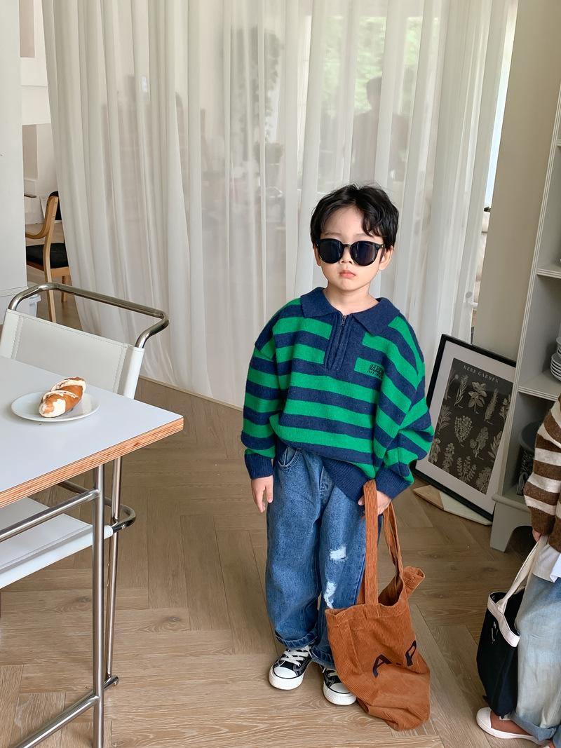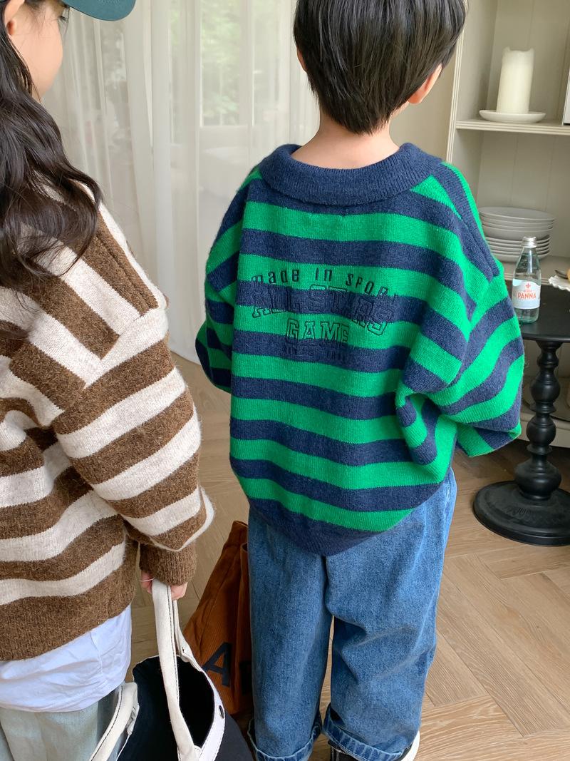 Suéter Infantil 2025 Outono Estilo Coreano Listrado Zíper para Meninos e Meninas Infantil Gola Polo Bordado Tricotado Pulôver