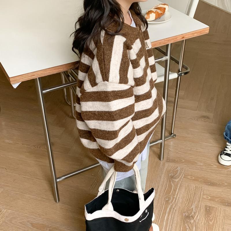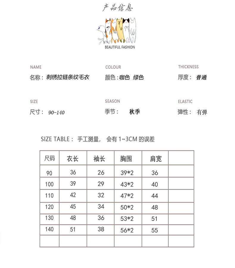 Embroidered zipper striped sweater Green, Embroidered Zip Striped Sweater Khaki