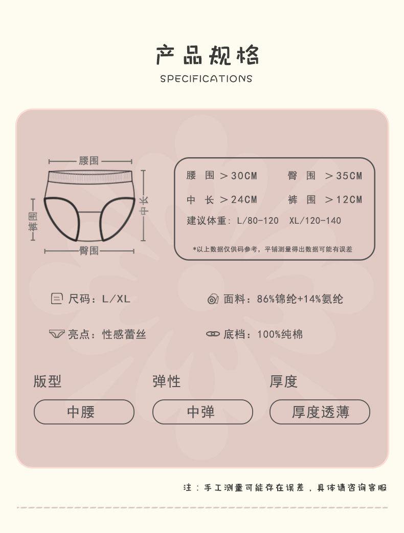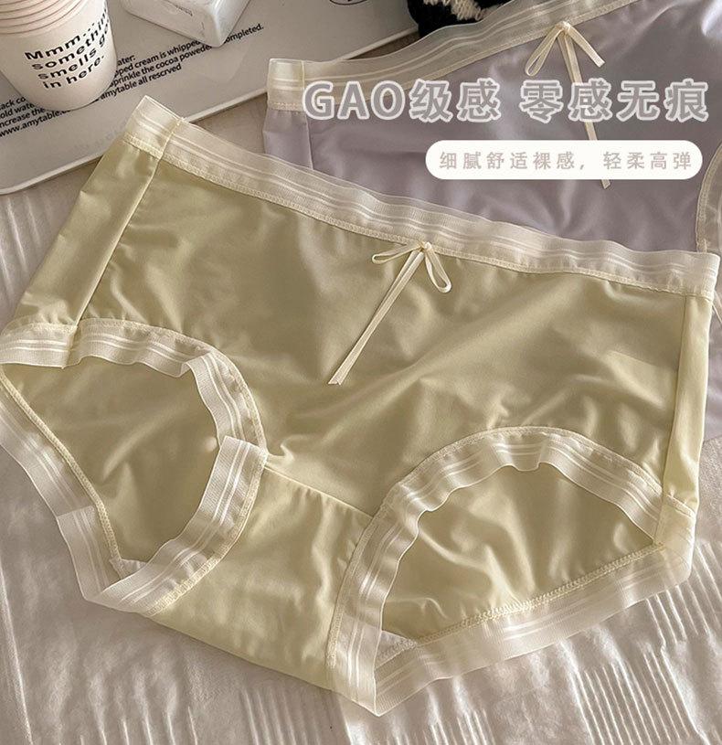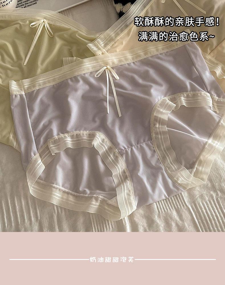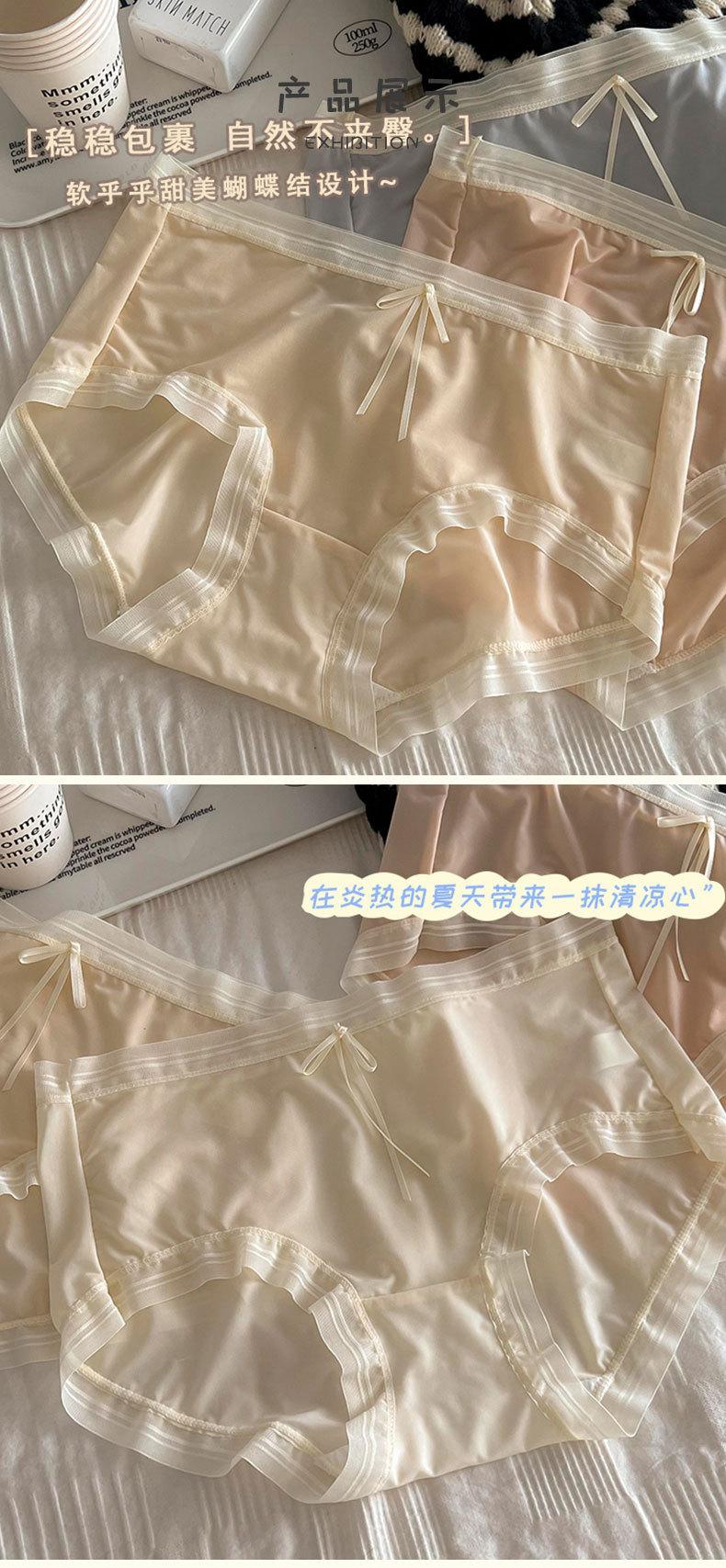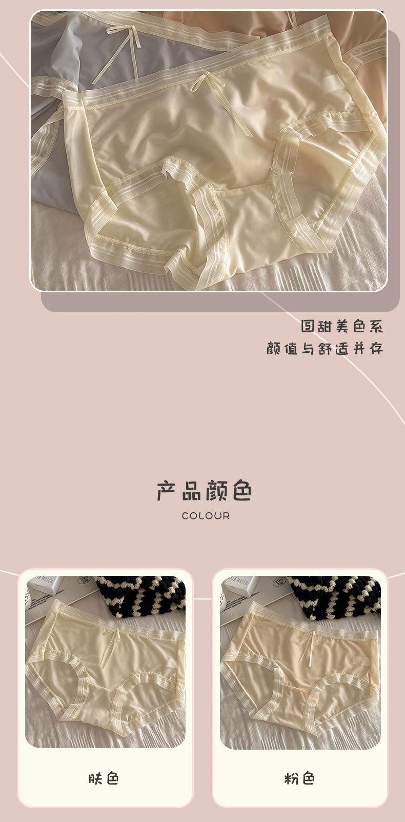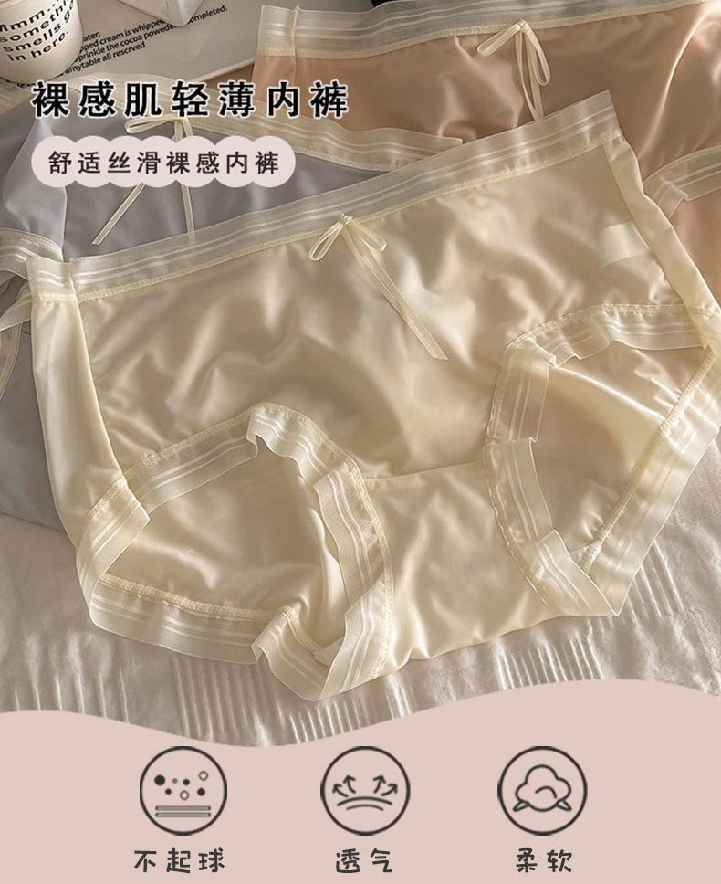 Jiazhi - Ropa interior de seda pura sin rastro para mujer, cintura media, japonesa, sencilla, de verano, fina, de algodón puro, antibacteriana, para la entrepierna.
