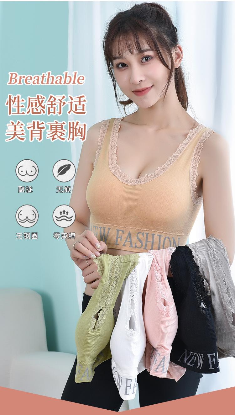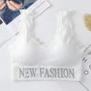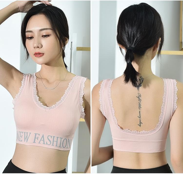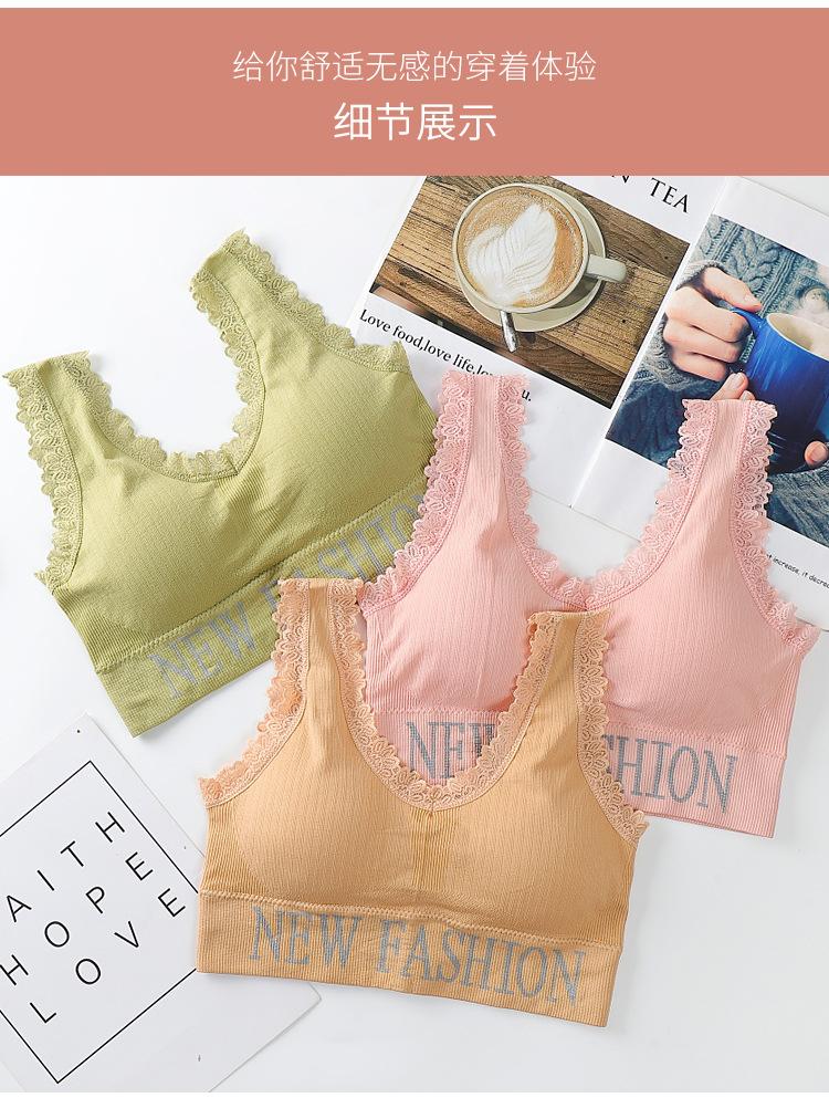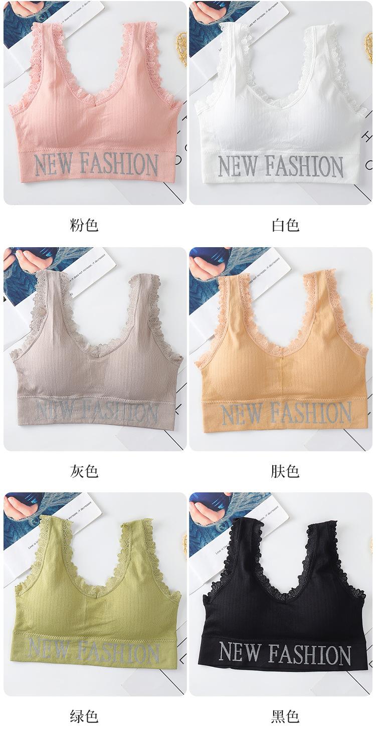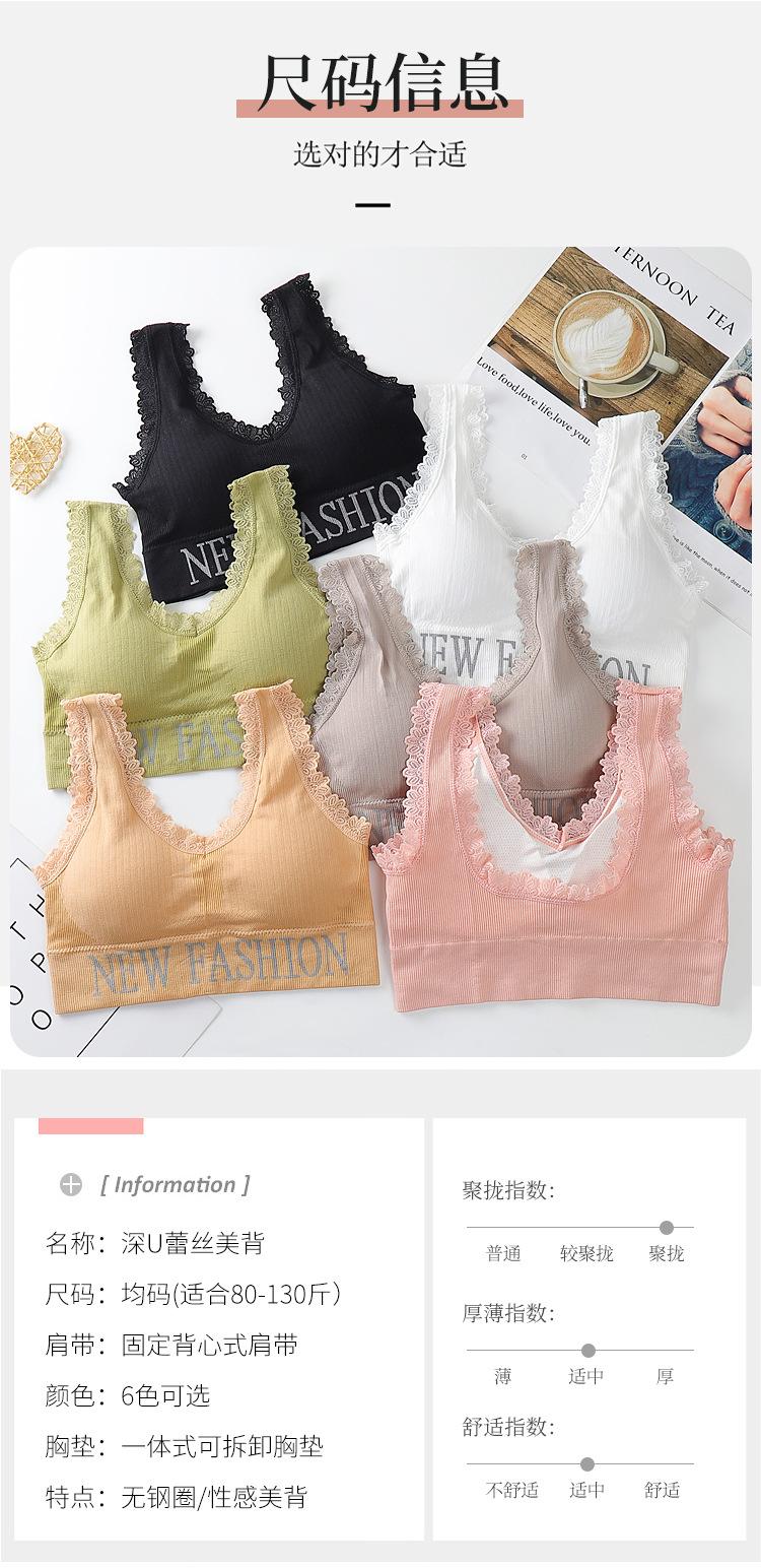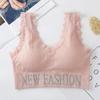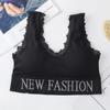 Ropa interior sexy de encaje sin costuras con alfabeto inglés, cómoda y fruncida, estilo chaleco grande con encaje en U para mujer
