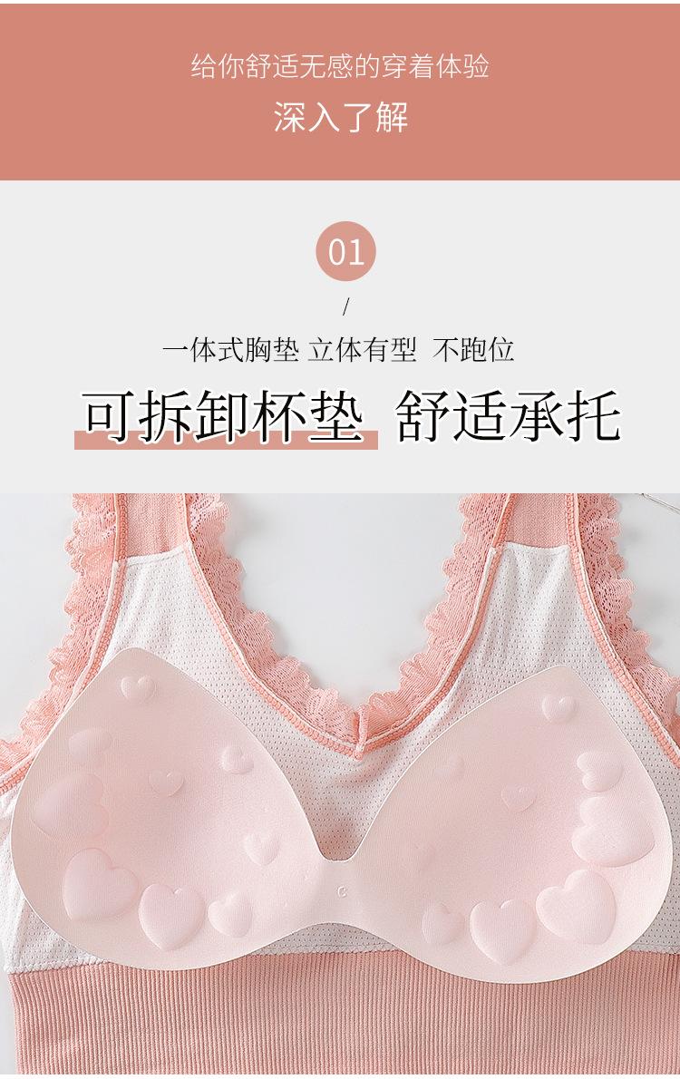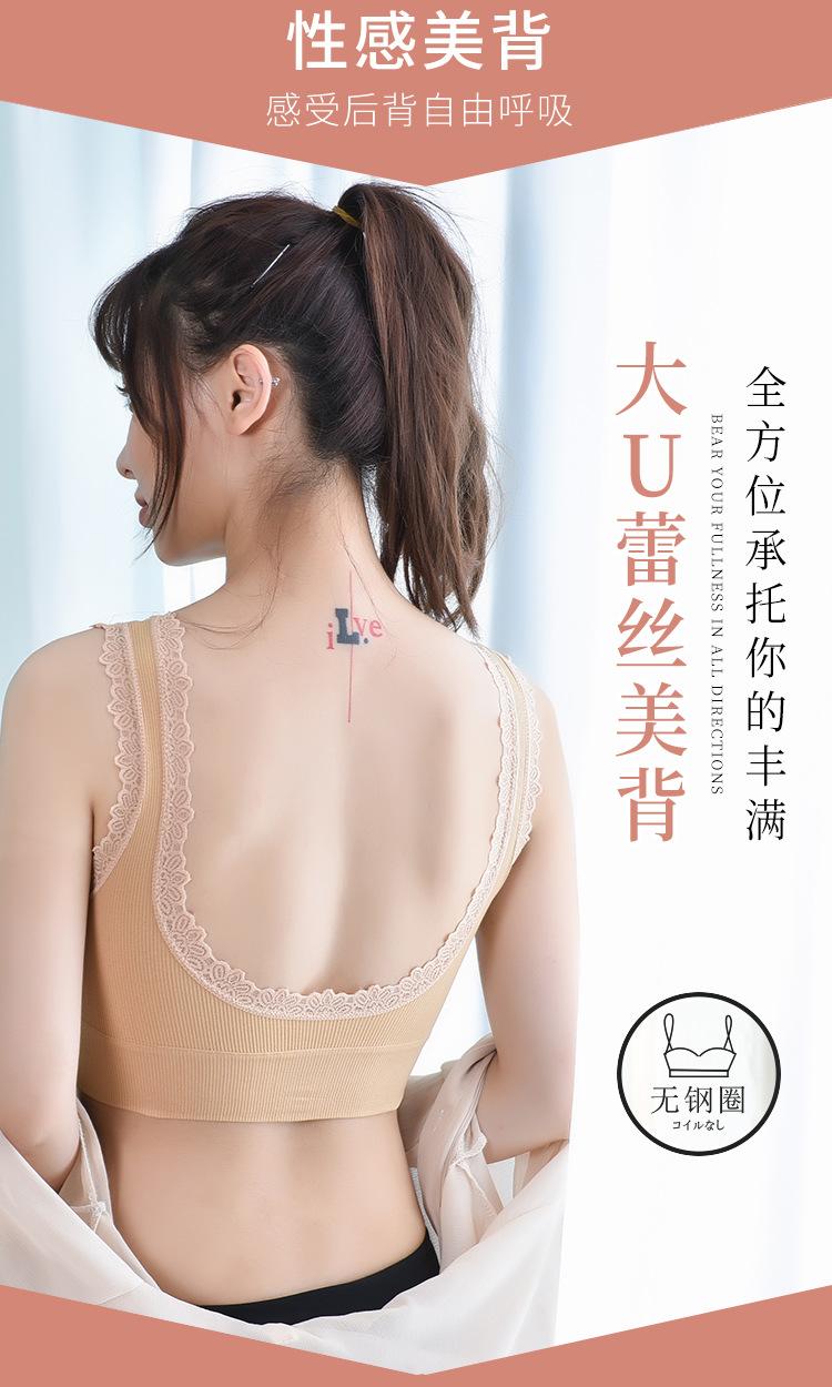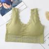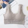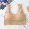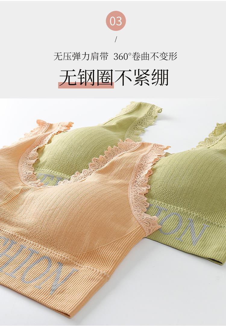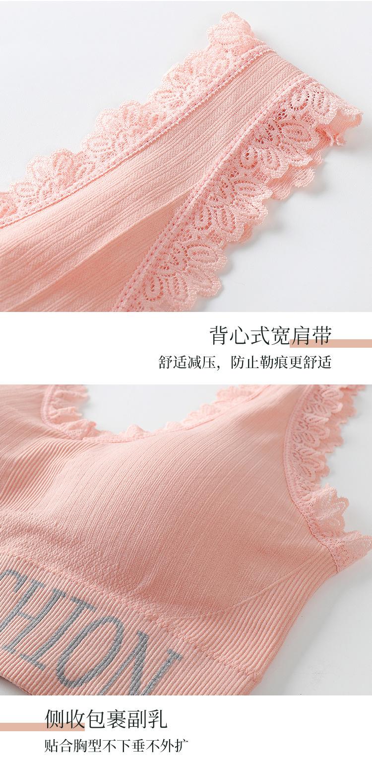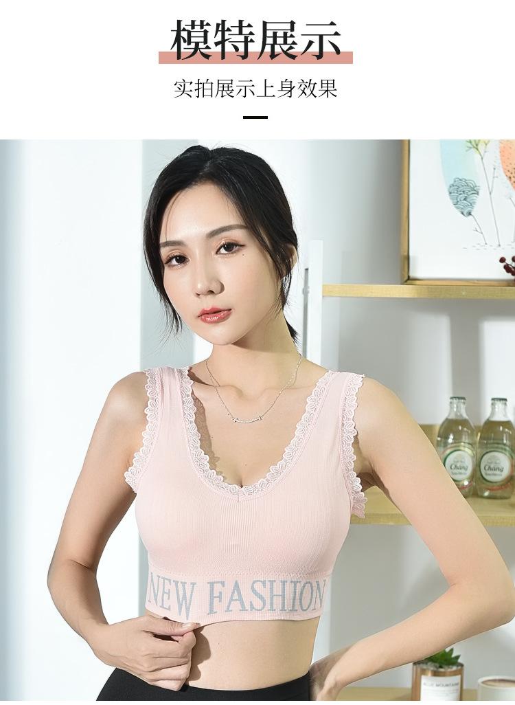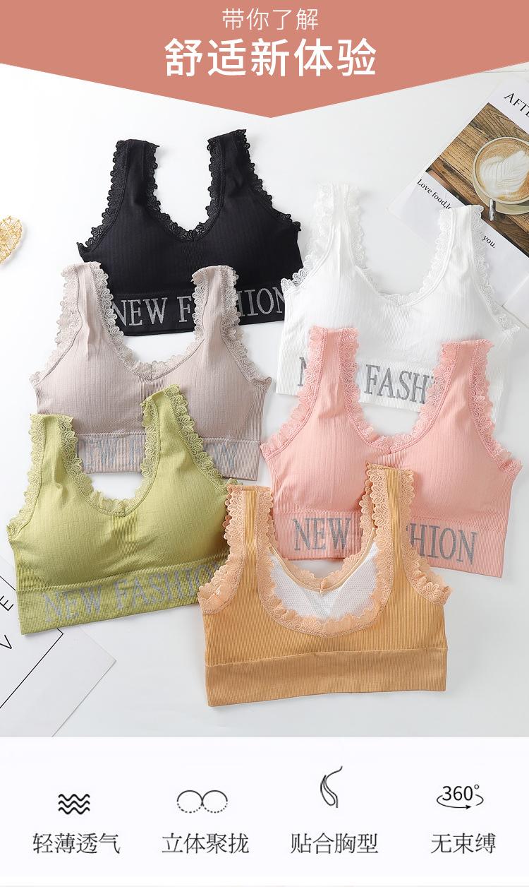Ropa interior sexy de encaje sin costuras con alfabeto inglés, cómoda y fruncida, estilo chaleco grande con encaje en U para mujer