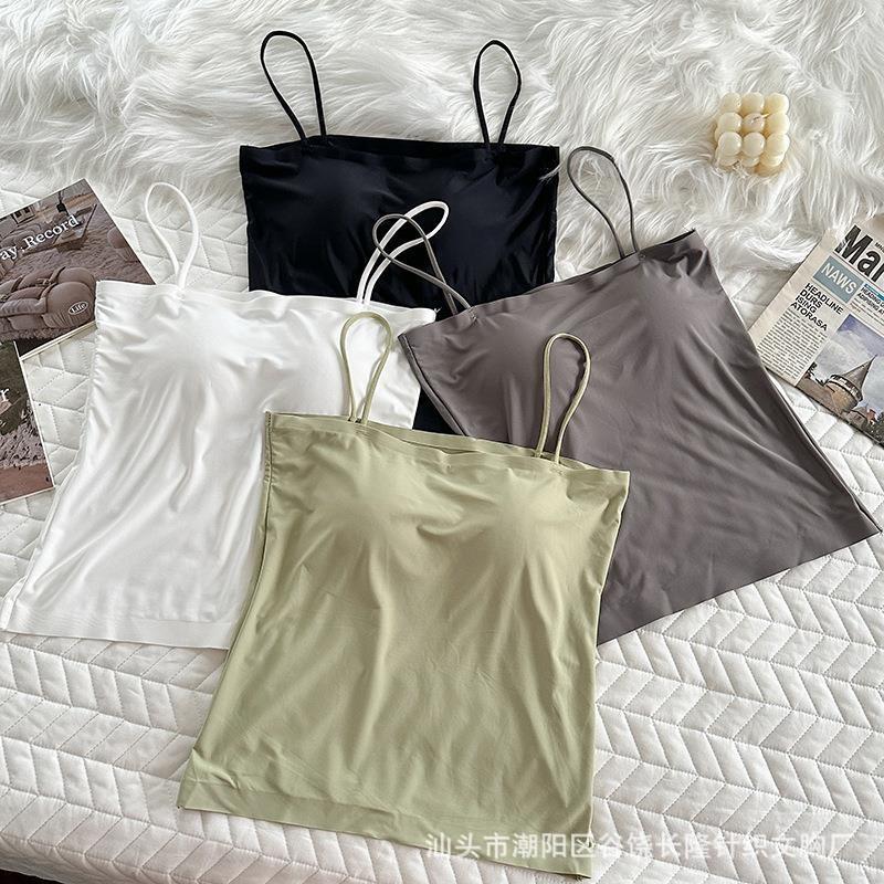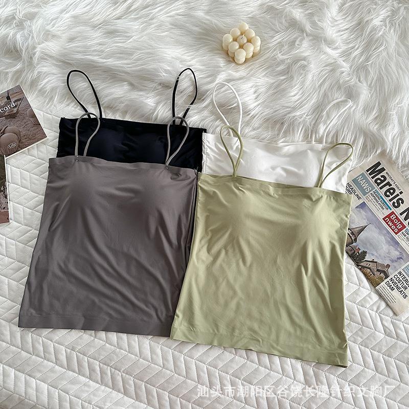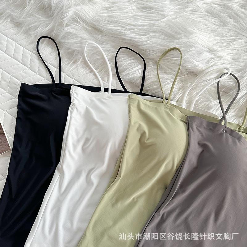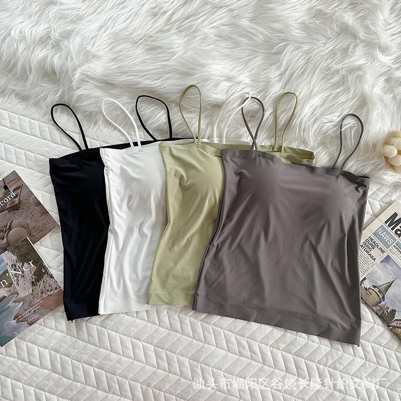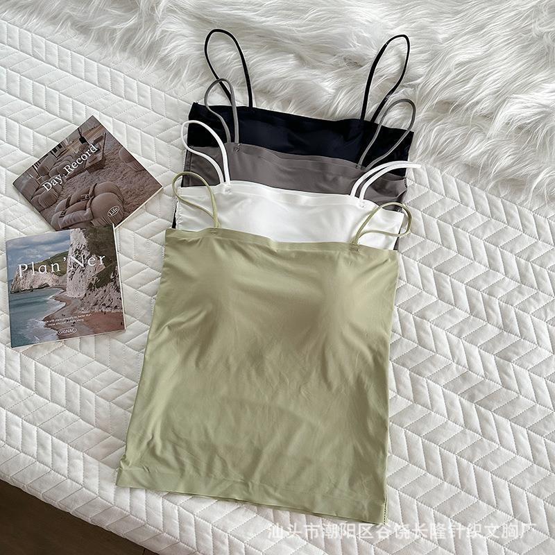 Chaleco pequeño de seda de hielo de verano nuevo con cinturón ligero anti-correr y almohadilla para el pecho integrada sin tirantes, ropa interior fina con espalda hermosa