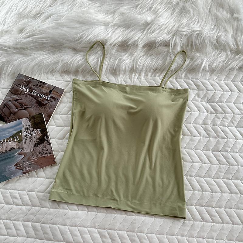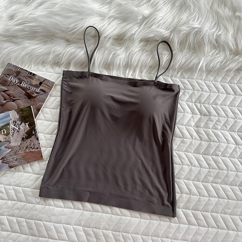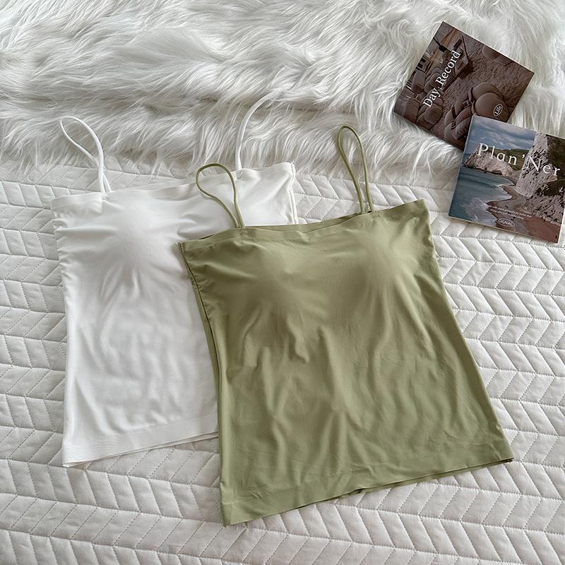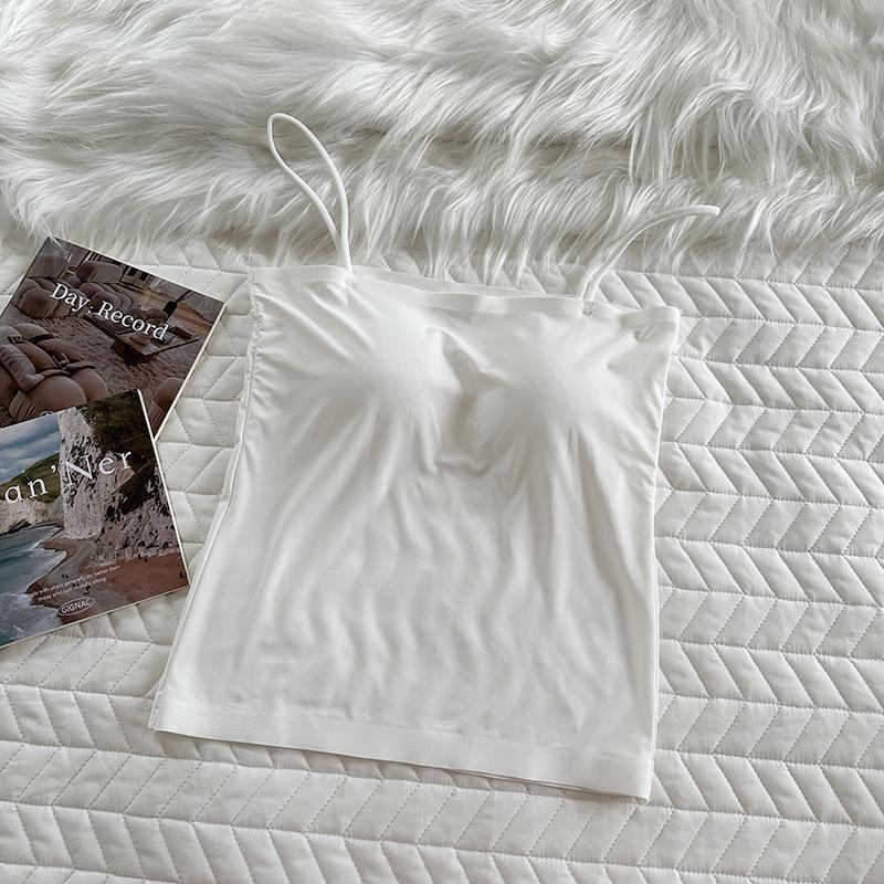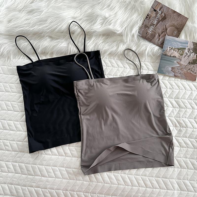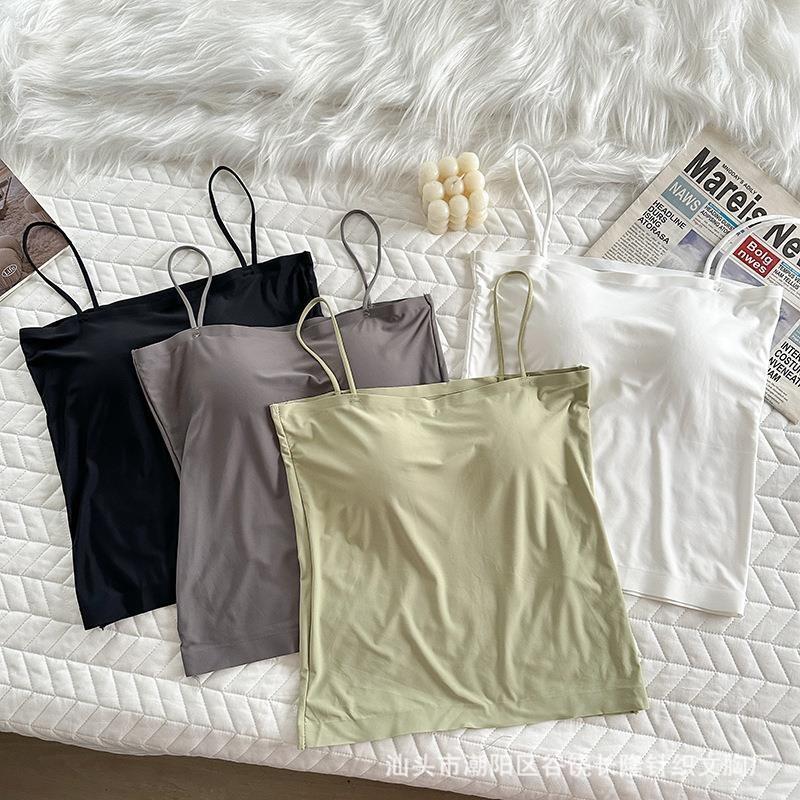 Chaleco pequeño de seda de hielo de verano nuevo con cinturón ligero anti-correr y almohadilla para el pecho integrada sin tirantes, ropa interior fina con espalda hermosa