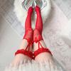 Calcetines de verano para mujer, medias blancas por encima de la rodilla, bonitos calcetines japoneses de moda para mujer, con lazo cruzado y tira de seda de cristal.