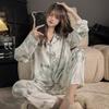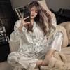 Pijama para mujer versión coreana de primavera y verano cárdigan rojo de internet manga larga traje estilo ins ropa de casa de alta gama ropa exterior en stock venta al por mayor