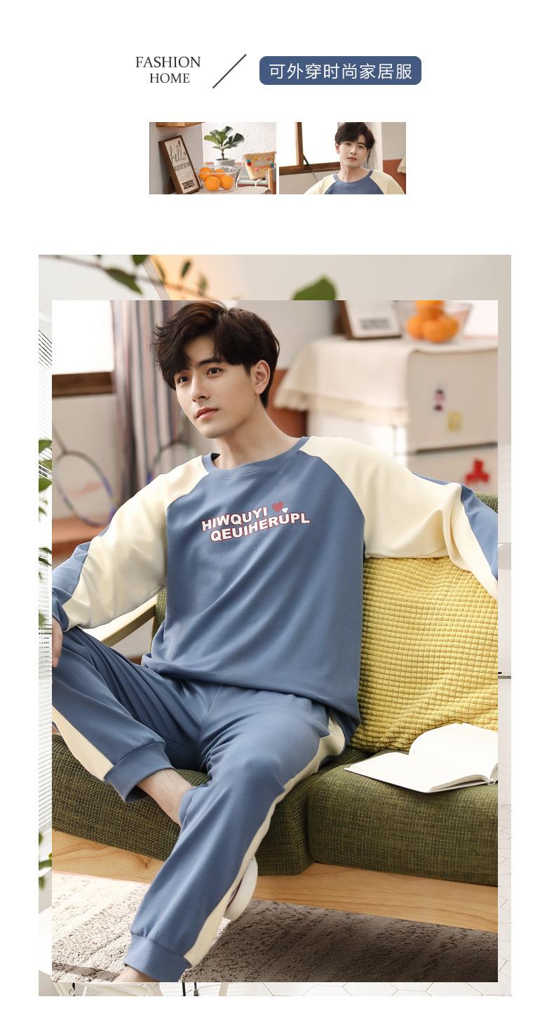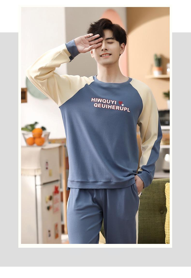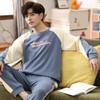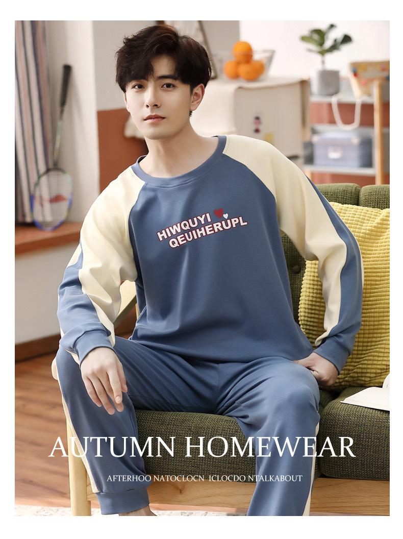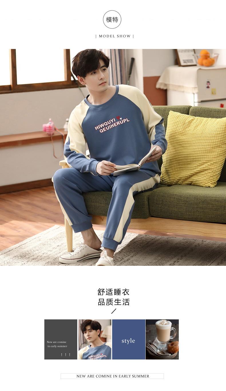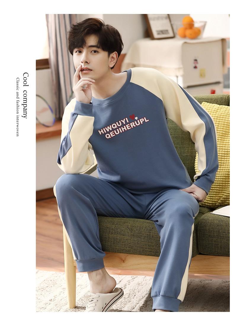 Pijamas de hombre de manga larga de algodón puro, traje de primavera y otoño, informal, deportivo, de talla grande, holgados, ropa fina para el hogar.