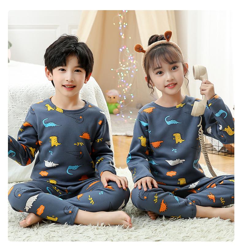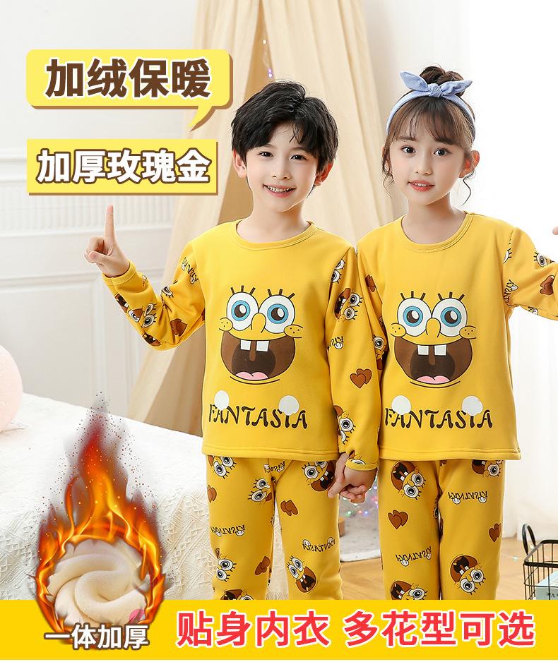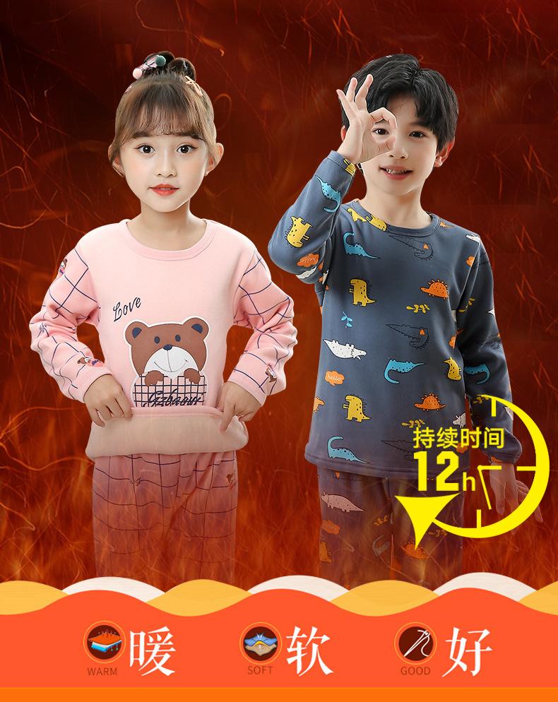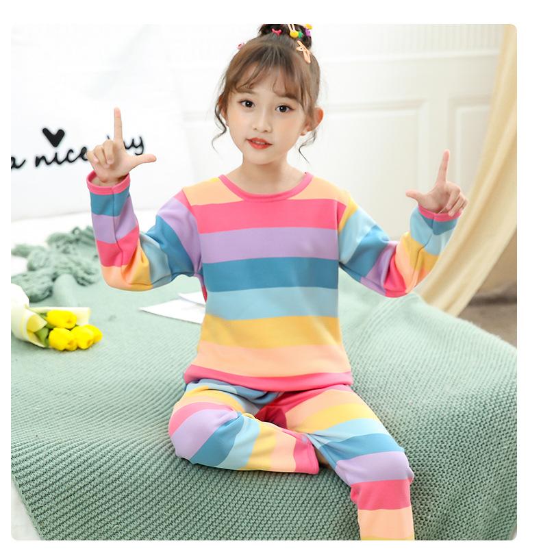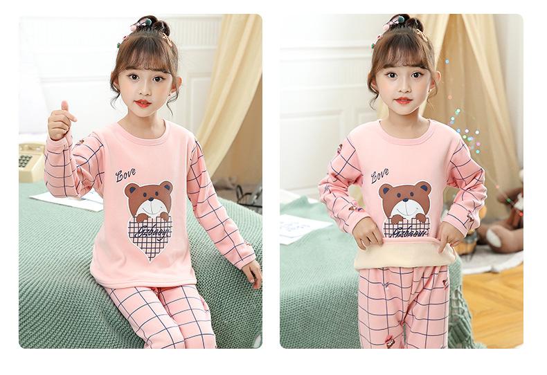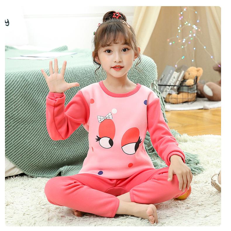 Conjunto de Ropa Interior Térmica para Niños Forrado de Felpa Espesado Ropa de Otoño e Invierno para Niñas Pantalones de Otoño Ropa Interior para Niños Medianos y Grandes