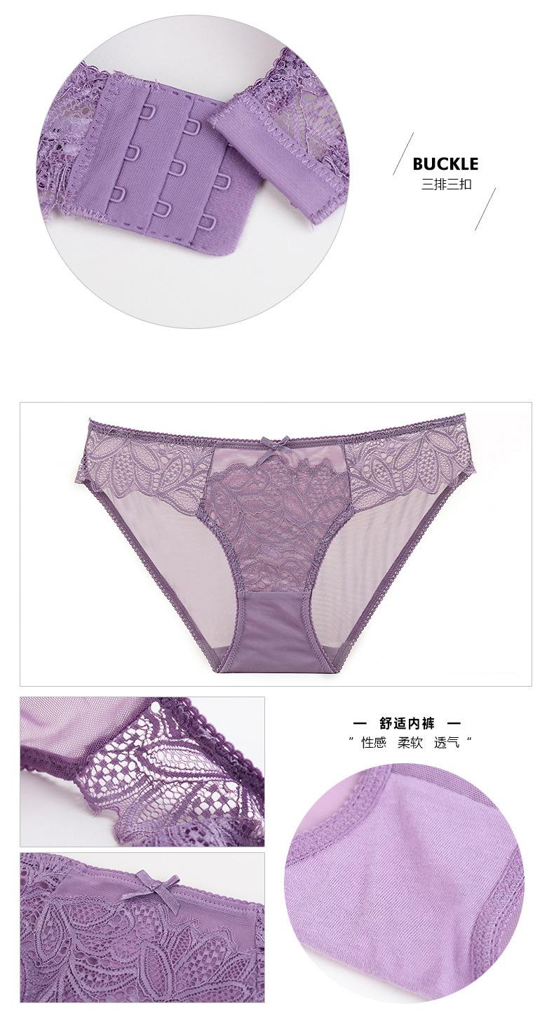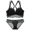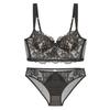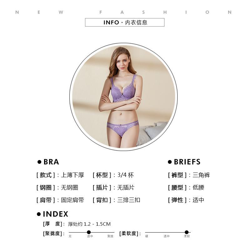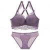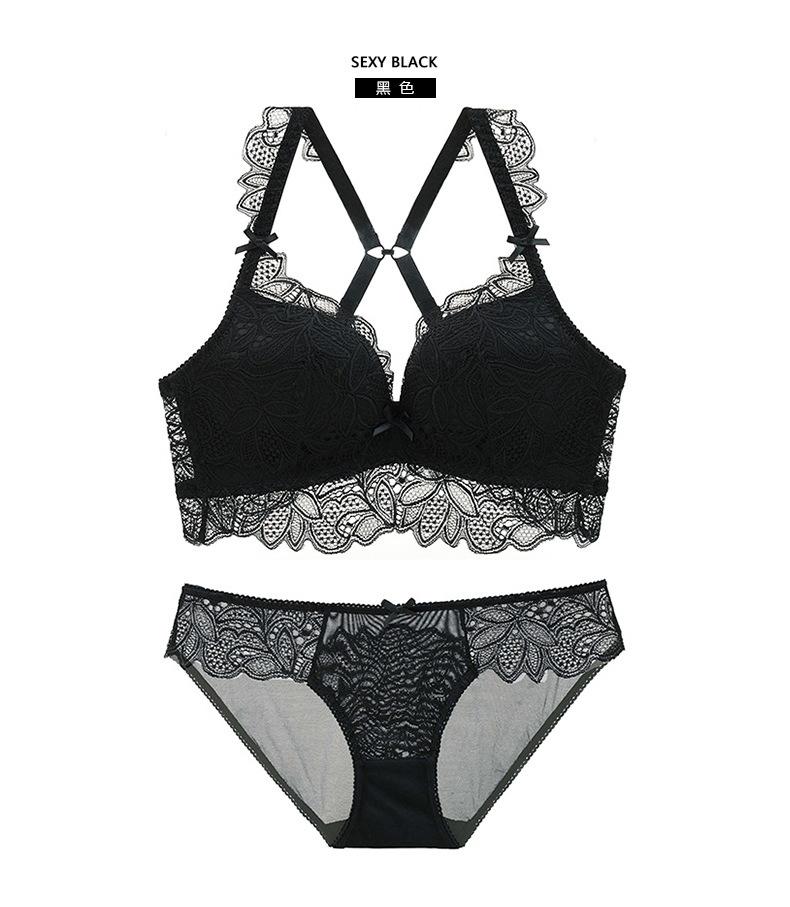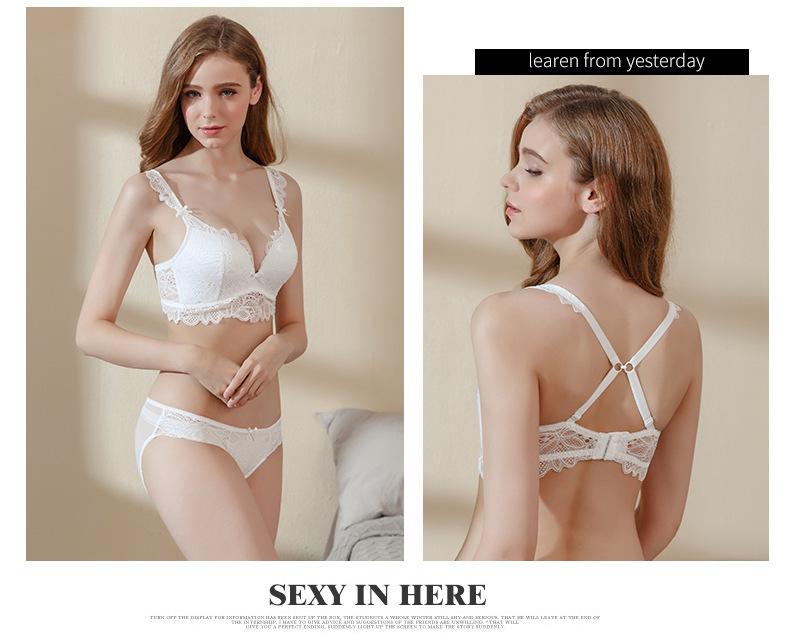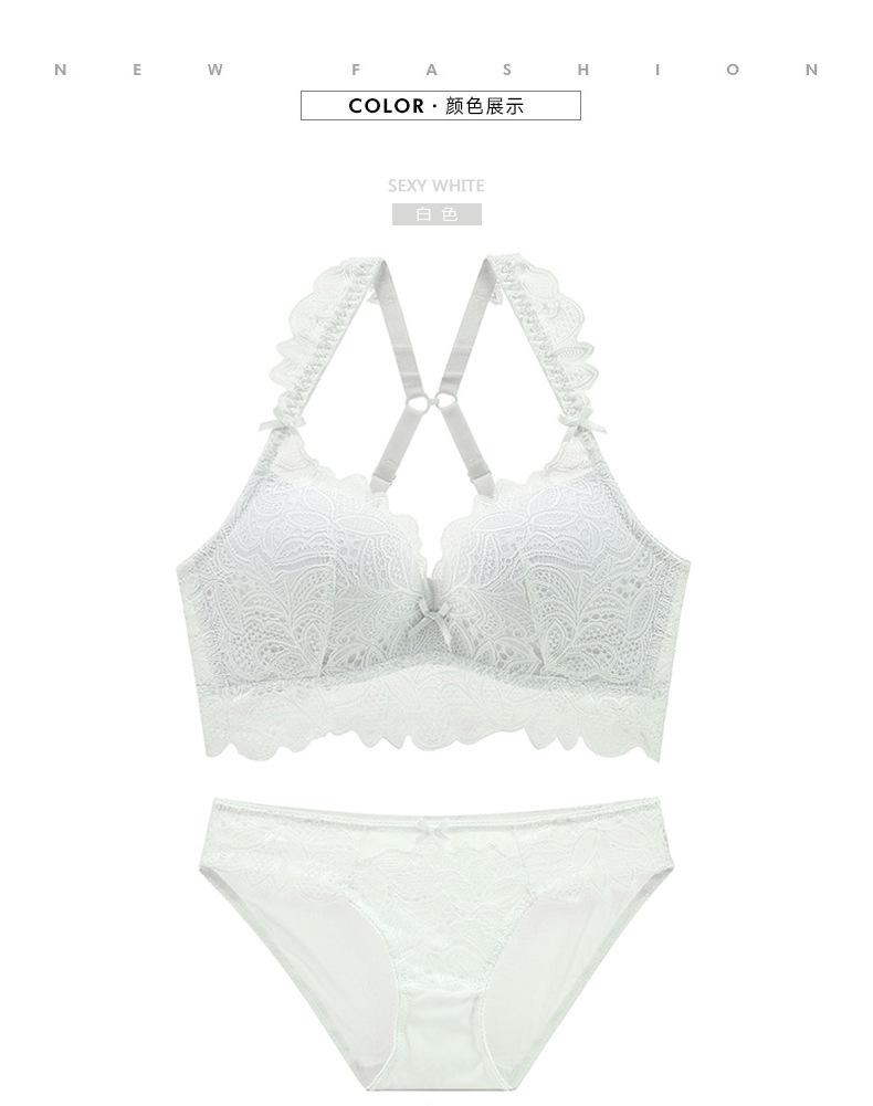 | Ropa interior de encaje con bordado hueco sexy nueva europea y americana, conjunto de sujetador fruncido con parte superior fina y parte inferior gruesa para mujer, pecho pequeño |