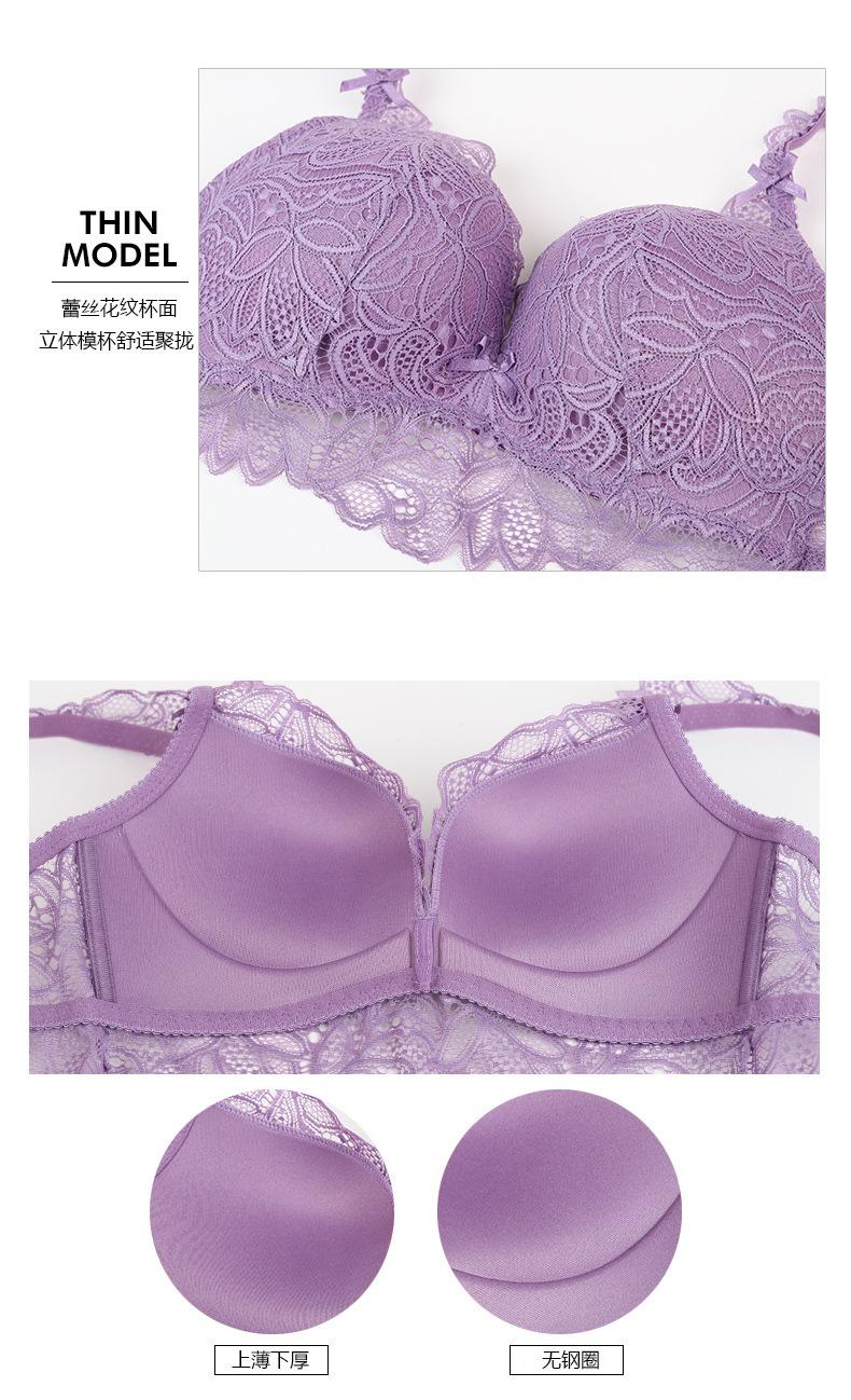 | Nuevo conjunto de sujetador ajustable con estampado pequeño y encaje hueco con sujetador pequeño de pecho grande sexy europeo y americano |