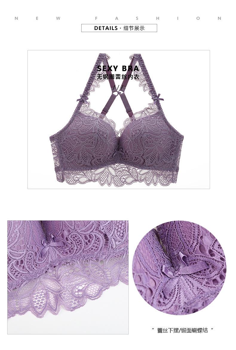 | Ropa interior de encaje sexy europea y americana, sujetador de aro de acero suave para mujer, conjunto de sujetador con ajuste fruncido grande y pecho pequeño |