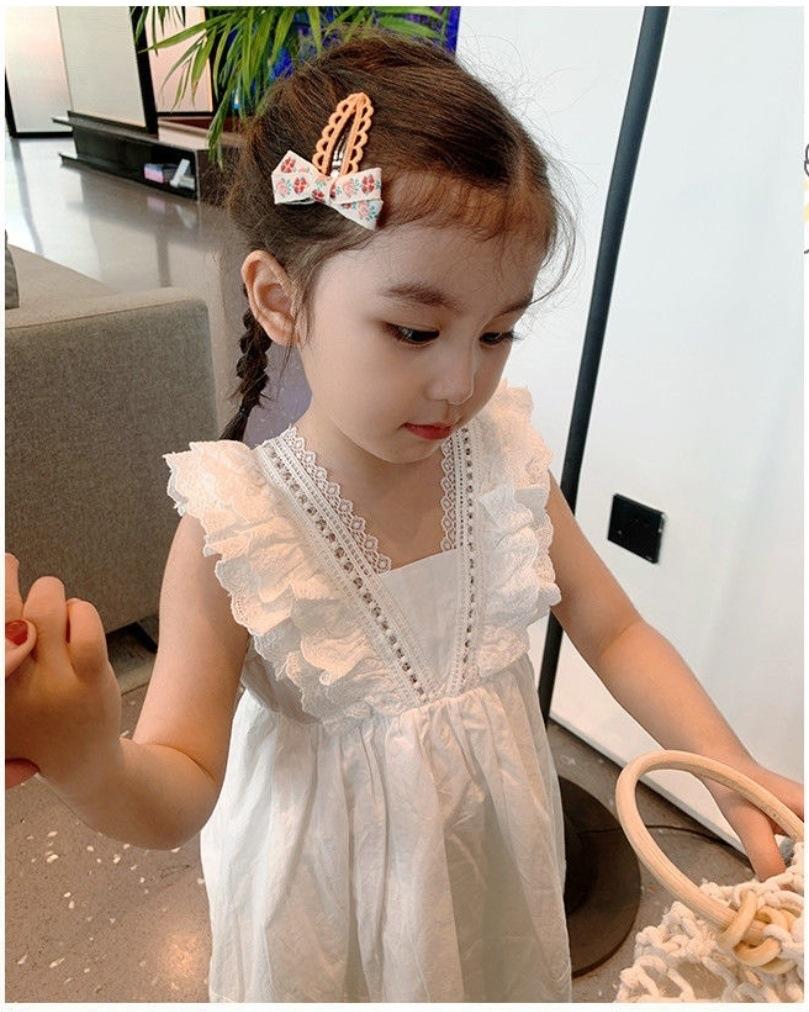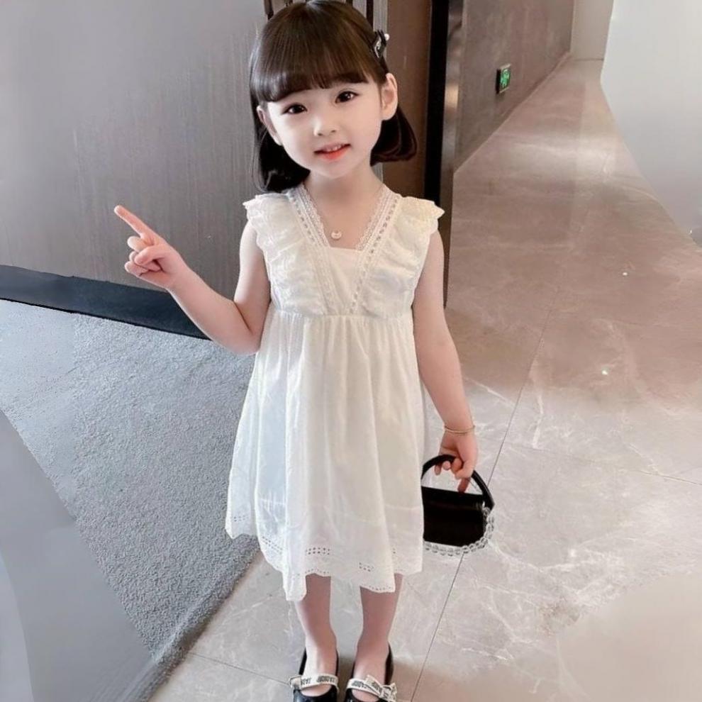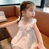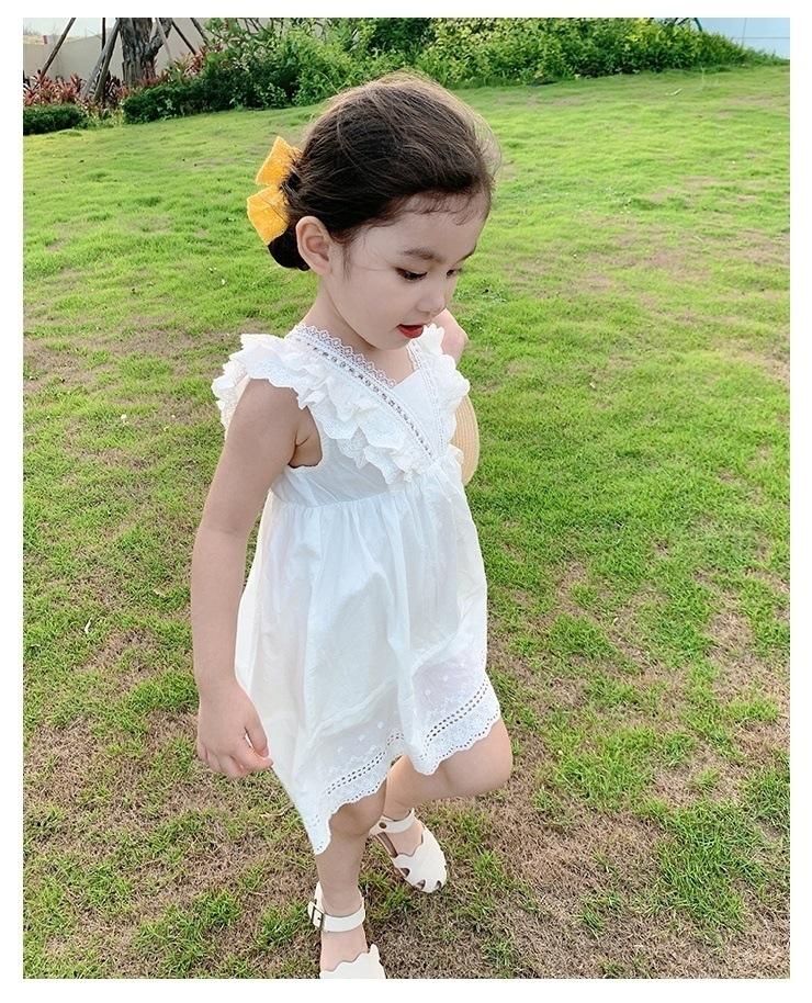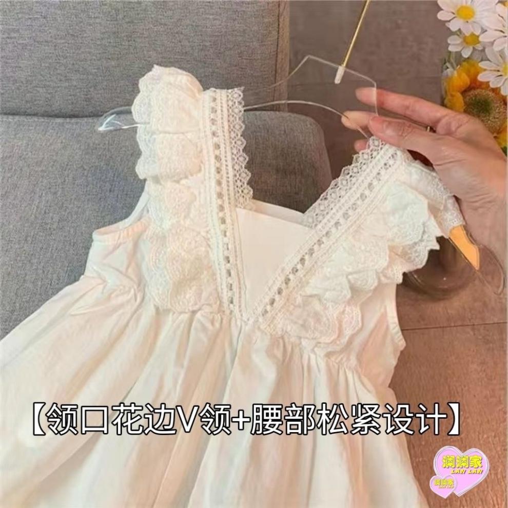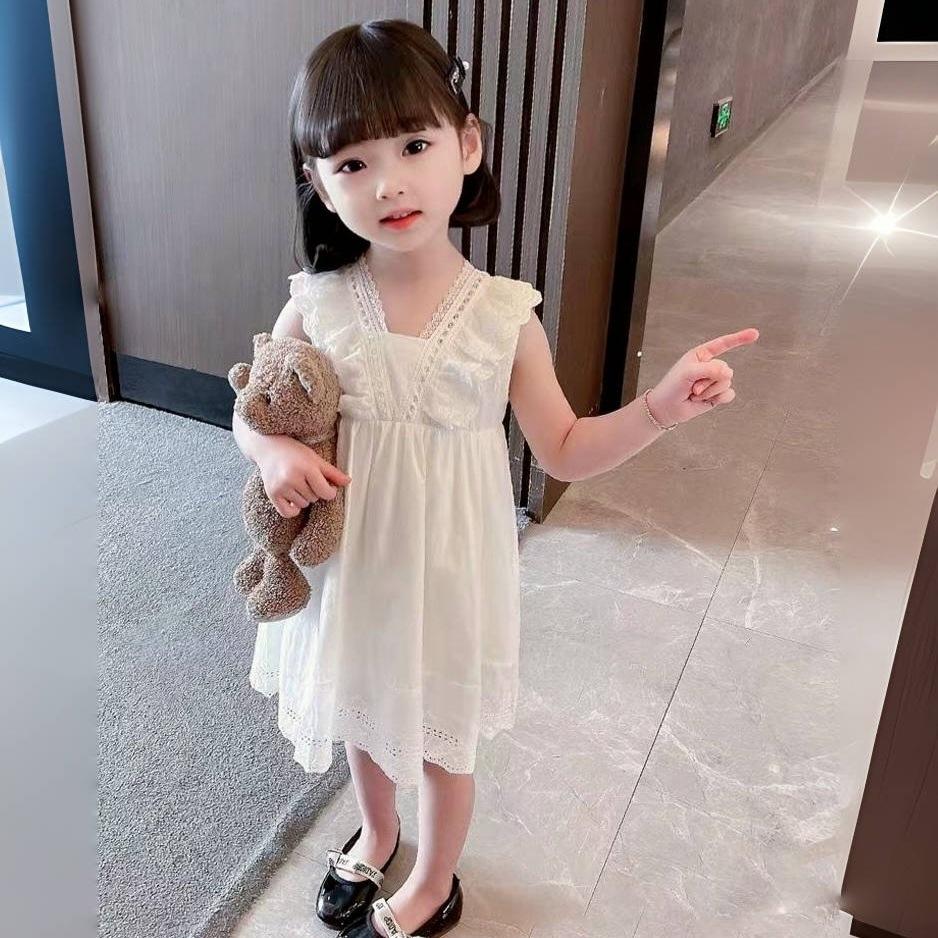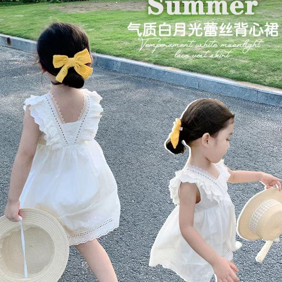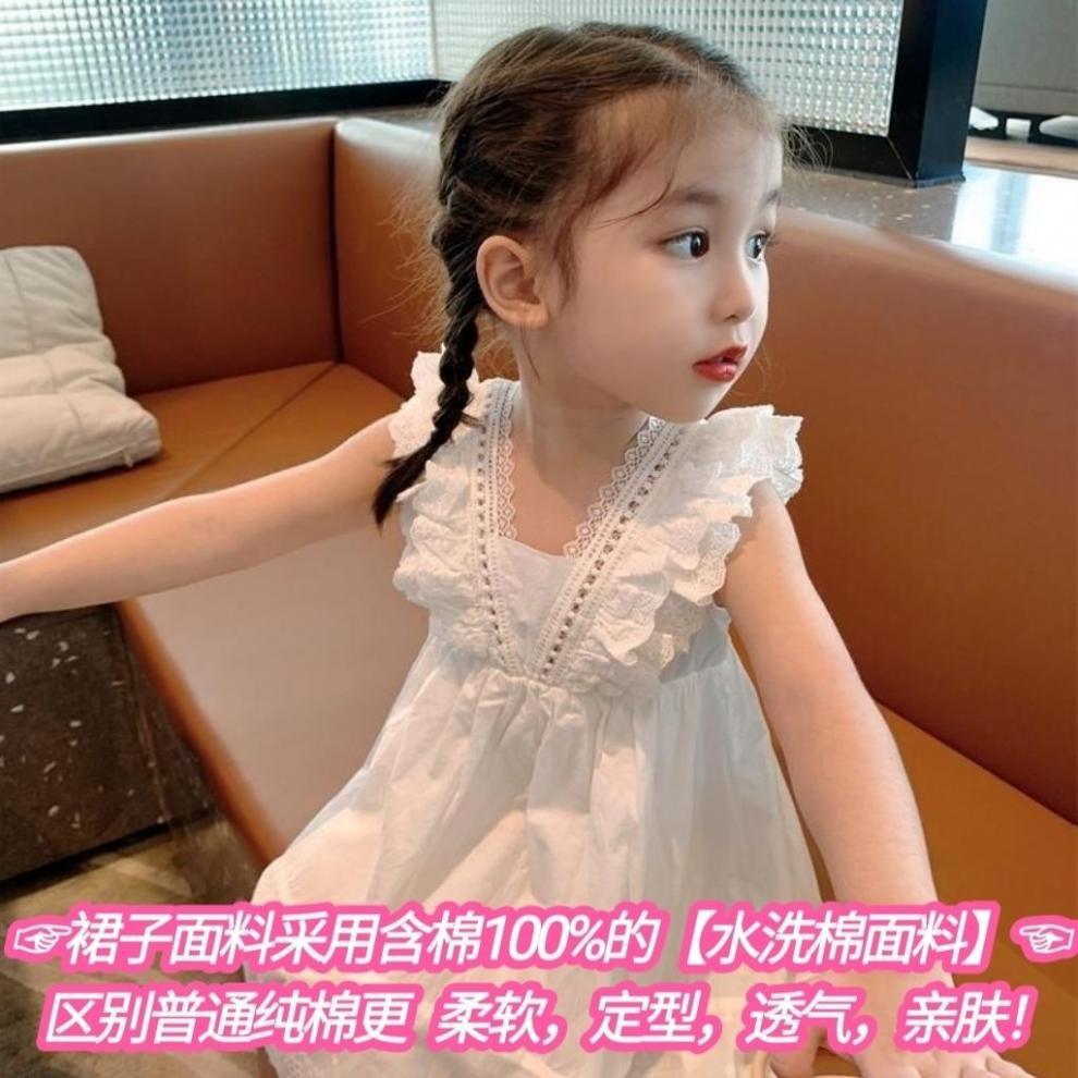 Vestido de niña, vestido de princesa de algodón puro de verano para niños, vestido de chaleco de encaje de moda exquisito para mujer, bonito vestido blanco