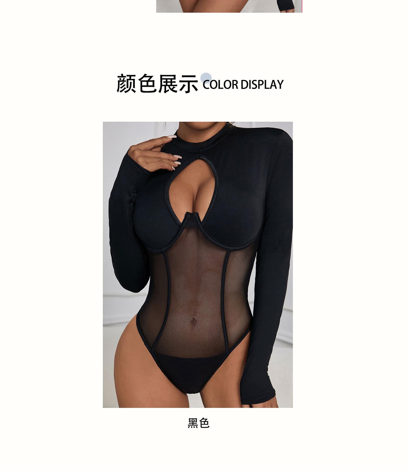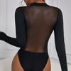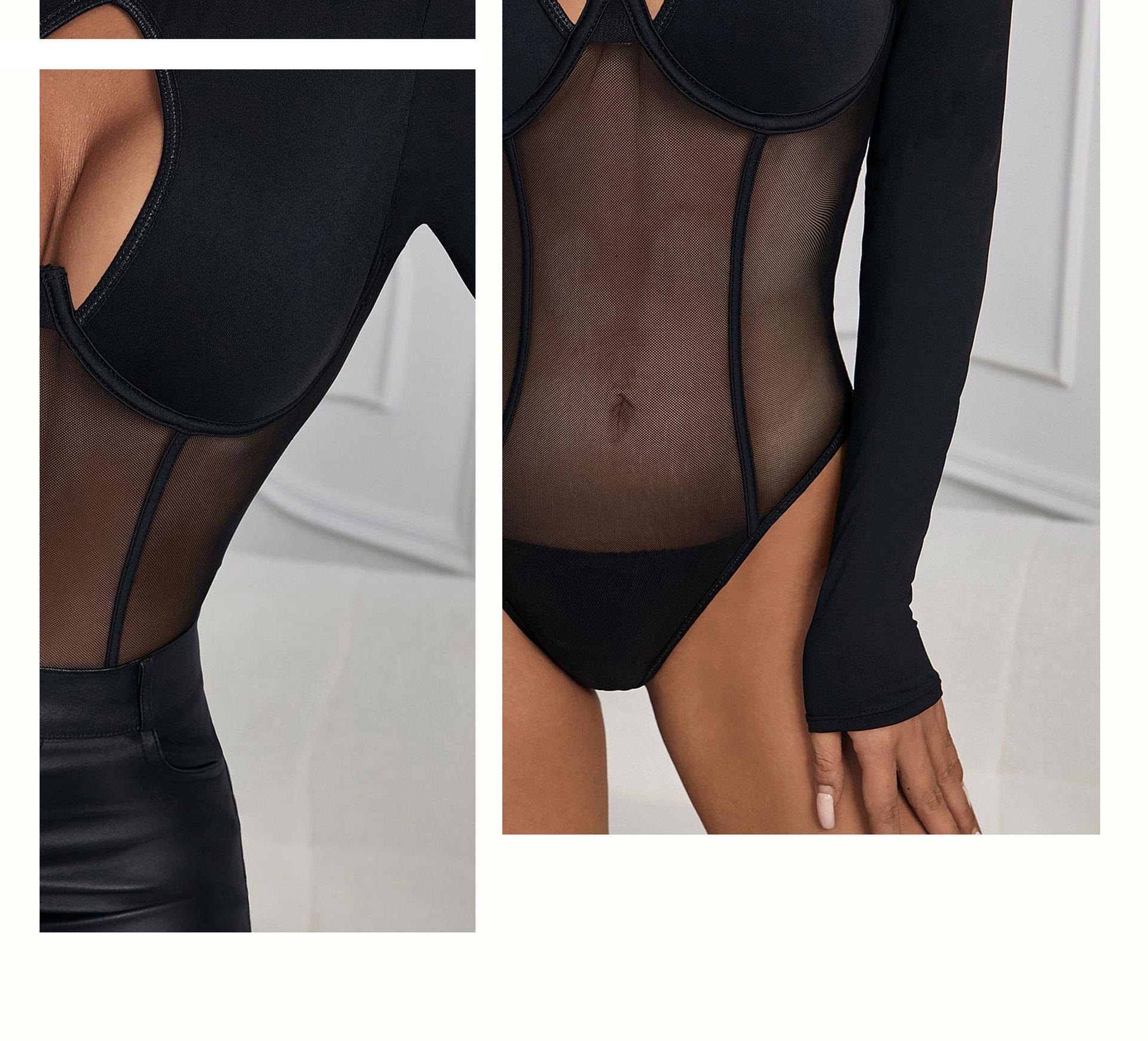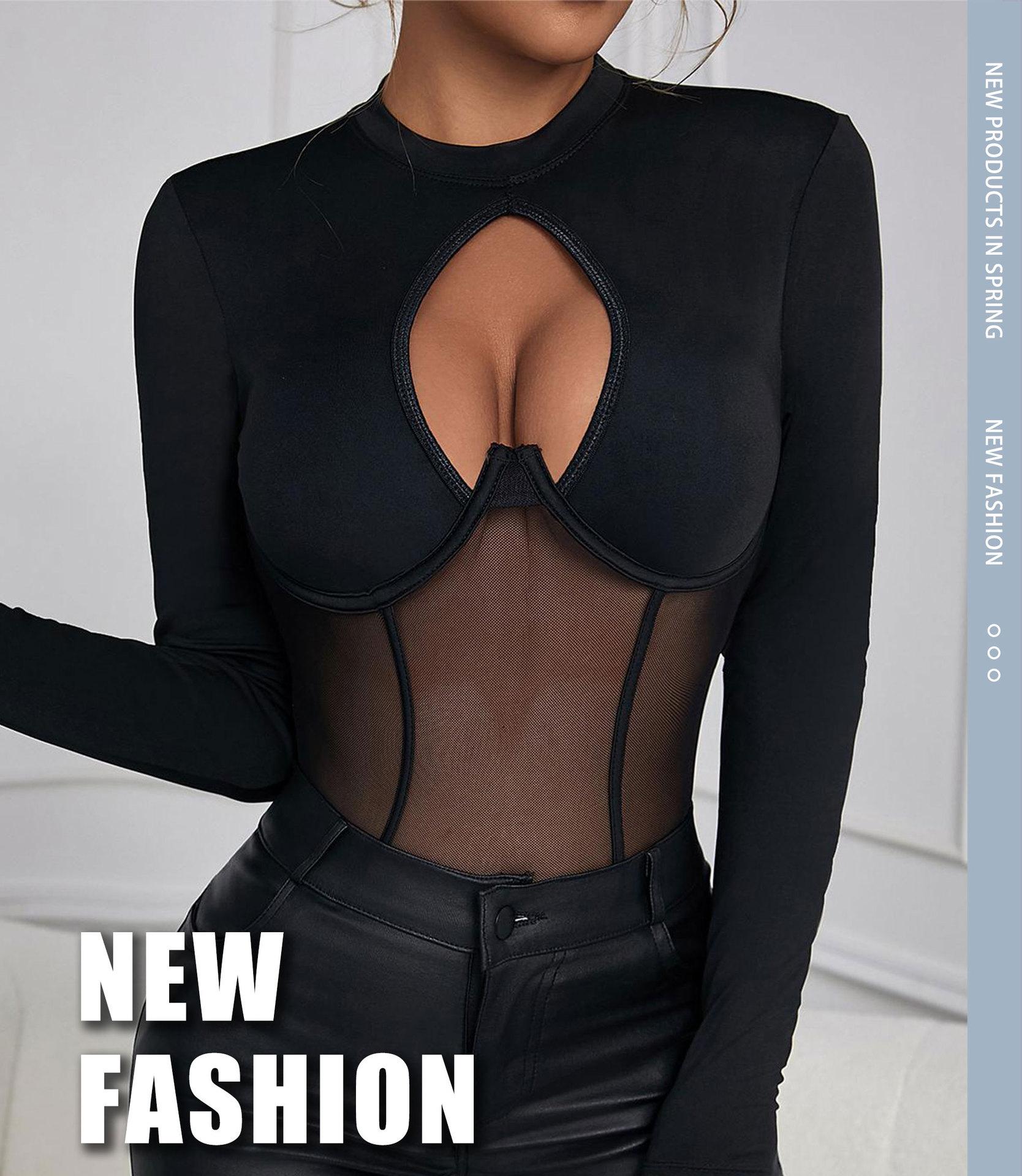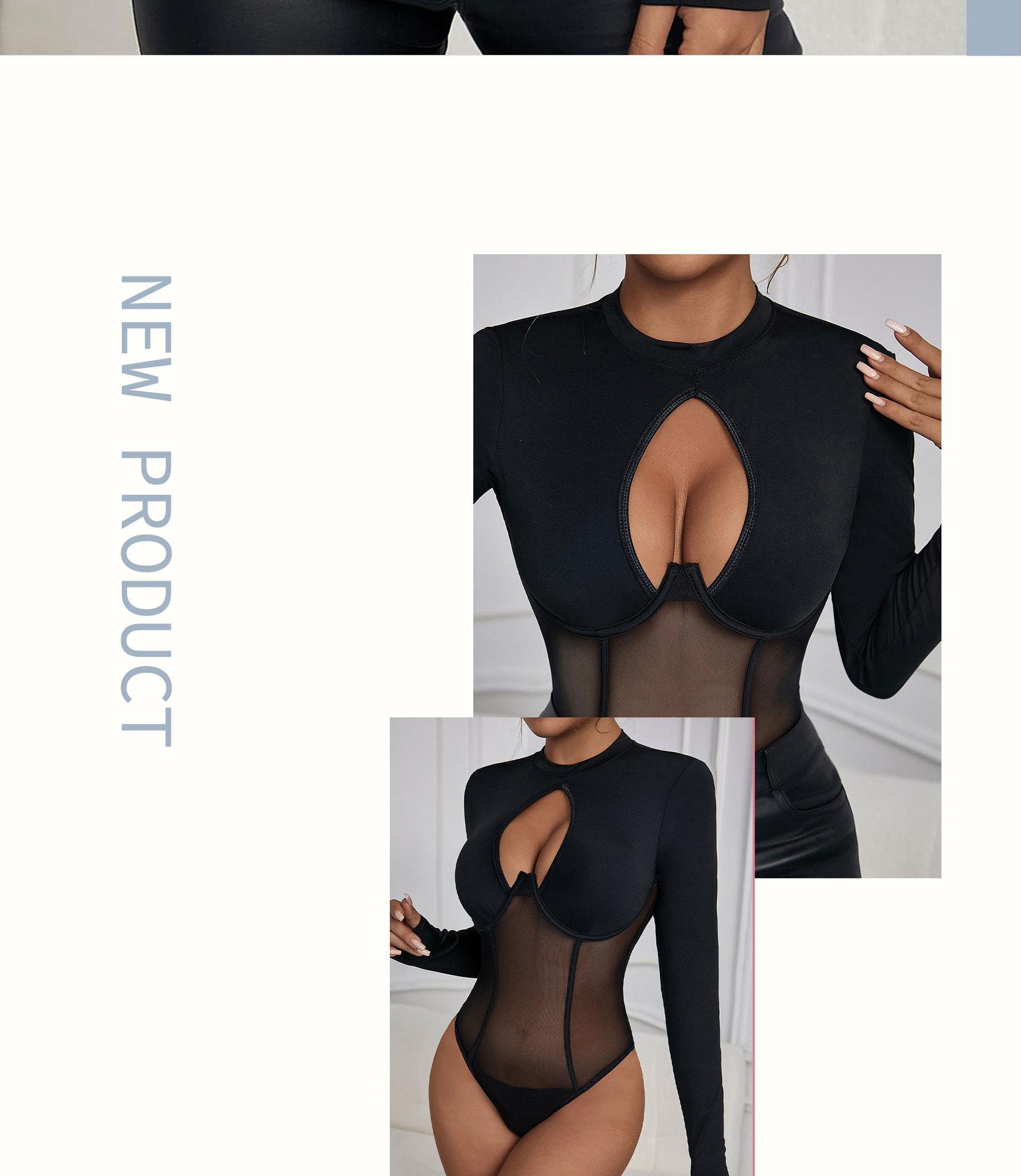 Nuevo Estilo Europeo y Americano Espalda Descubierta Cuello Redondo Calado Sexy Malla Parcheado Ajustado Capa Interior Body Fruncido Transpirable
