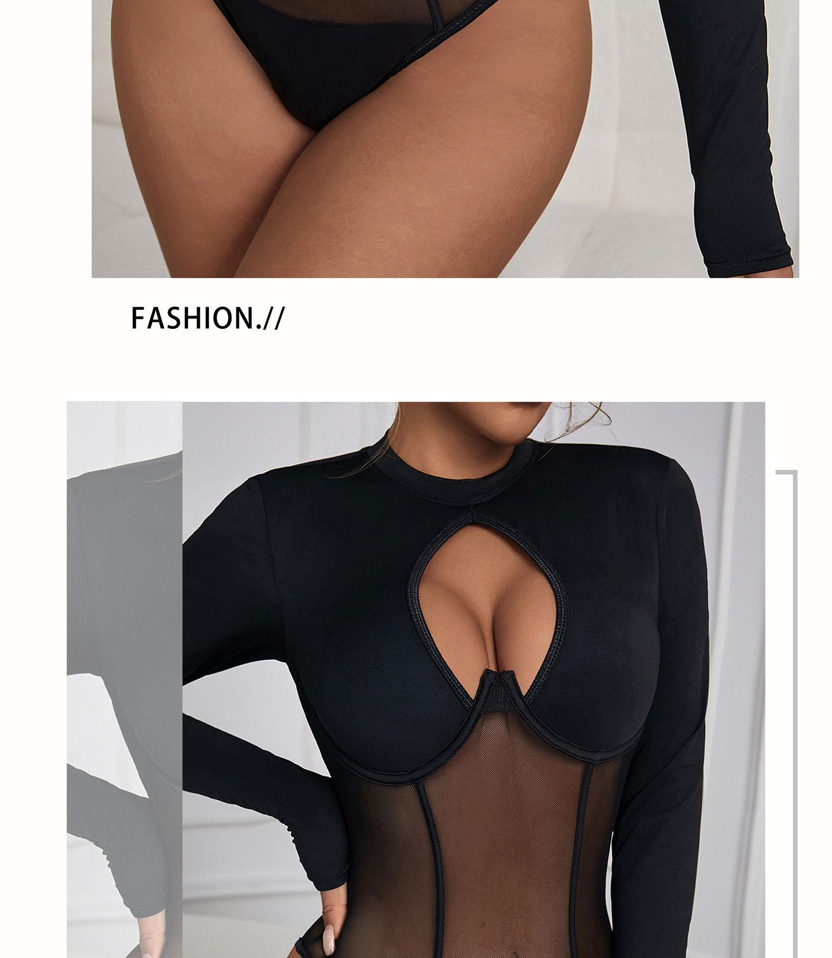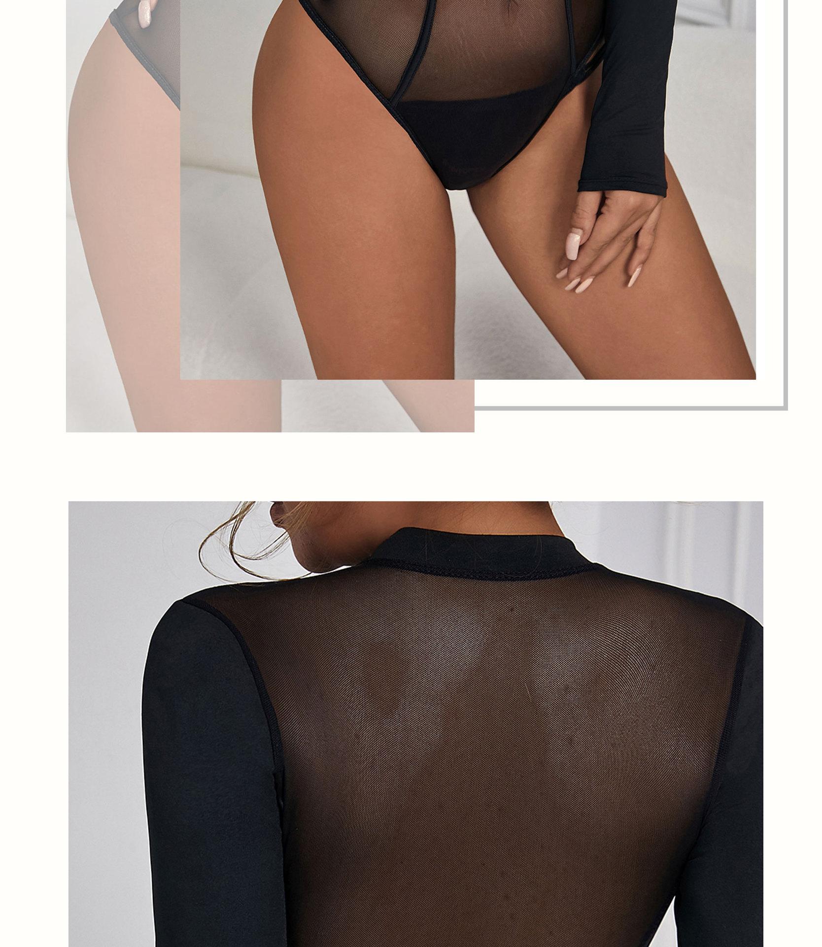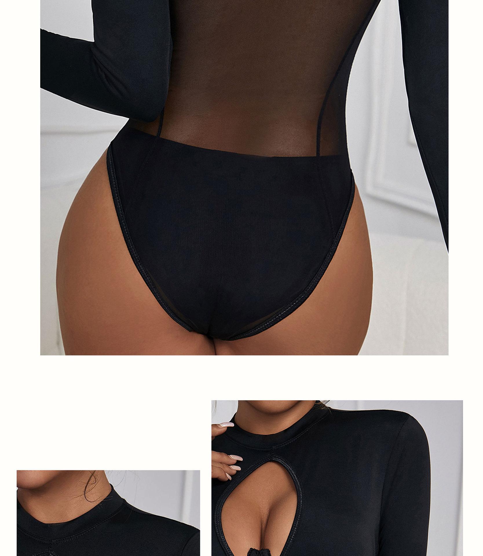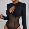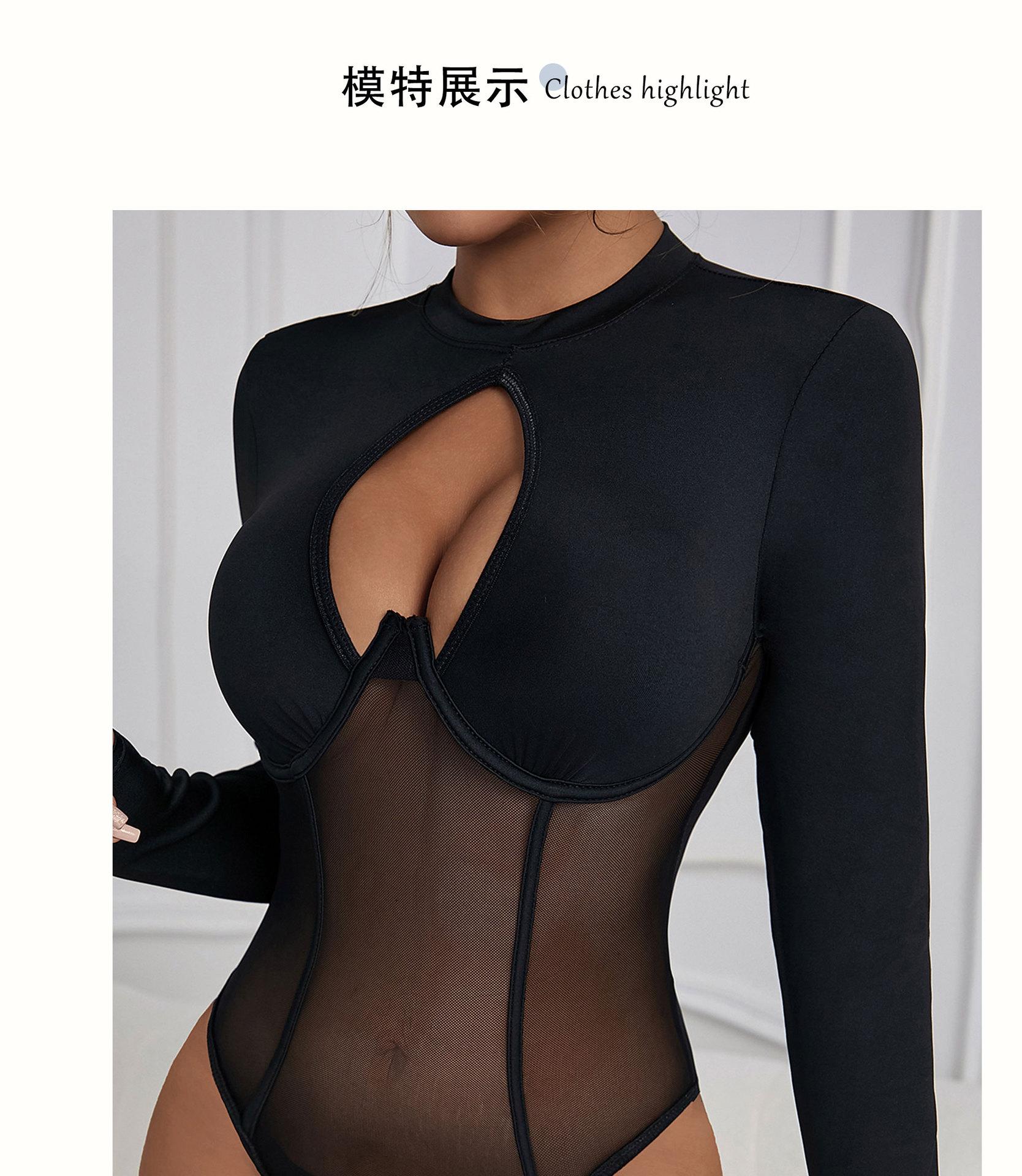 Nuevo Estilo Europeo y Americano Espalda Descubierta Cuello Redondo Calado Sexy Malla Parcheado Ajustado Capa Interior Body Fruncido Transpirable