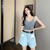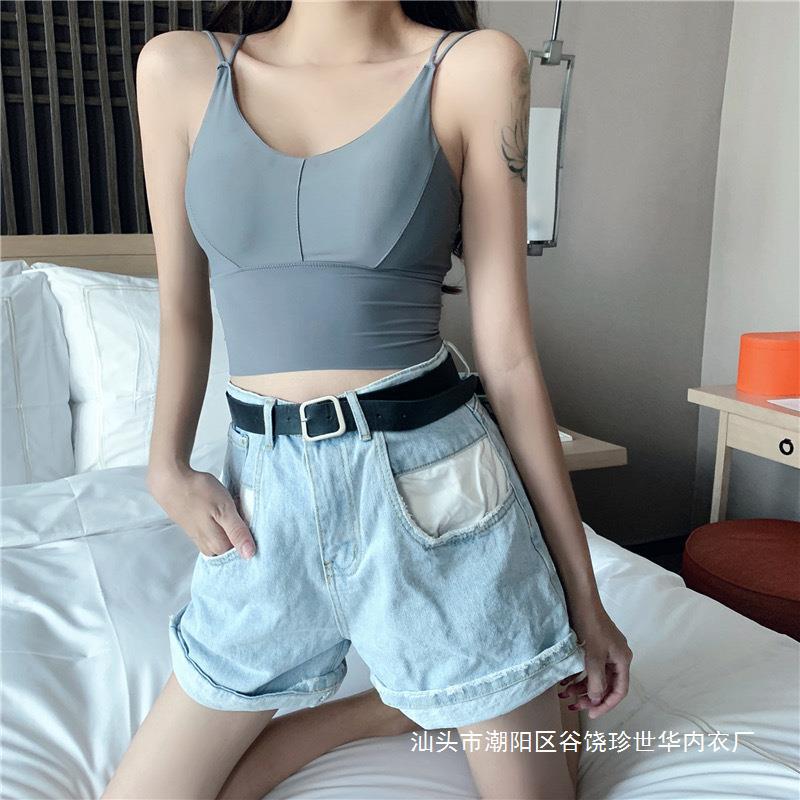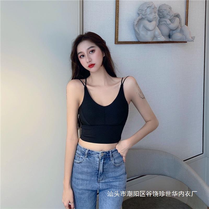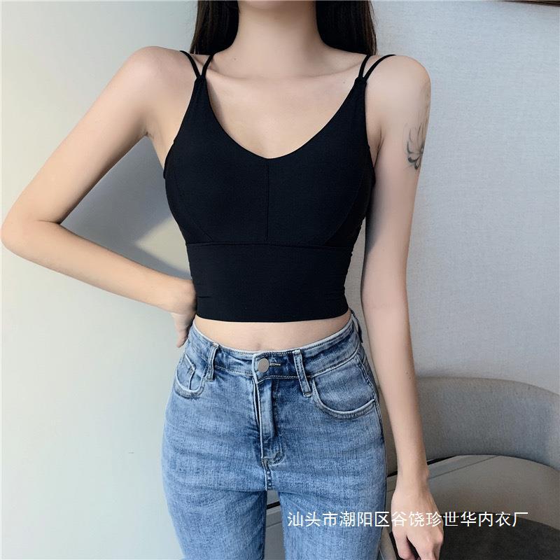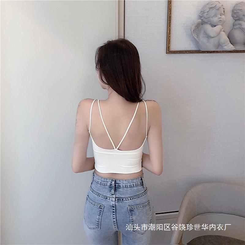 Top de verano sexy de seda helada con espalda en U grande, sexy, negro, cómodo y elástico en el interior para mujer
