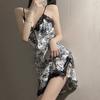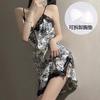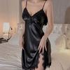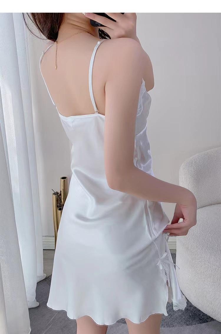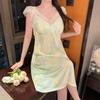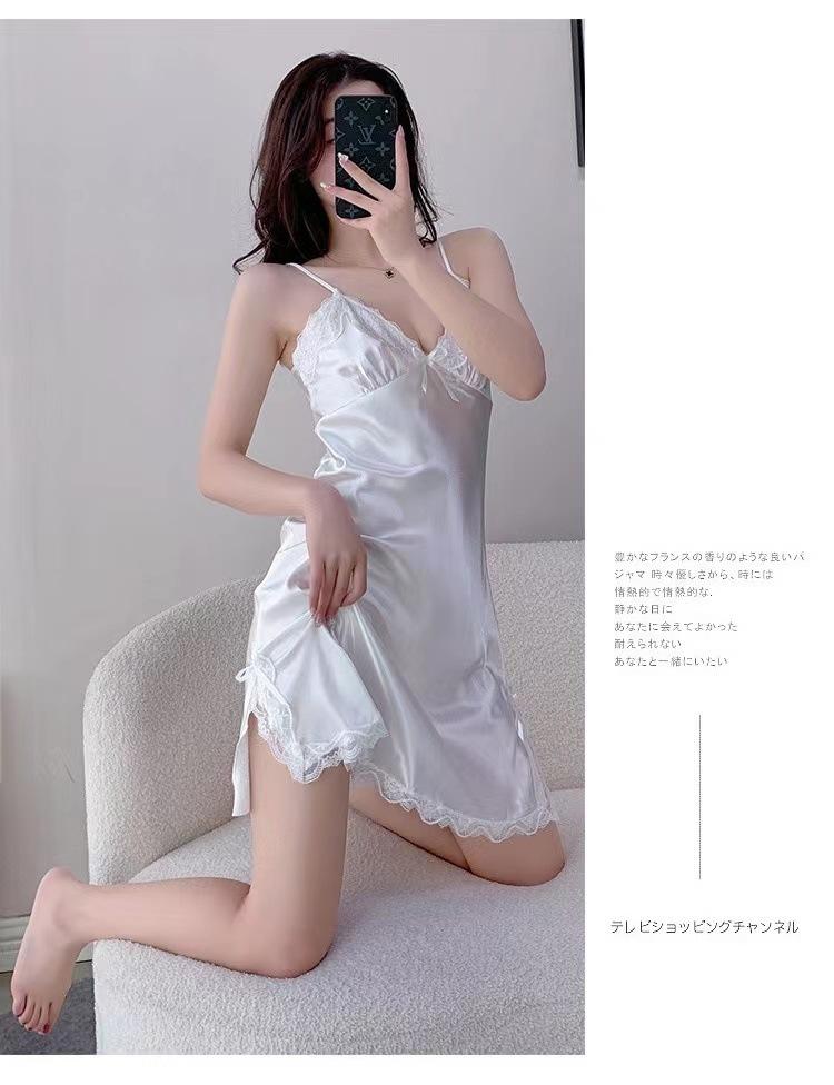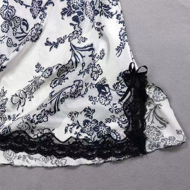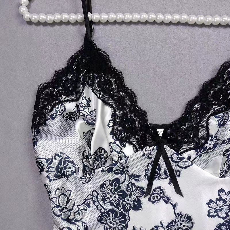 Amazon Comercio Exterior Primavera y Verano Celebridad Cibernética Azul y Blanco Camisón Encaje Abertura Falda Slip Sexy Pijama Ropa de Casa para Mujer