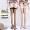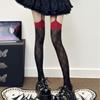 Calcetines largos de encaje ultrafinos por encima de la rodilla, estilo japonés, con lazo JK, de seda negra, sexys, de red hasta el muslo, para primavera y otoño