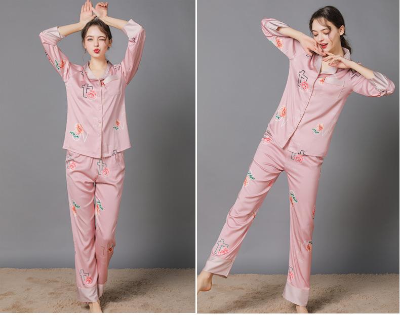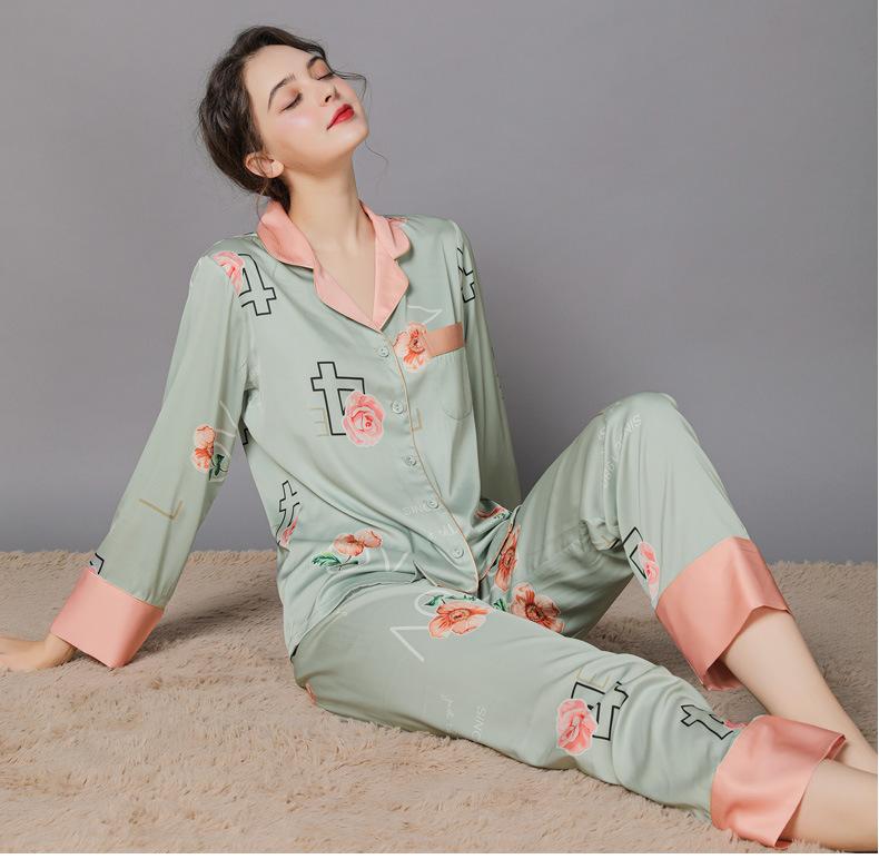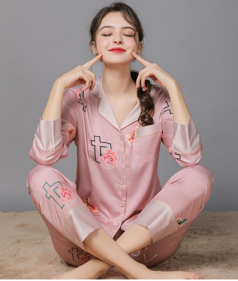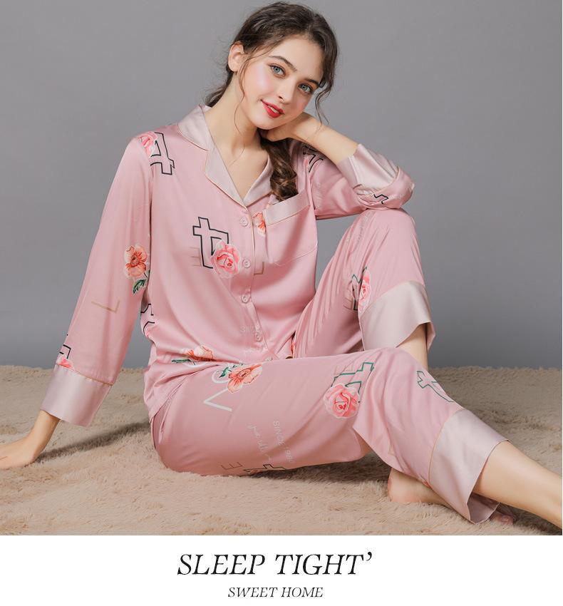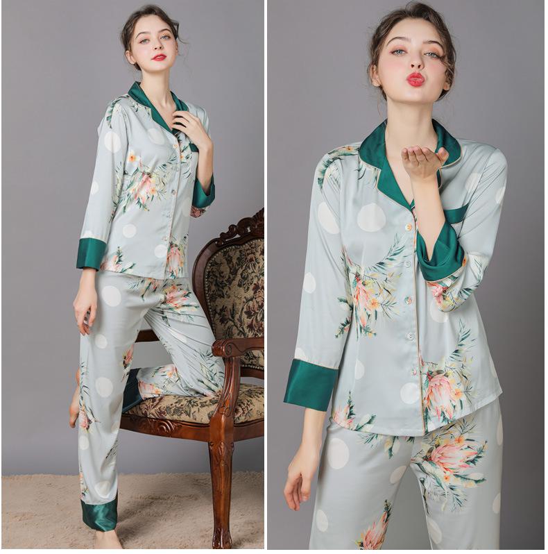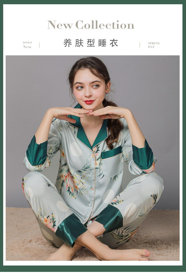 Conjunto de pijama de verano para mujer, pijama sexy de seda de manga larga suave, ropa de hogar al por mayor, primavera y otoño, seda fina de hielo